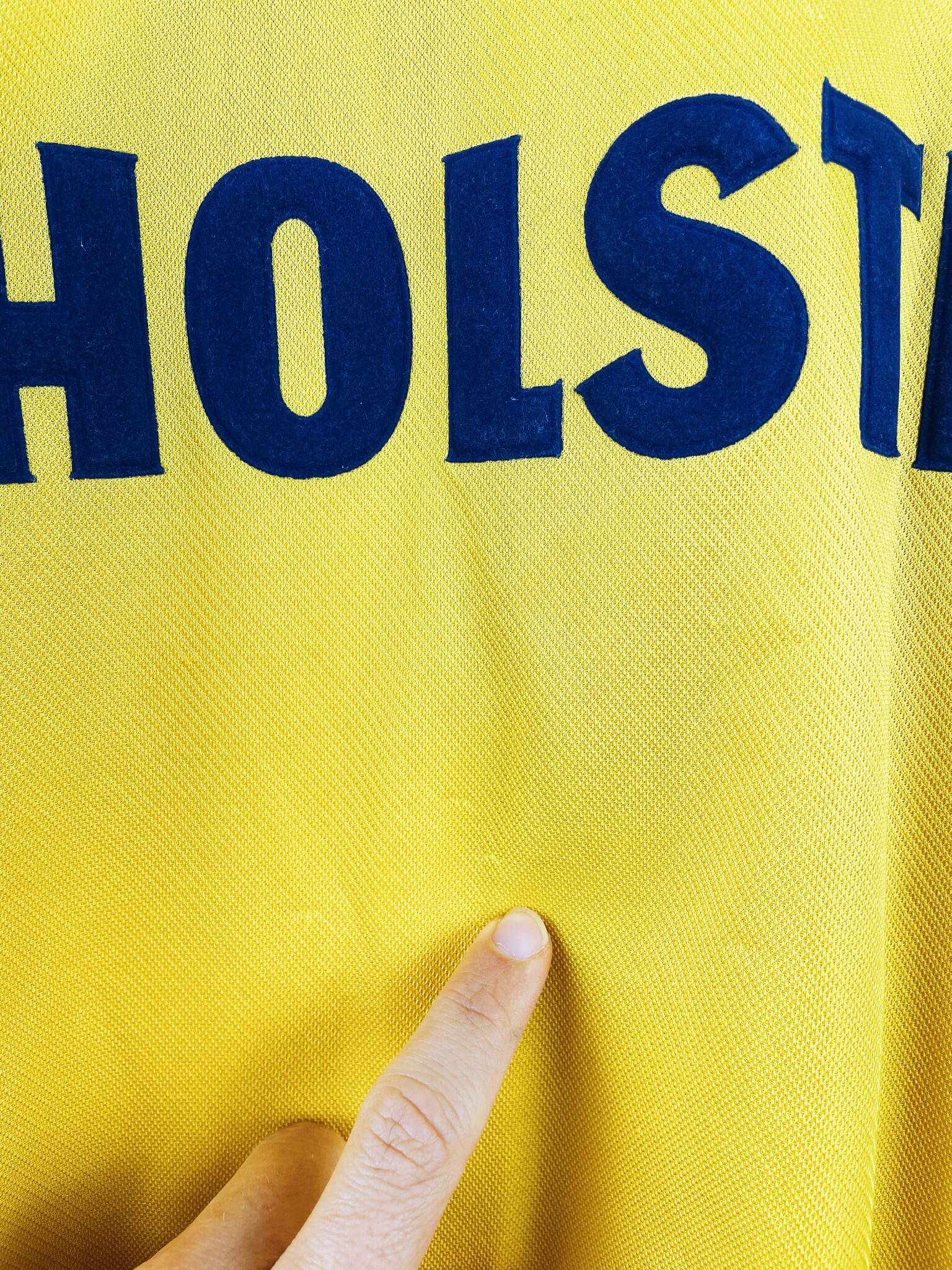 Taille : L Largeur : 58cm (aisselle à aisselle) Longueur : 71cm (base du col au bas) Si tu veux plus de détails, tu peux nous contacter par mail ou sur les réseaux 😉 Etat : 8.5/10, excellent état, quelques légères bouloches (voir photo) Le maillot : maillot vintage extérieur de Tottenham 1999/2000 floqué Carr #2. L’écusson et le logo Adidas sont brodés, le sponsor Holsten et Carr #2 sont en feutrine. Joli maillot rétro de Tottenham ! Histoire : les Spurs terminent 10èmes de Premier League. Ils seront éliminés en 8èmes de League Cup face à Fulham. Iversen marquera…