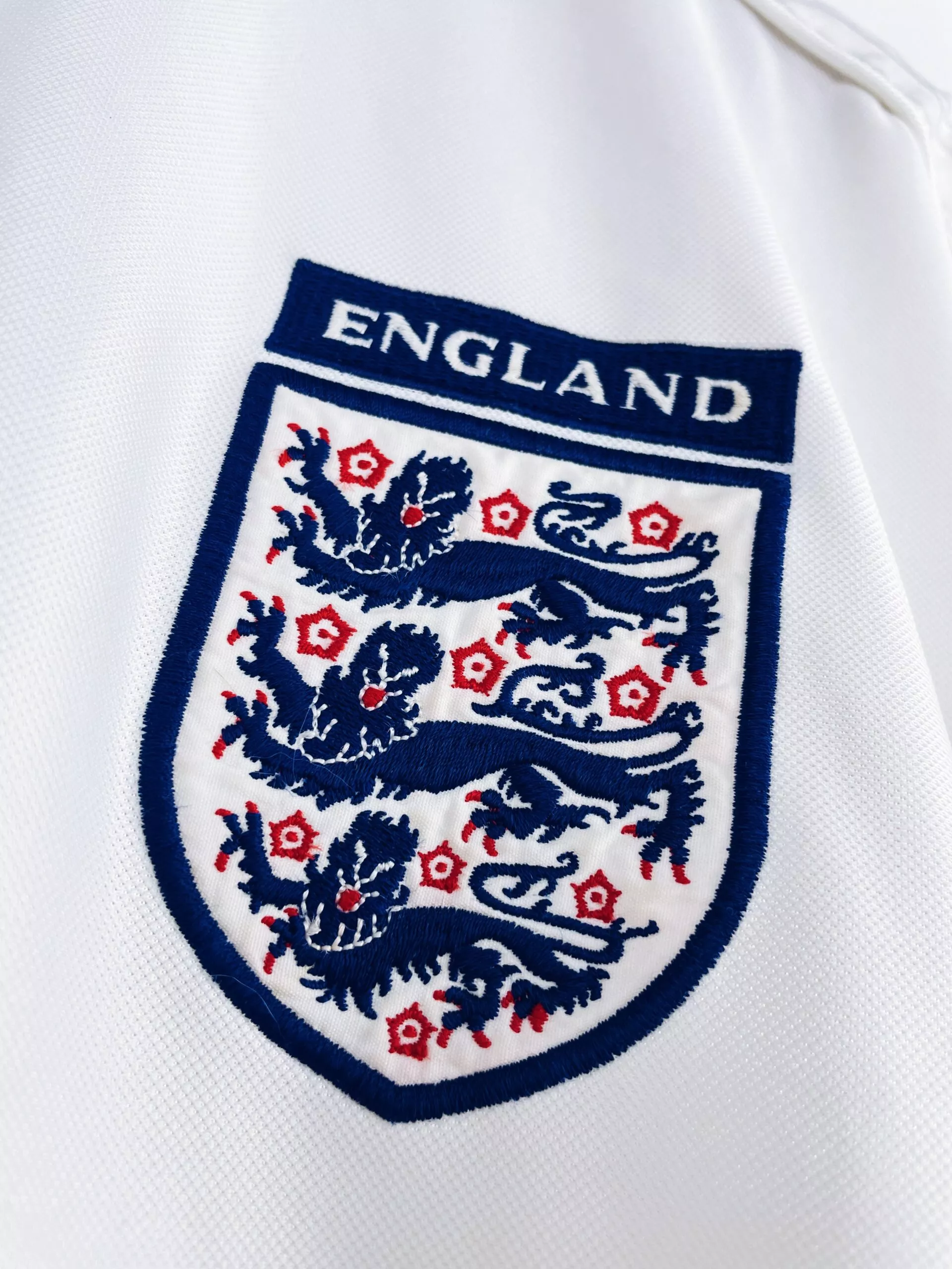 Taille : L Etat : 7.5/10, très bon état mais quelques traces jaunes quasi invisibles en bas du maillot (voir photos) Le maillot : maillot vintage domicile de l’Angleterre 1999/2001. L’écusson et le logo Umbro sont brodés. Le détail des manches Umbro est splendide. Très beau maillot rétro de l’Angleterre ! Histoire : maillot porté par les Anglais lors de l’Euro 2000. Les Three Lions se qualifient difficilement avec une 2ème place de leur groupe des éliminatoires, sauvés uniquement par la différence de buts face à la Pologne. Ensuite, les Anglais feront ce qu’ils savent faire de mieux, avec une…