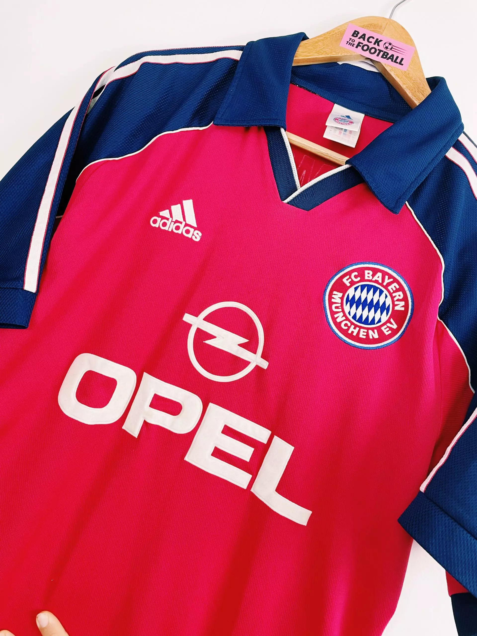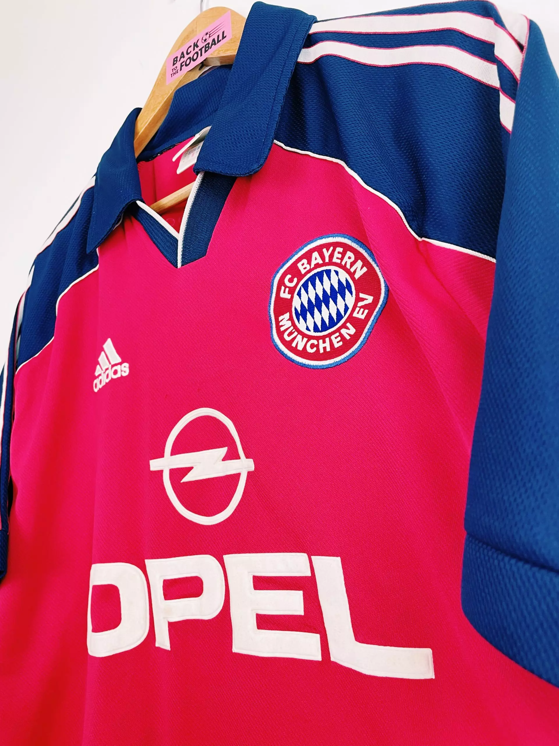 Taille : M Etat : 8/10, très bon état Le maillot : maillot vintage domicile Adidas du Bayern Munich, saisons 1999/2001. L’écusson et le logo Adidas sont brodés. Le logo Opel est en feutrine. Très beau maillot rétro du Bayern ! Histoire : deux grosses saisons des bavarois avec deux titres en Bundesliga, une Ligue des Champions, deux Coupes de la Ligue et une Coupe d’Allemagne ! Carsten Jancker jouera 22 matchs et marquera 1 but. Quelques noms : Lizarazu, Sagnol, Oliver Kahn, Giovane Élber, Scholl…
