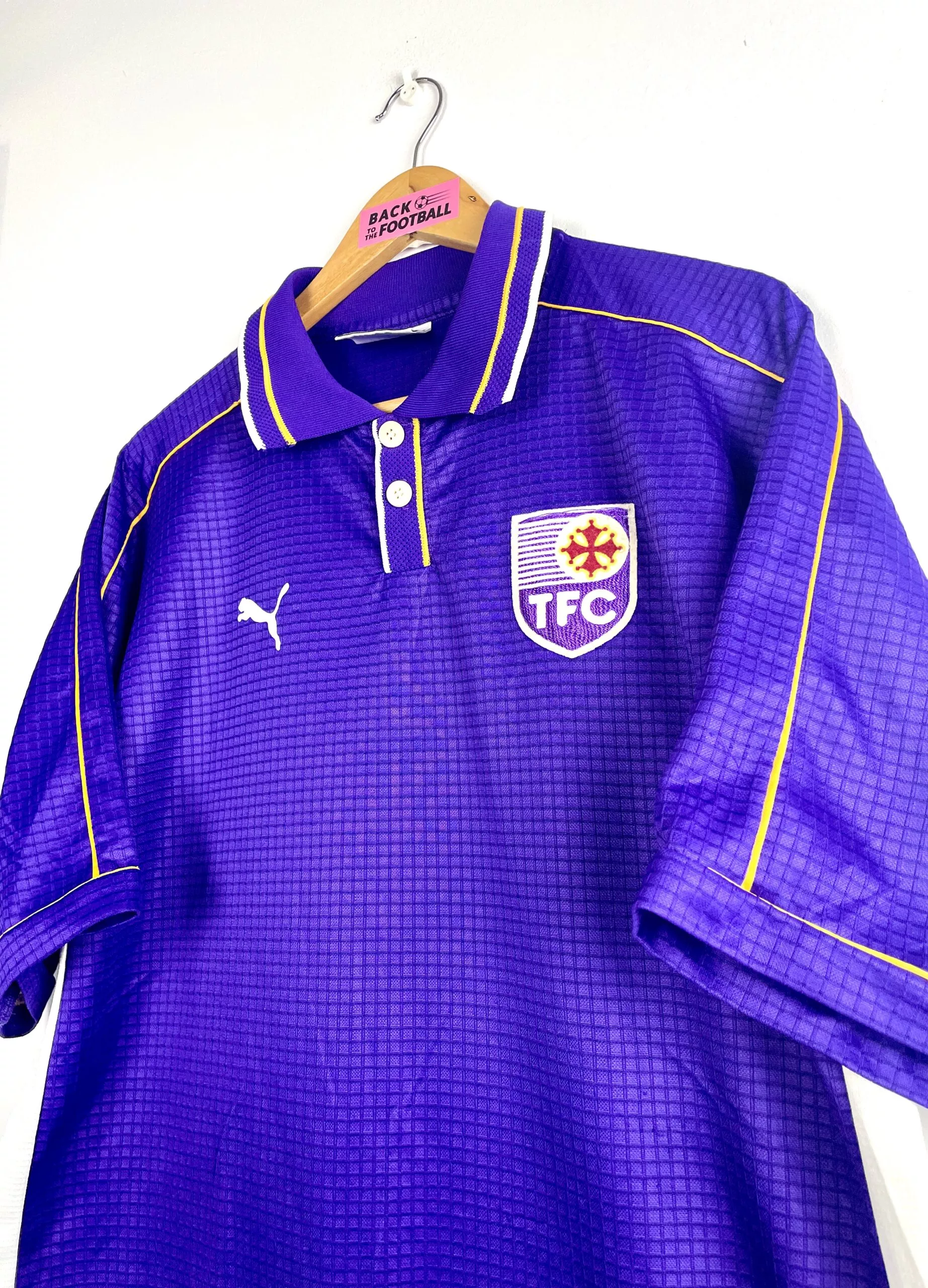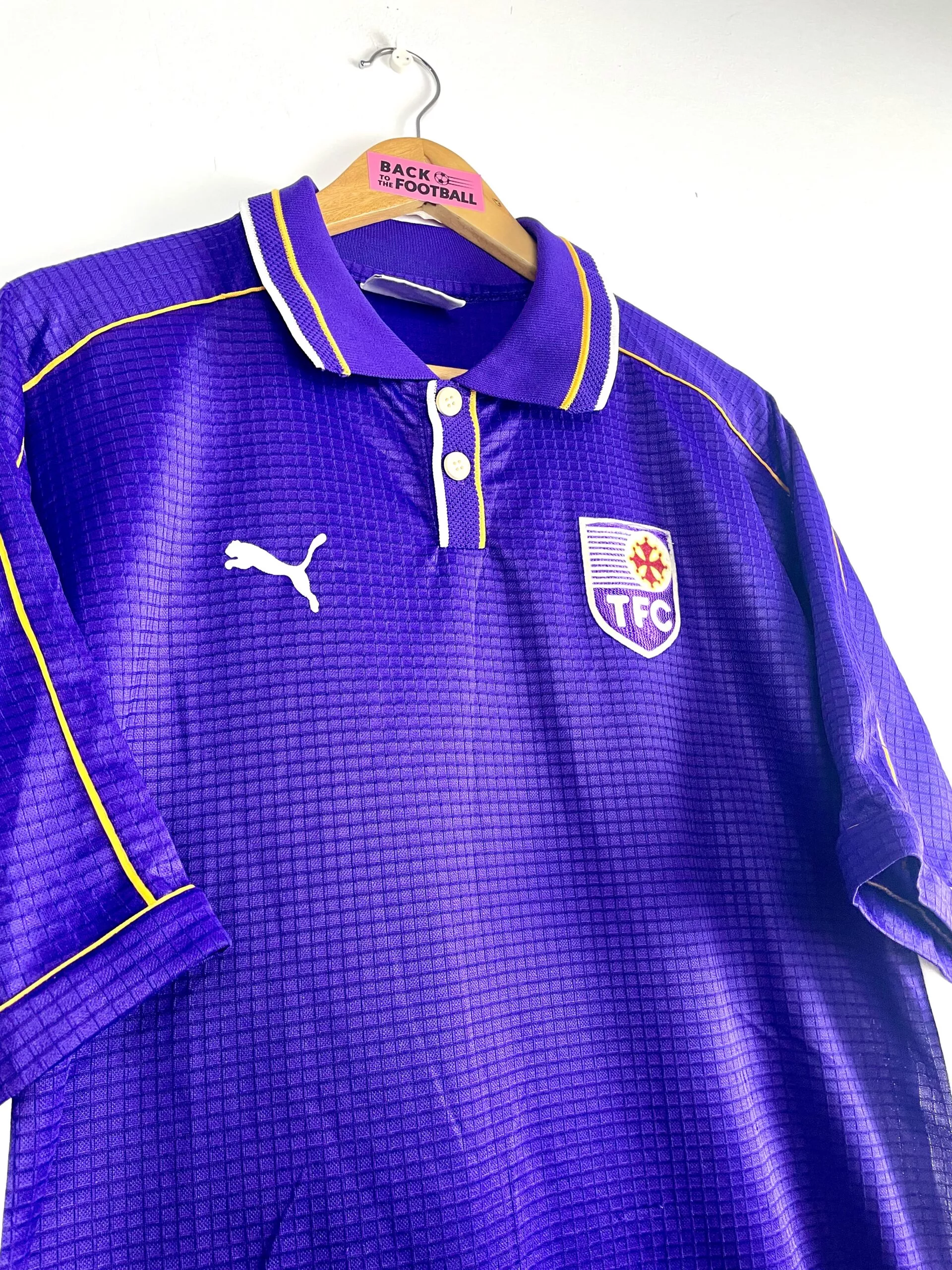 Taille : XL Etat : 7.5/10, très bon état mais l’écusson a des fils tirés (voir photos) Le maillot : maillot vintage domicile de Toulouse 1999/2001. L’écusson est brodé, le logo Puma est en feutrine. Le quadrillage sur tout le maillot est magnifique. Très beau maillot rétro du Toulouse FC ! Histoire : la première saison, le téfécé réussit à remonter en division 1 en terminant sur le podium de Division 2, derrière le LOSC et Guingamp. Malheureusement, les toulousains feront l’aller-retour la saison suivante avec une 16ème place sur 18 équipes, mais en plus de ça une rétrogradation administrative…