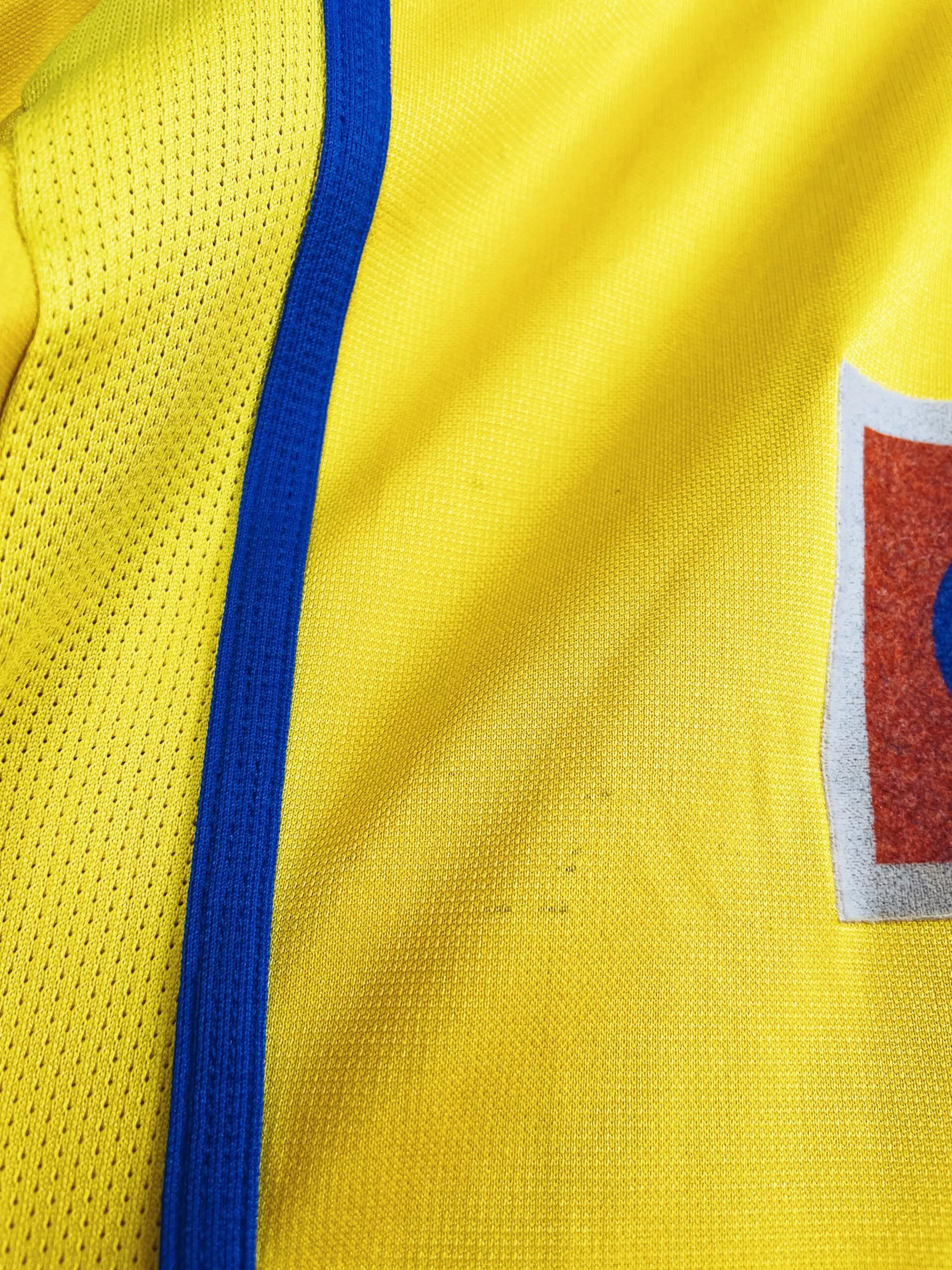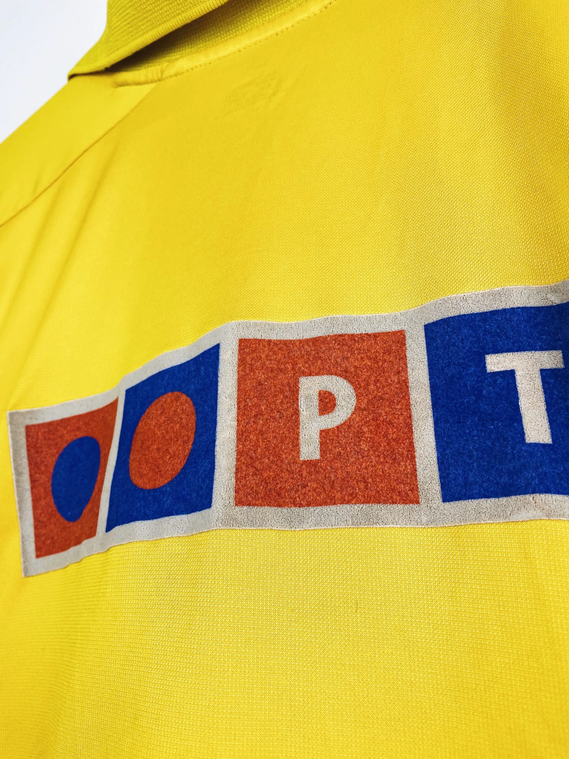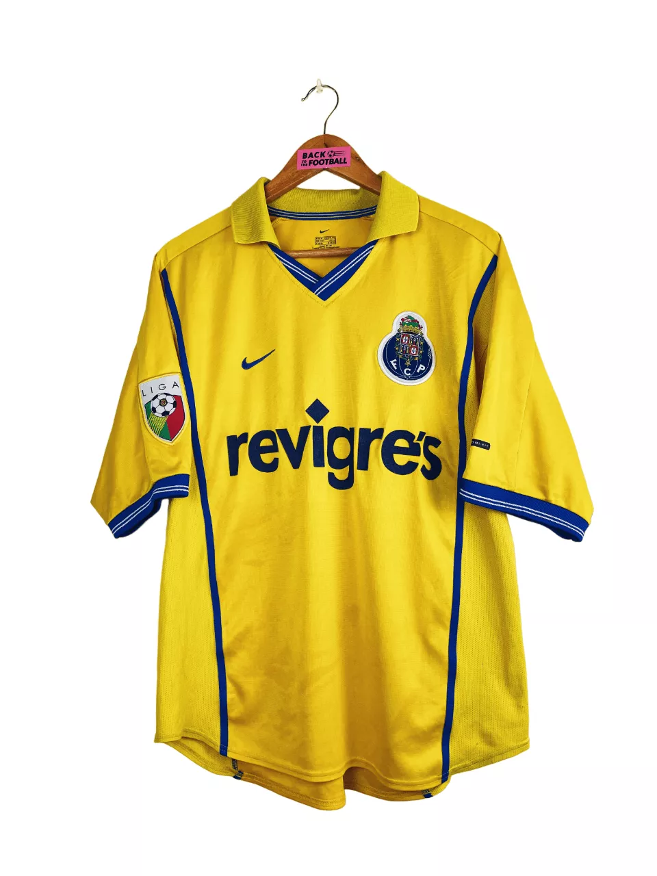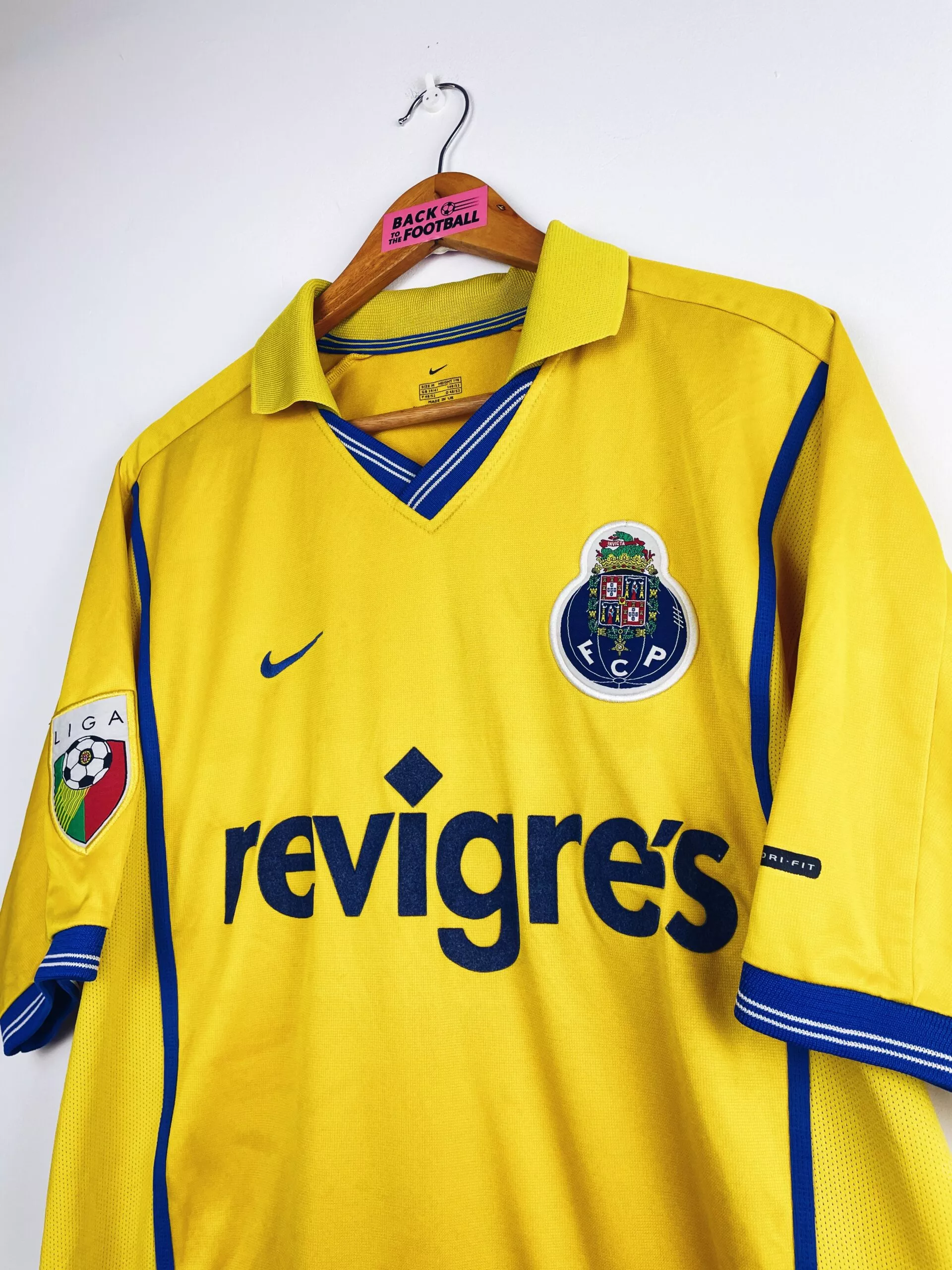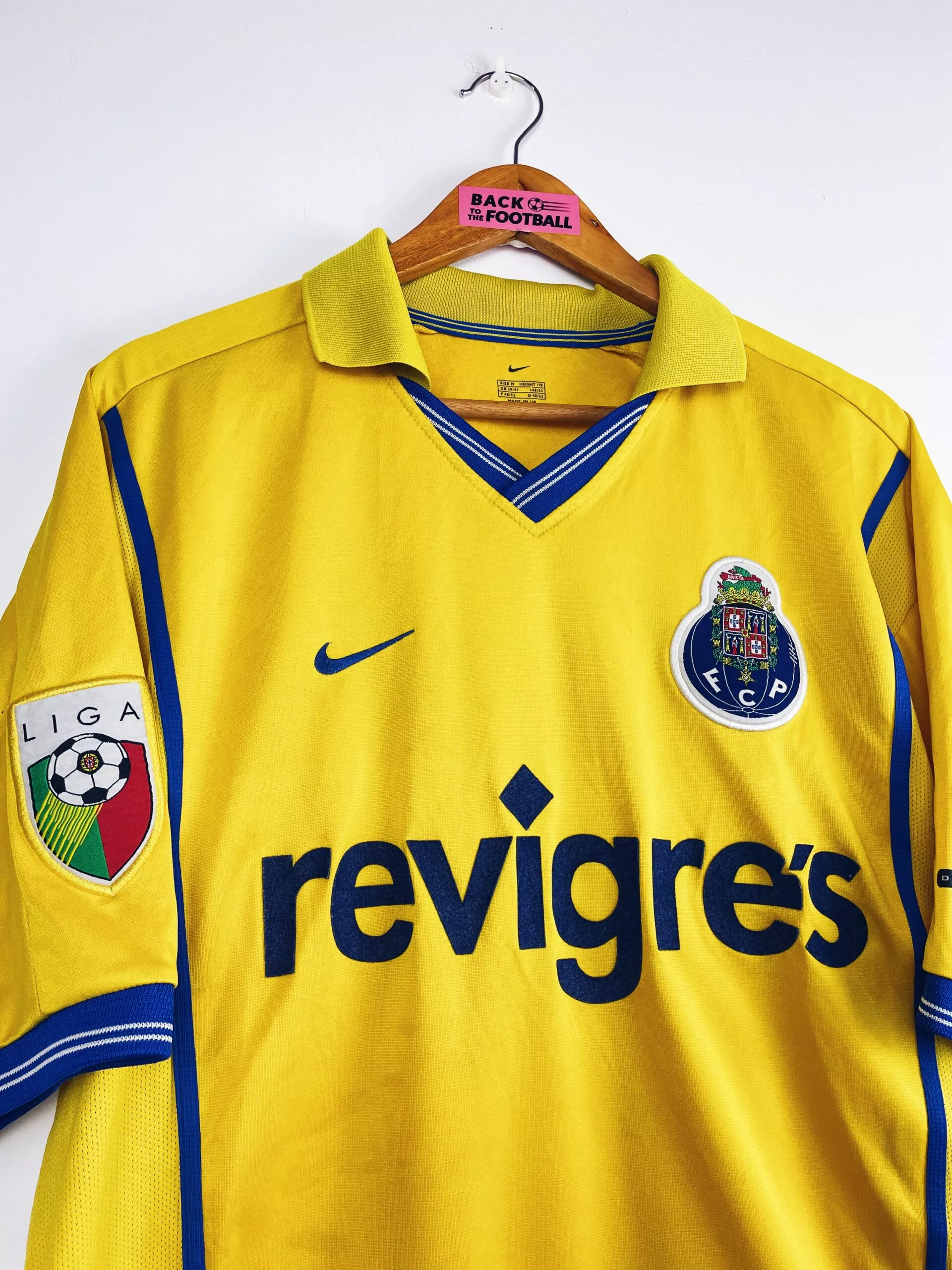 Taille : L Si tu veux plus d’infos, tu peux nous contacter par mail ou sur les réseaux 😉 Etat : 8/10. Très bon état général. Petites traces dans le dos et la feutrine dans le dos est un peu grisée (voir photos) Le maillot : maillot vintage extérieur du FC Porto 2000/2001. L’écusson et le logo Nike sont brodés, le sponsor Revigres est en feutrine. Très beau maillot rétro de Porto ! Histoire : Porto termine à la deuxième place du championnat portugais, un point derrière Boavista. Les Dragons remporteront la Coupe du Portugal contre Maritimo. Porto sera éliminé…