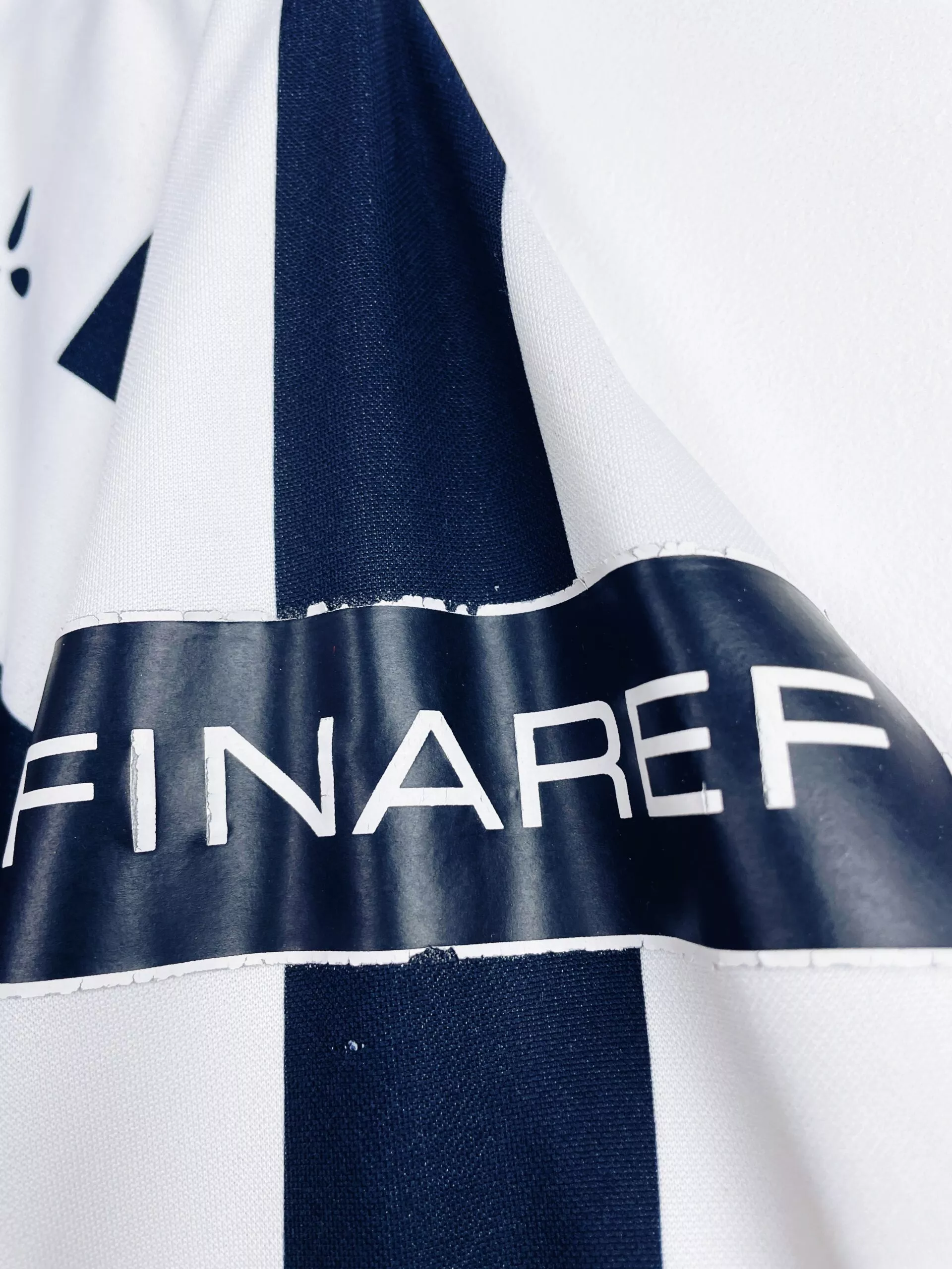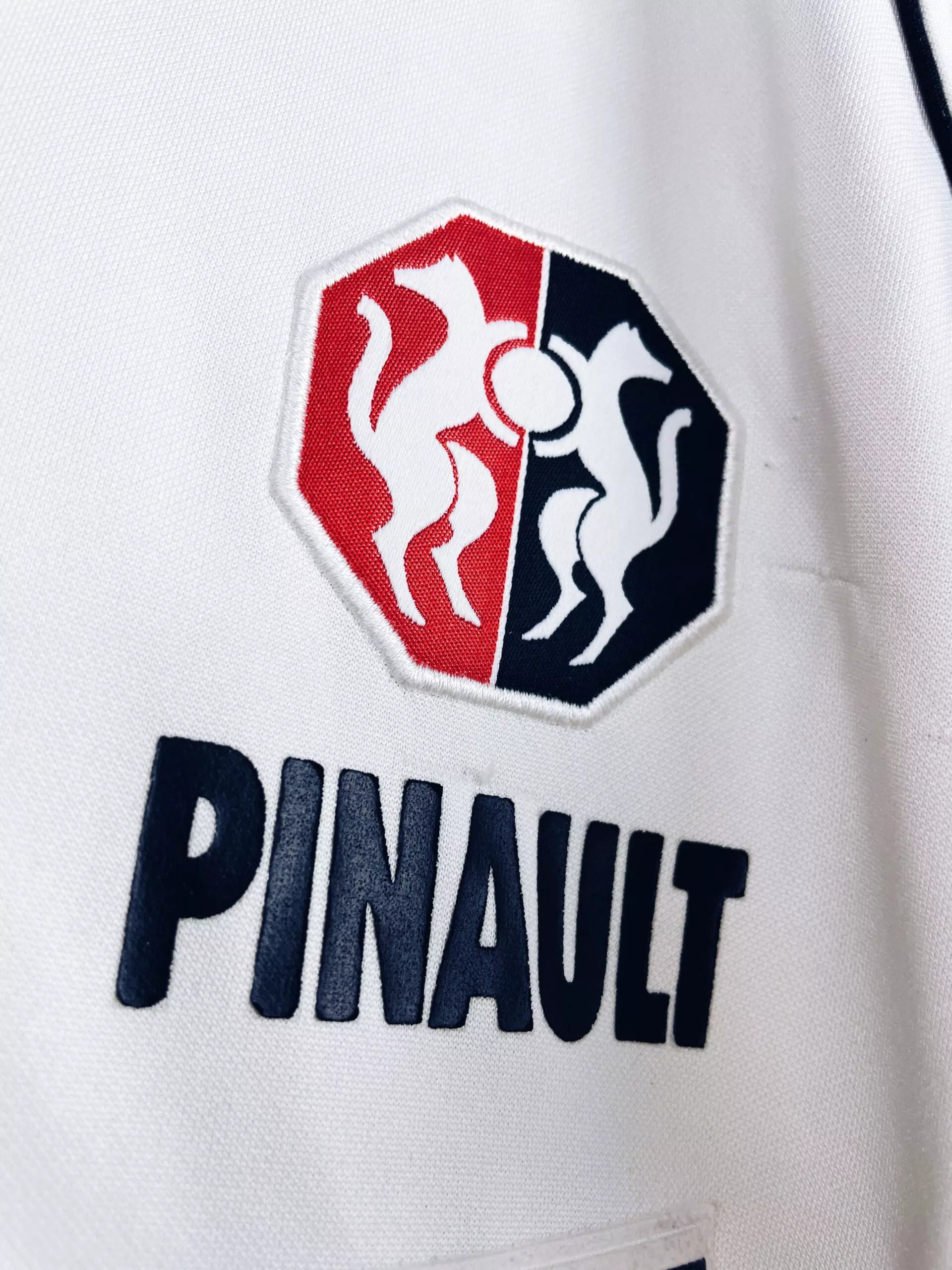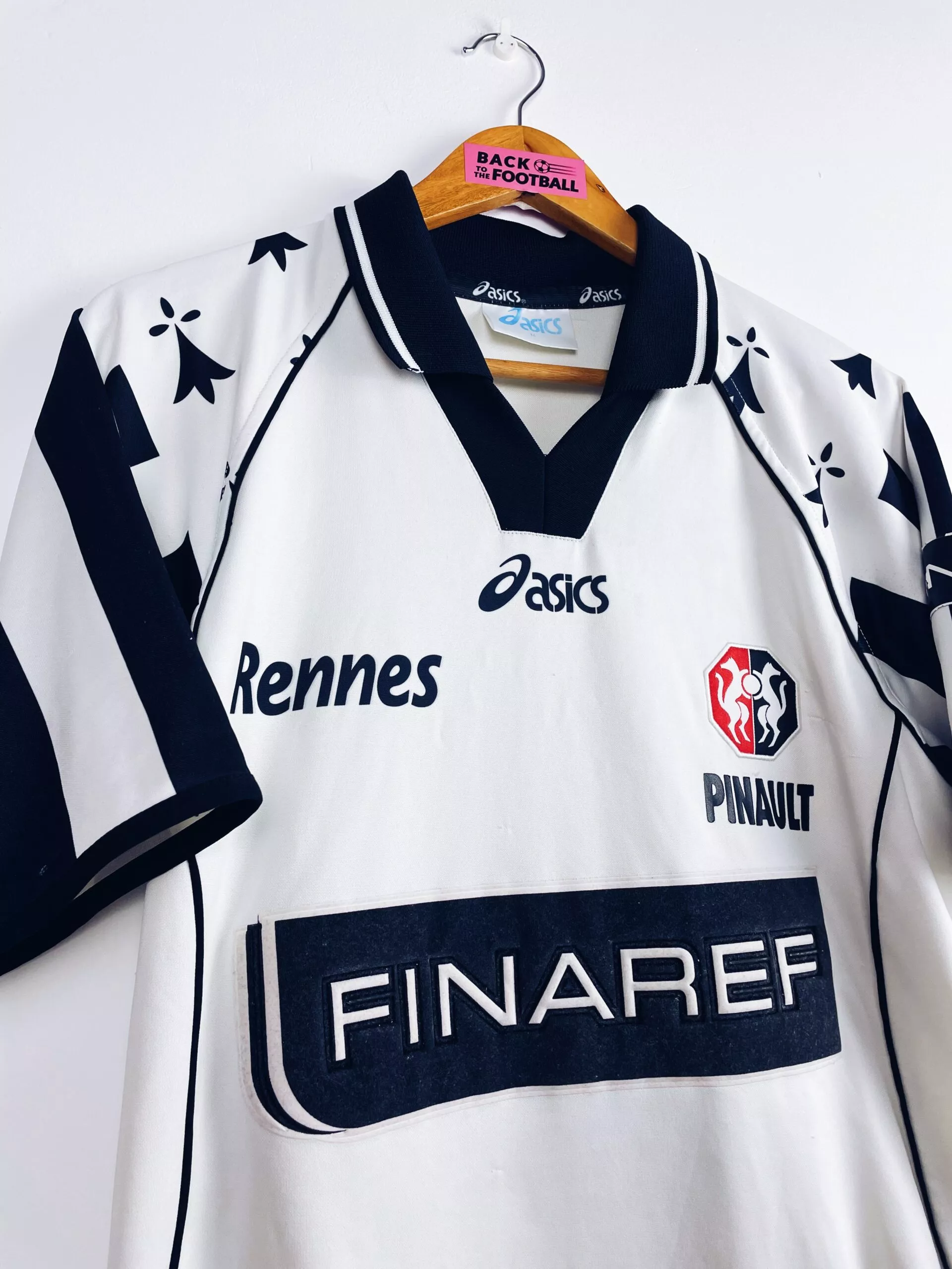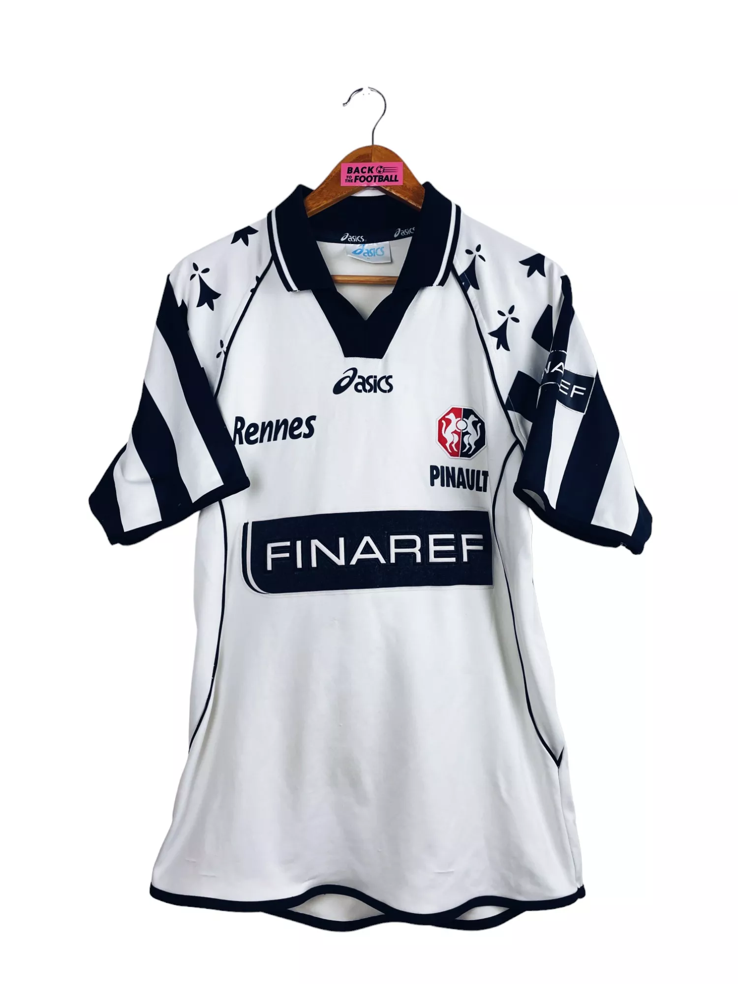 Taille : M Etat : 7/10, bon état, mais il y a des bouloches et accros, le flocage sur la manche est abimé, et il y a des traces légèrement visibles (voir photos). Le reste est bien conservé. Le maillot : maillot vintage extérieur du Stade Rennais 2001/2002. L’écusson est brodé, le logo Asics est incrusté, le sponsor Finaref est en feutrine, les autres sponsors sont floqués. Très beau maillot rétro de Rennes ! Histoire : première saison au club pour l’entraineur Christian Gourcuff. Les Rennais termineront 12ème de Ligue 1. Ils seront éliminés par 2 fois en coupes nationales…