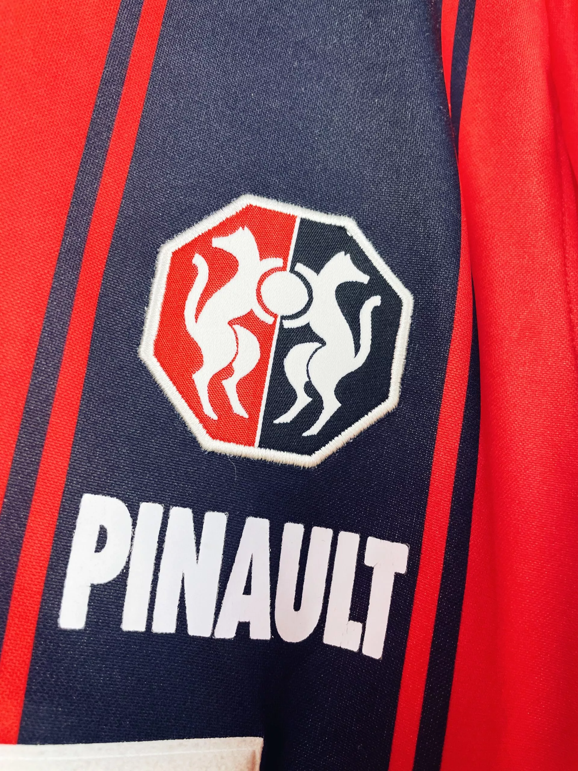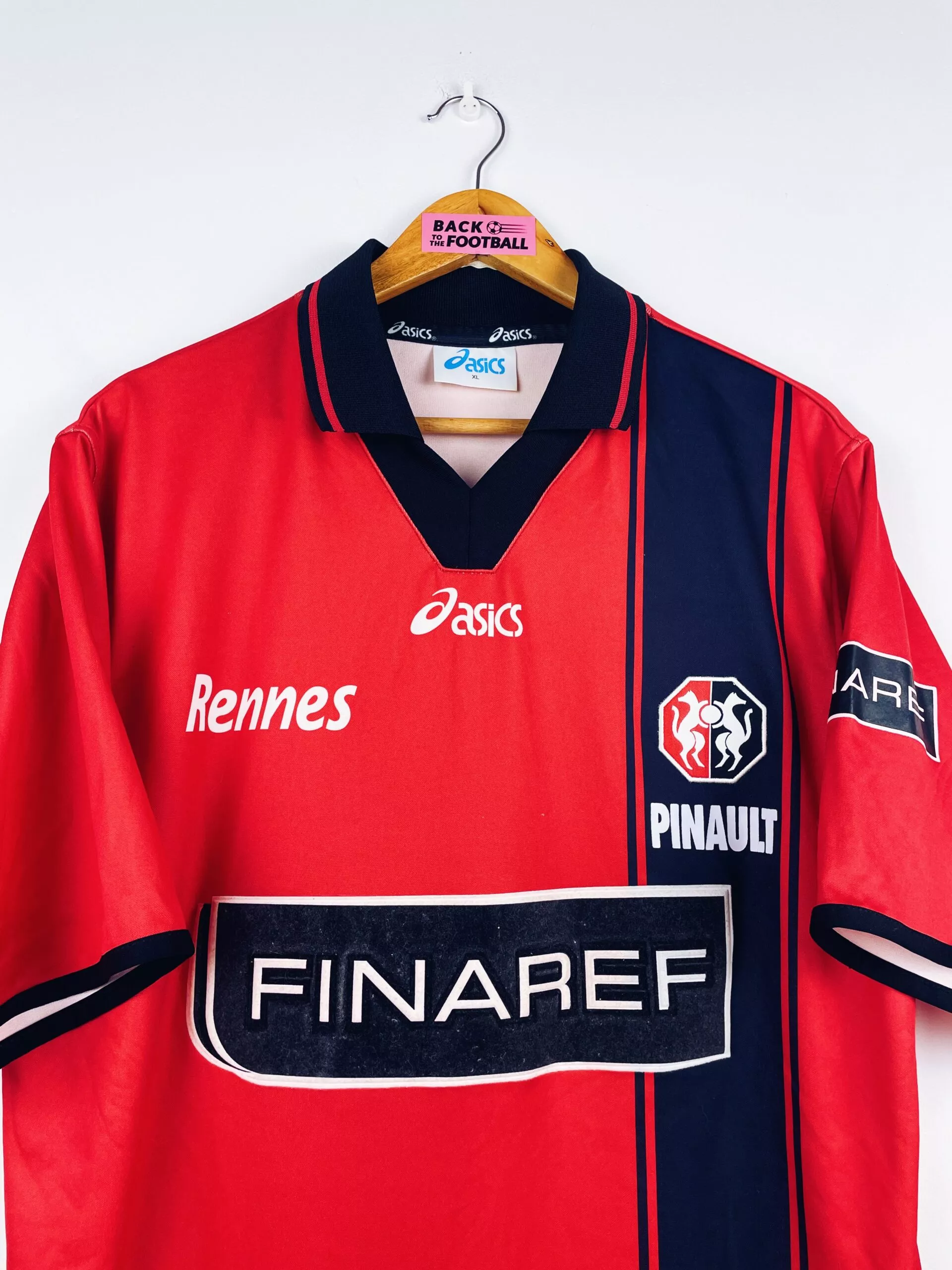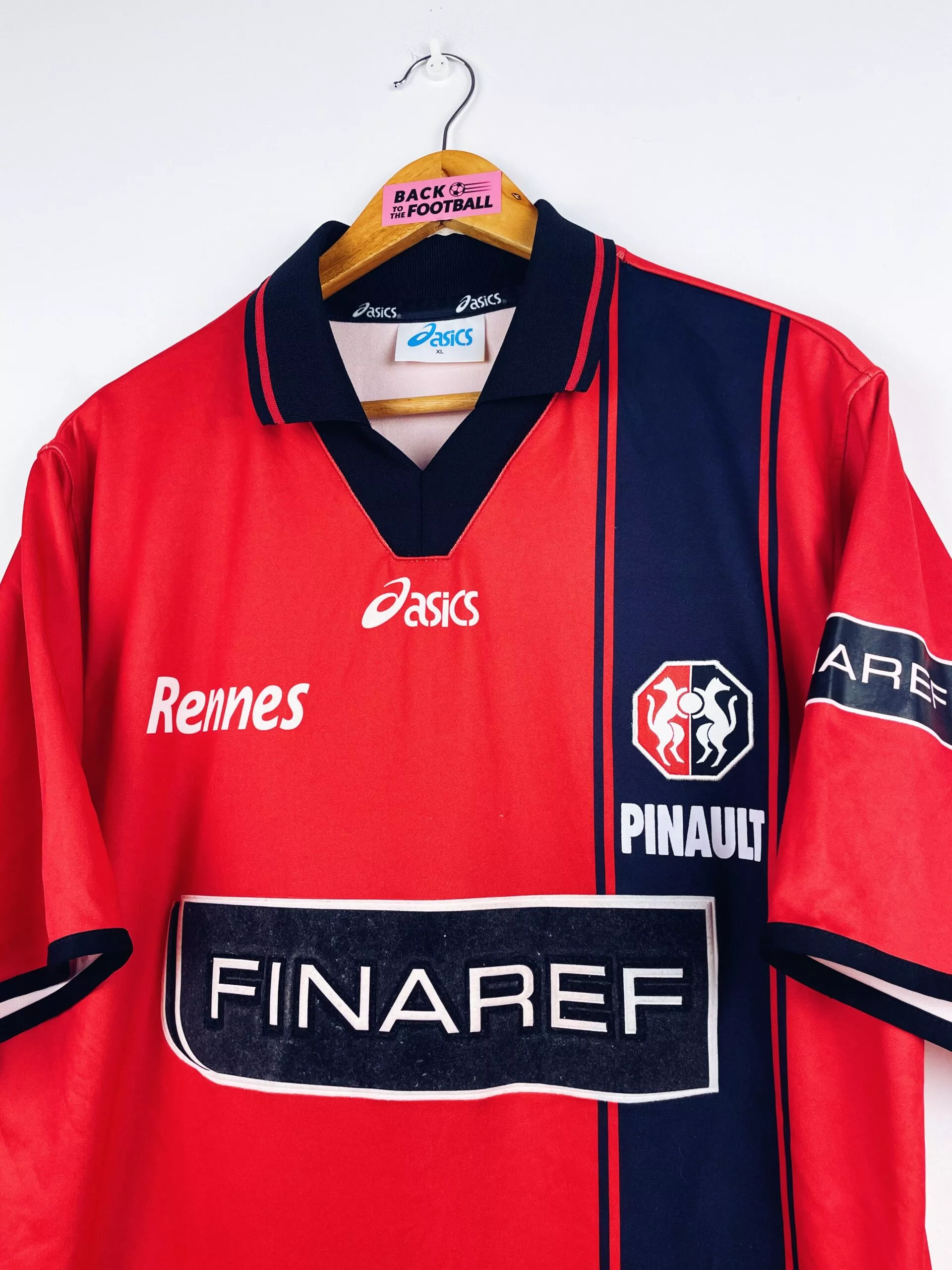 Taille : XL Si tu veux plus de détails, tu peux nous contacter par mail ou sur les réseaux 😉 Etat : 8/10, très bon état hormis le sponsor Conforama dans le dos qui est légèrement abimé (voir photo) Le maillot : maillot vintage domicile du Stade Rennais 2001/2002. L’écusson est brodé, le logo Asics est incrusté, le sponsor Finaref est en feutrine, les sponsors Pinault et Conforama sont floqués. Très beau maillot rétro de Rennes ! Histoire : première saison au club pour l’entraineur Christian Gourcuff. Les Rennais termineront 12ème de Ligue 1. Ils seront éliminés par 2 fois…