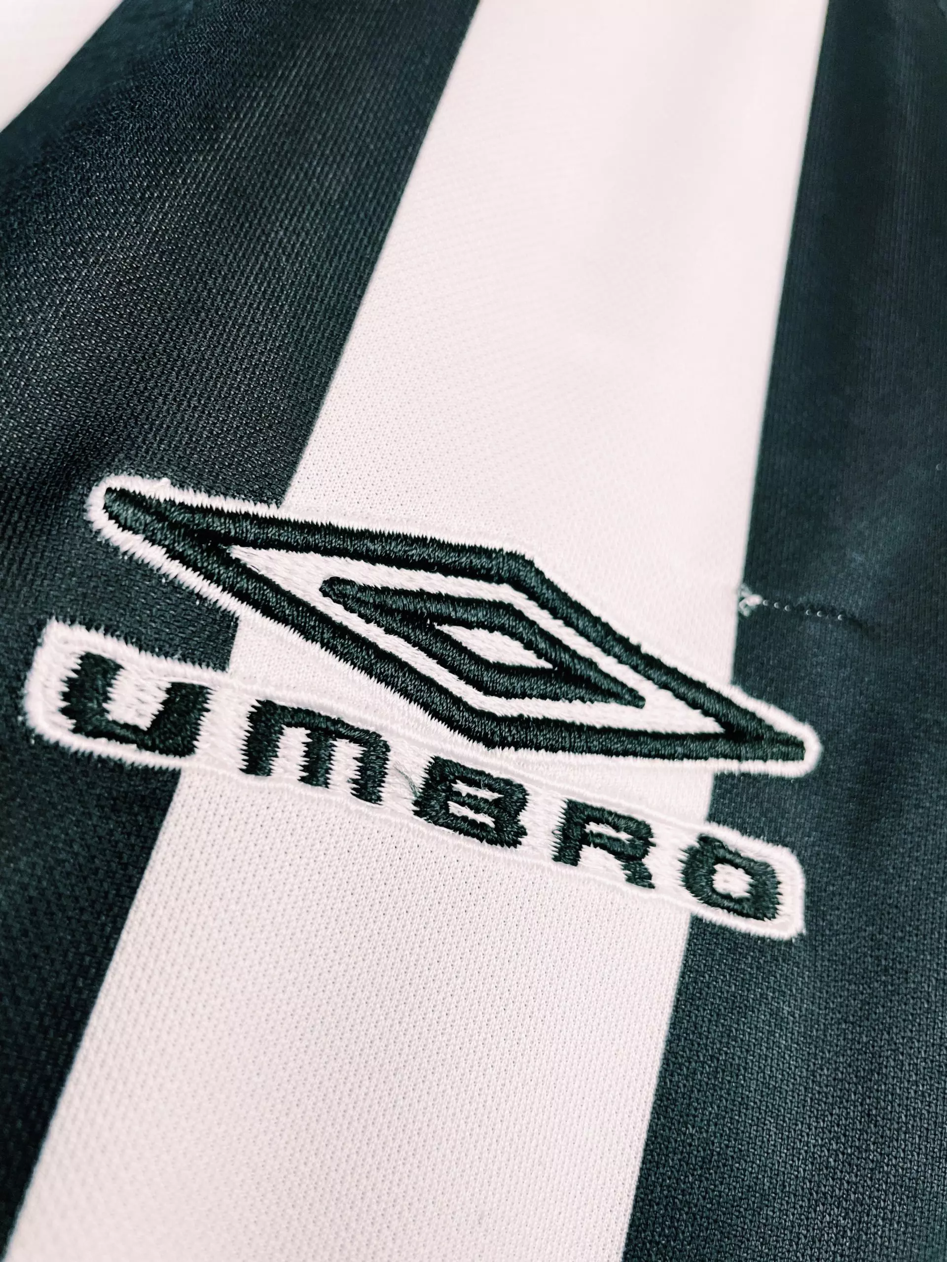 Taille : XL Etat : 8/10, très bon état hormis un mini accroc au niveau du logo Umbro (voir photo) Le maillot : maillot vintage de l’Atletico Mineiro 2002/2003 floqué du numéro 8. L’écusson est brodé, le logo Umbro aussi. Les sponsors sont incrustés au maillot. On peut voir le coq, emblème du club, brodé sur la manche ainsi que le drapeau du Brésil. Histoire : sur la saison 2002, le club terminera à la 6ème place, qualificative pour les playoffs. Mais les joueurs de Belo Horizonte seront éliminés en quart contre les Corinthians. Sur la saison 2003, le club…