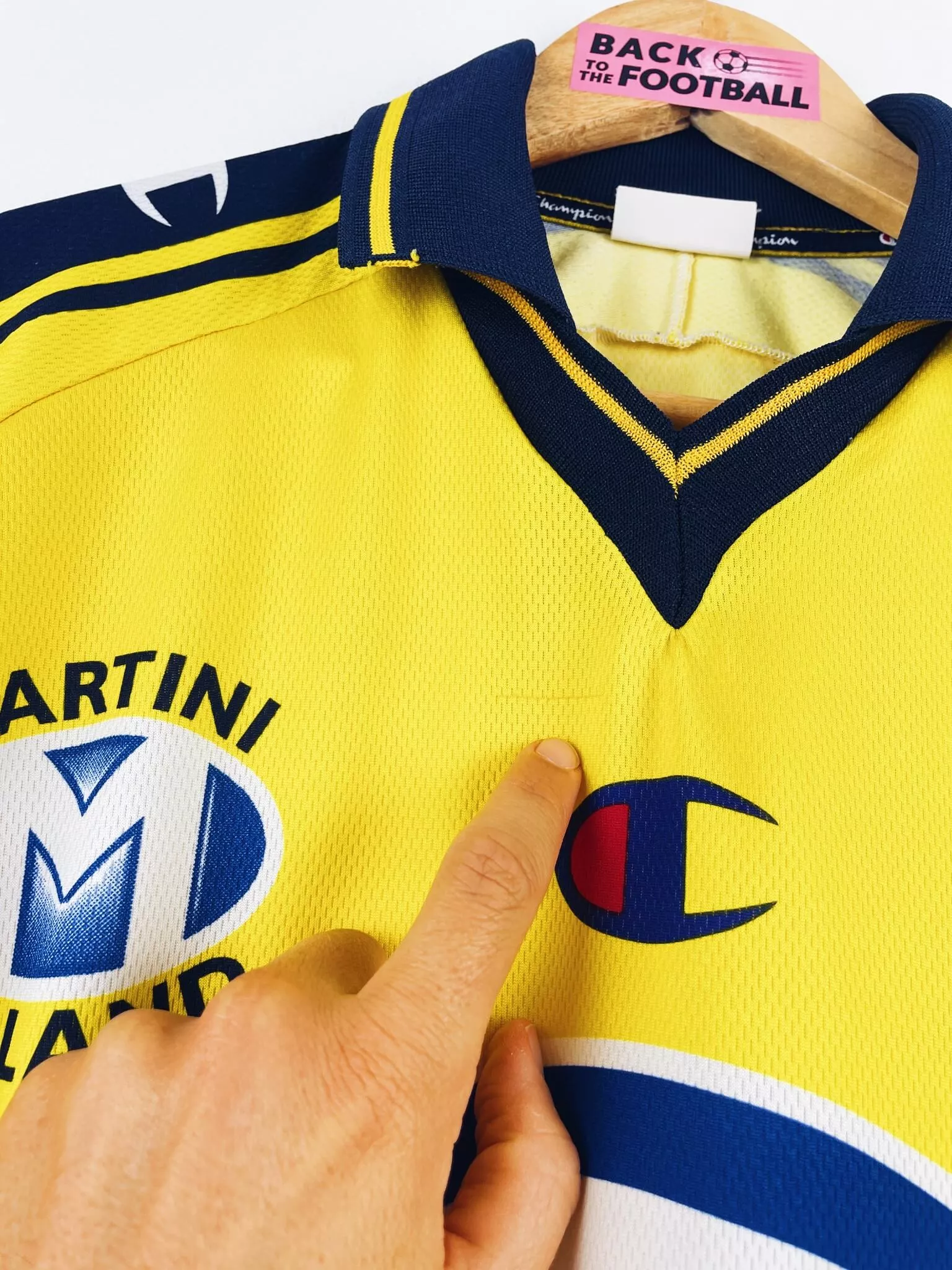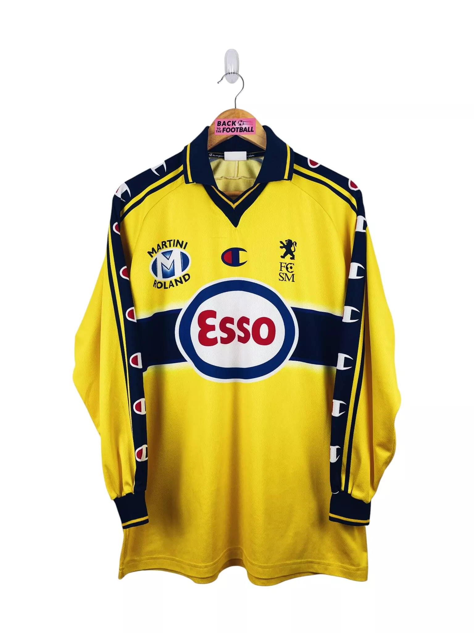 maillot vintage domicile du FC Sochaux 2002/2004 manches longues. L’écusson, le logo Champion et les sponsors Martini et Esso sont incrustés au maillot. Très beau maillot rétro du Sochaux Montbéliard !