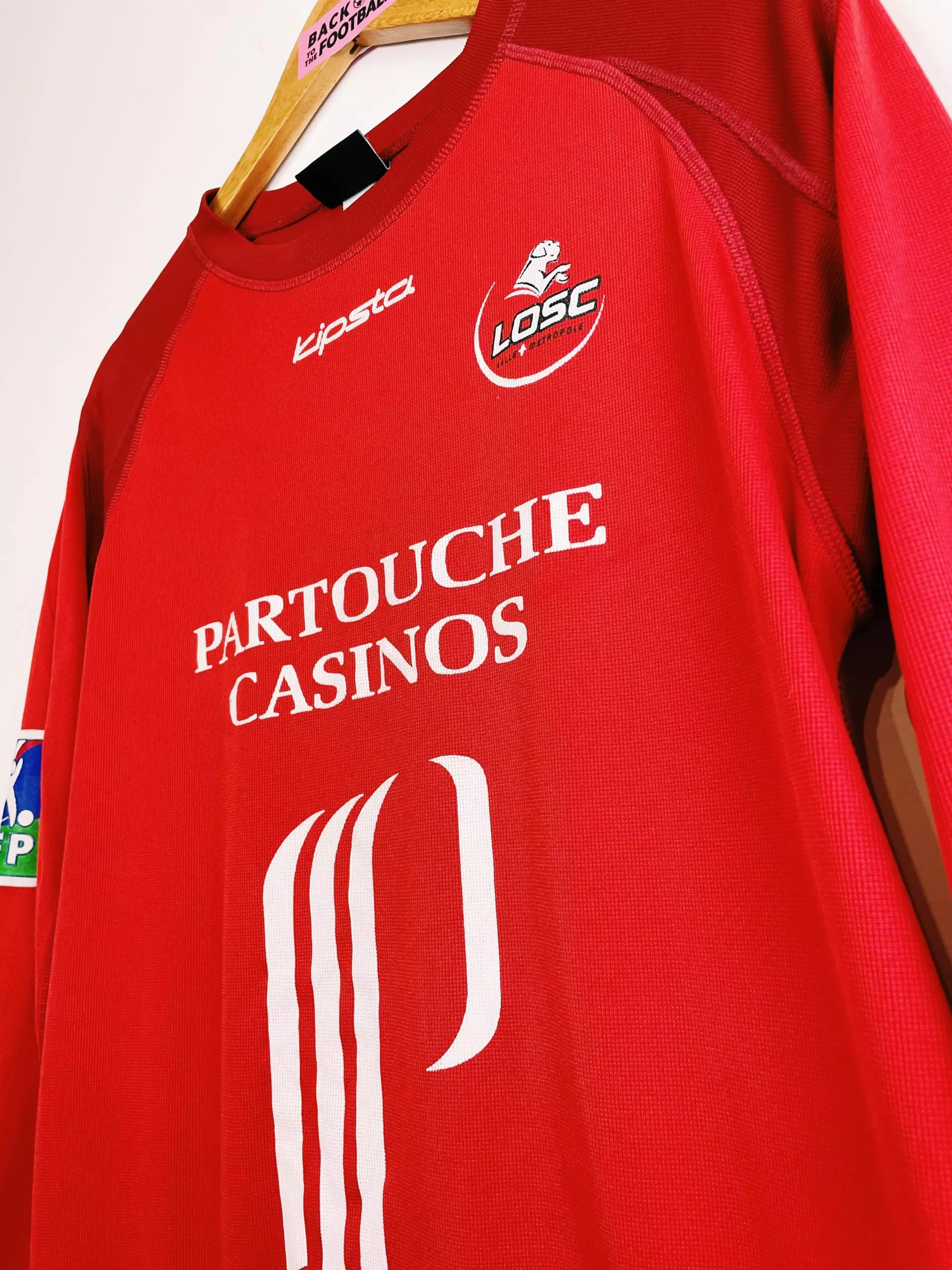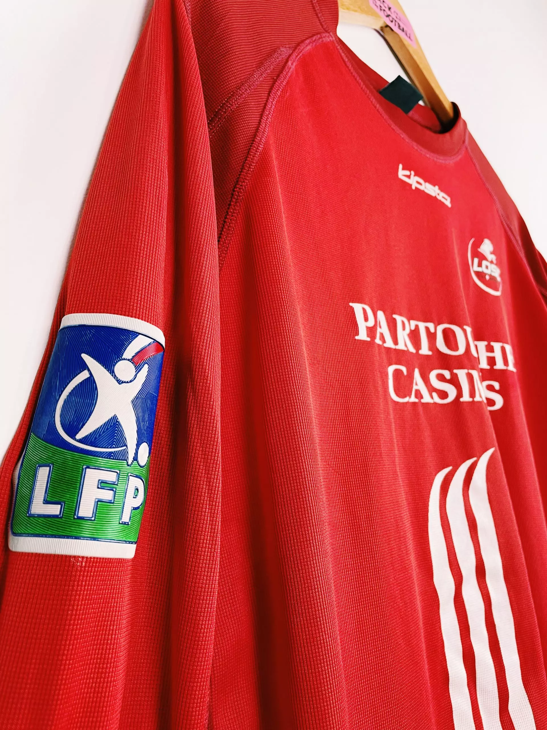 Taille : XL Etat : 7/10, bien conservé mais un accroc dans le dos et flocages sponsors légèrement abimés Le maillot : maillot vintage du LOSC 2004/2005 floqué Tavlaridis #4. L’écusson, le logo Kipsta et le sponsor sont floqués. Le patch LFP est collé à la manche. Histoire : très grosse saison des Lillois sous les ordres de Claude Puel avec une 2ème place en Ligue 1 derrière le grand Lyon de l’époque. Les Dogues gagneront la Coupe Intertoto. Ils s’inclineront en huitièmes de finale des différentes coupes, notamment la Coupe UEFA contre Auxerre. Le grec Tavlaridis jouera aux côtés…