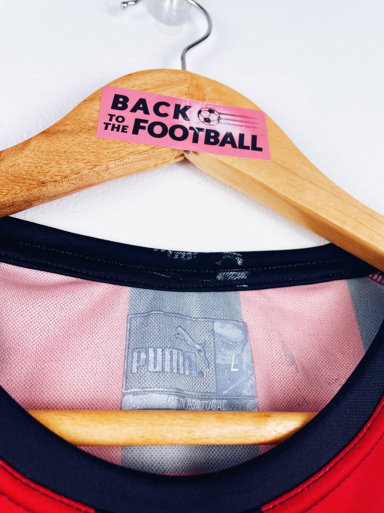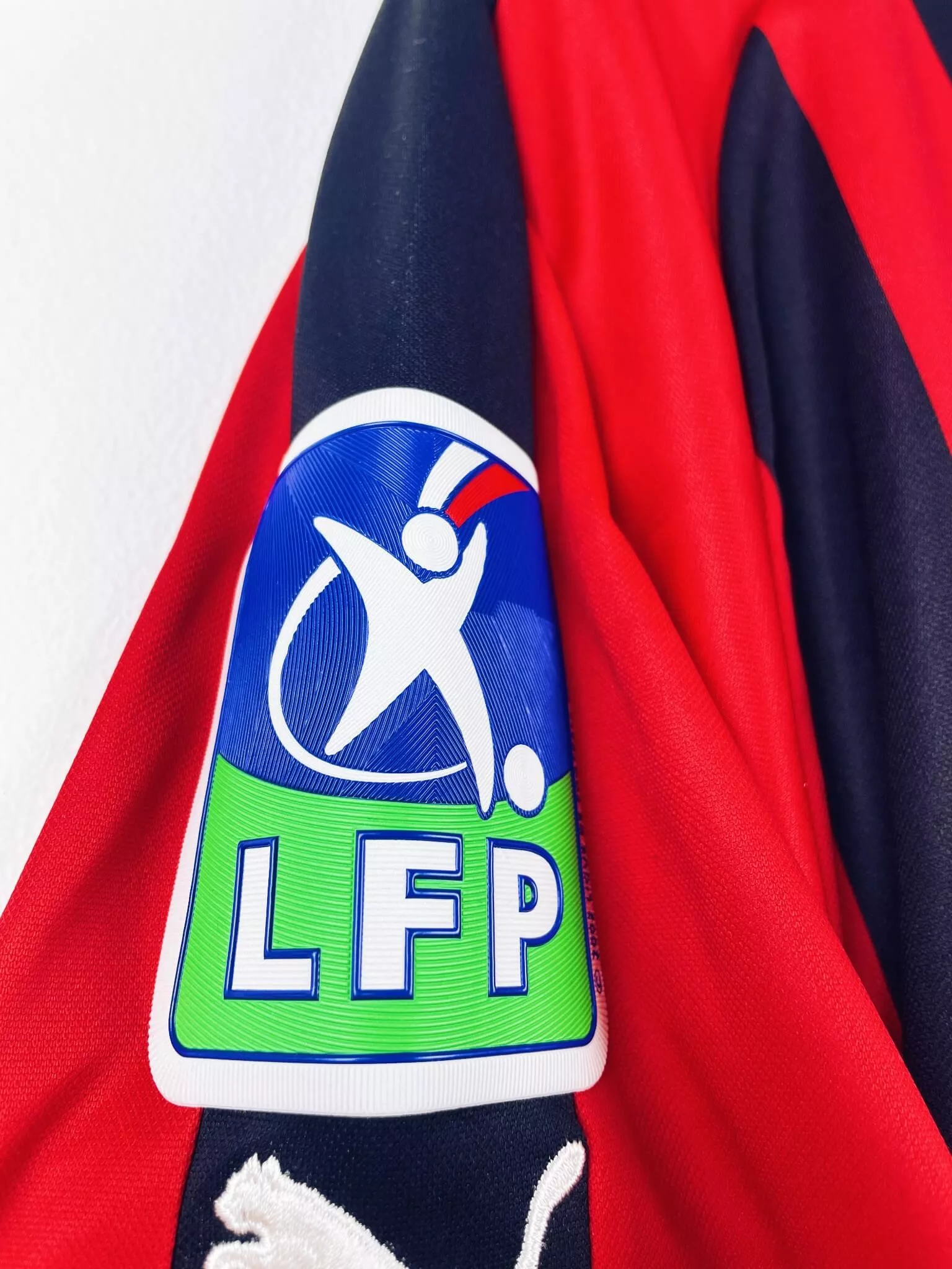 Taille : L Largeur : 53cm (aisselle à aisselle) Longueur : 75cm (base du col au bas) Si tu veux plus d’infos, tu peux nous contacter par mail ou sur les réseaux 😉 Etat : 8.5/10, excellent état, une bouloche dans le dos, l’intérieur du col a des traces (voir photos) Le maillot : maillot vintage domicile OGC Nice 2004/2005 porté (match worn) par Grenet #5 : sponsors additionnels, patch LFP et flocage officiels. L’écusson et le logo Puma sont brodés, les sponsors et Grenet #5 sont floqués, le patch LFP est thermocollé. Maillot récupéré via la collection du joueur.…