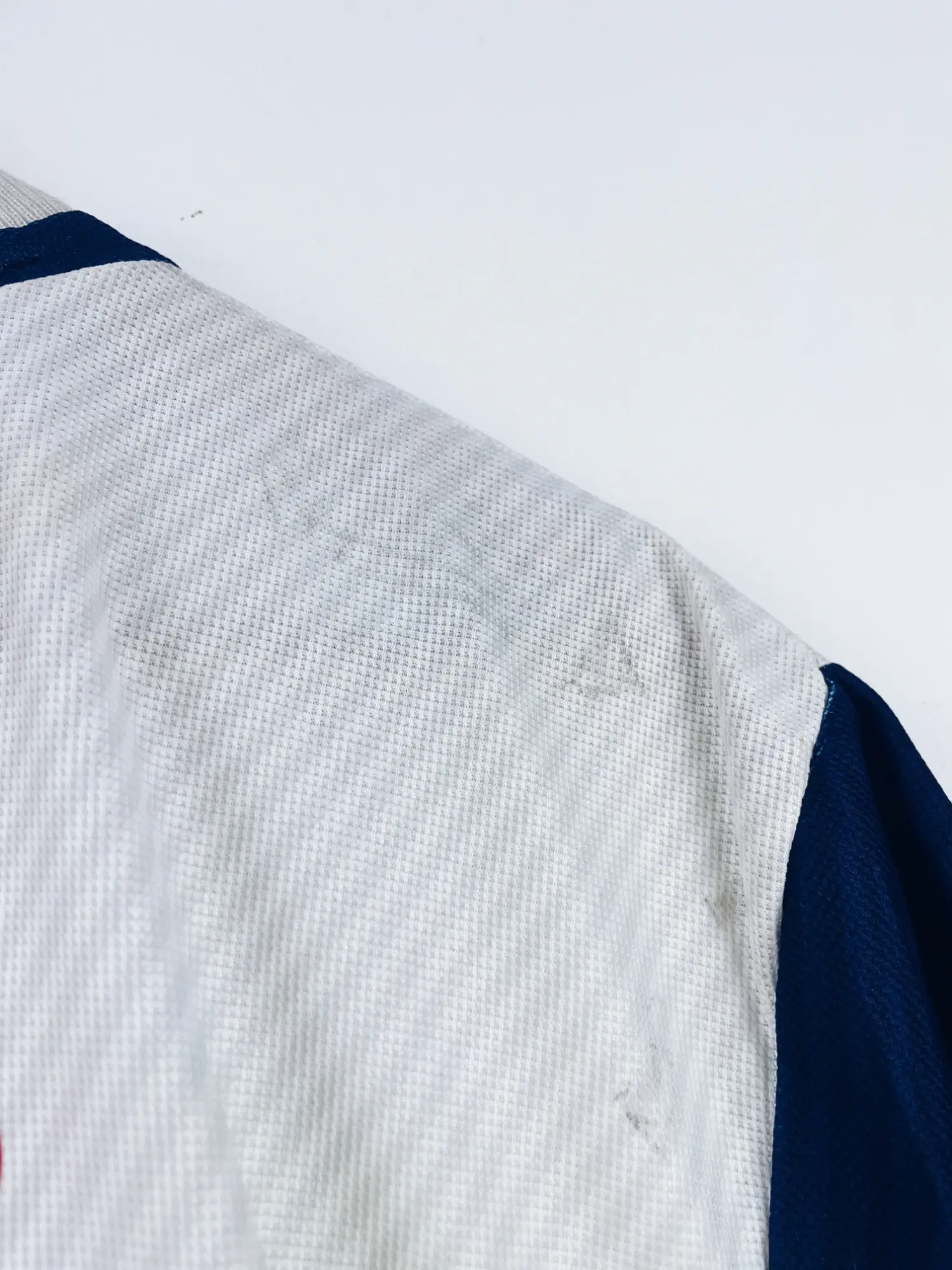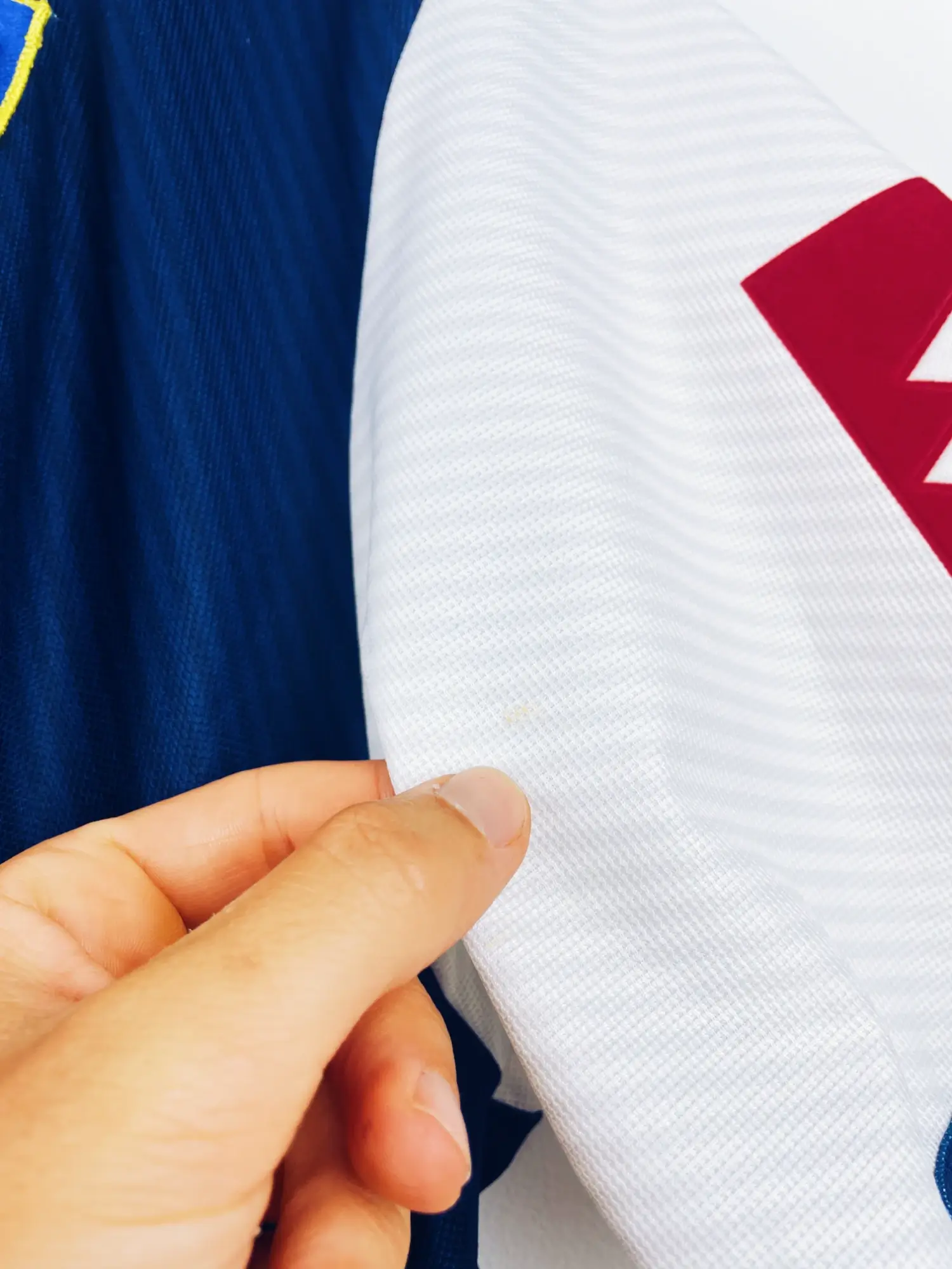 Taille : XL Largeur : 55cm (aisselle à aisselle) Longueur : 76cm (base du col au bas) Si tu veux plus de détails, tu peux nous contacter par mail ou sur les réseaux 😉 Etat : 8/10, très bon état, quelques traces, sûrement du match s’il a été porté (voir photos) Le maillot : maillot vintage extérieur Chievo Verone 2004/2005 préparé (match issue) ou porté (match worn) par Malagò #32. L’écusson et le logo Lotto sont brodés, le sponsor et Malagó #32 sont floqués, le patch Serie A est en feutrine. Très beau maillot rétro de Chievo Verona ! Histoire…
