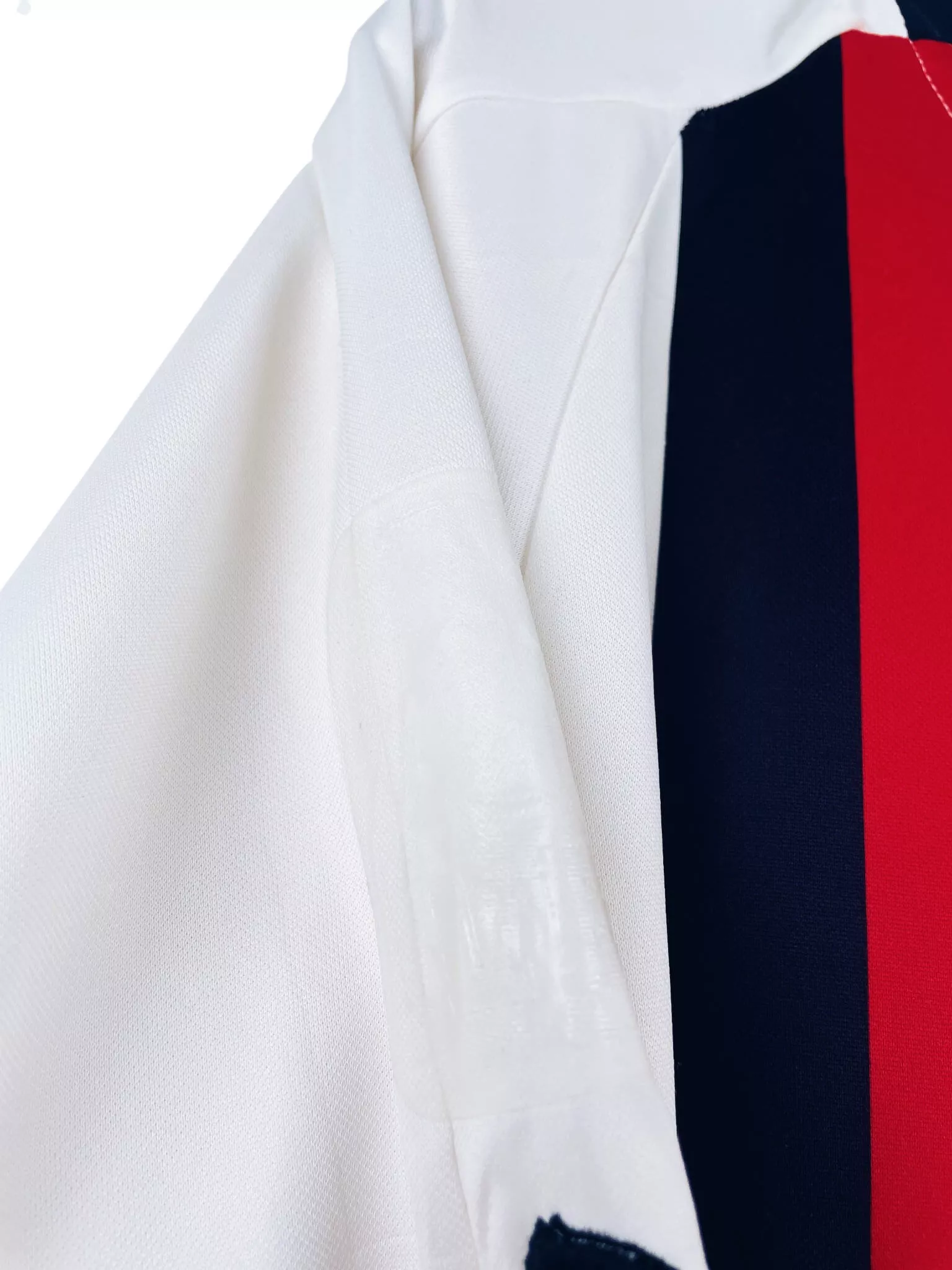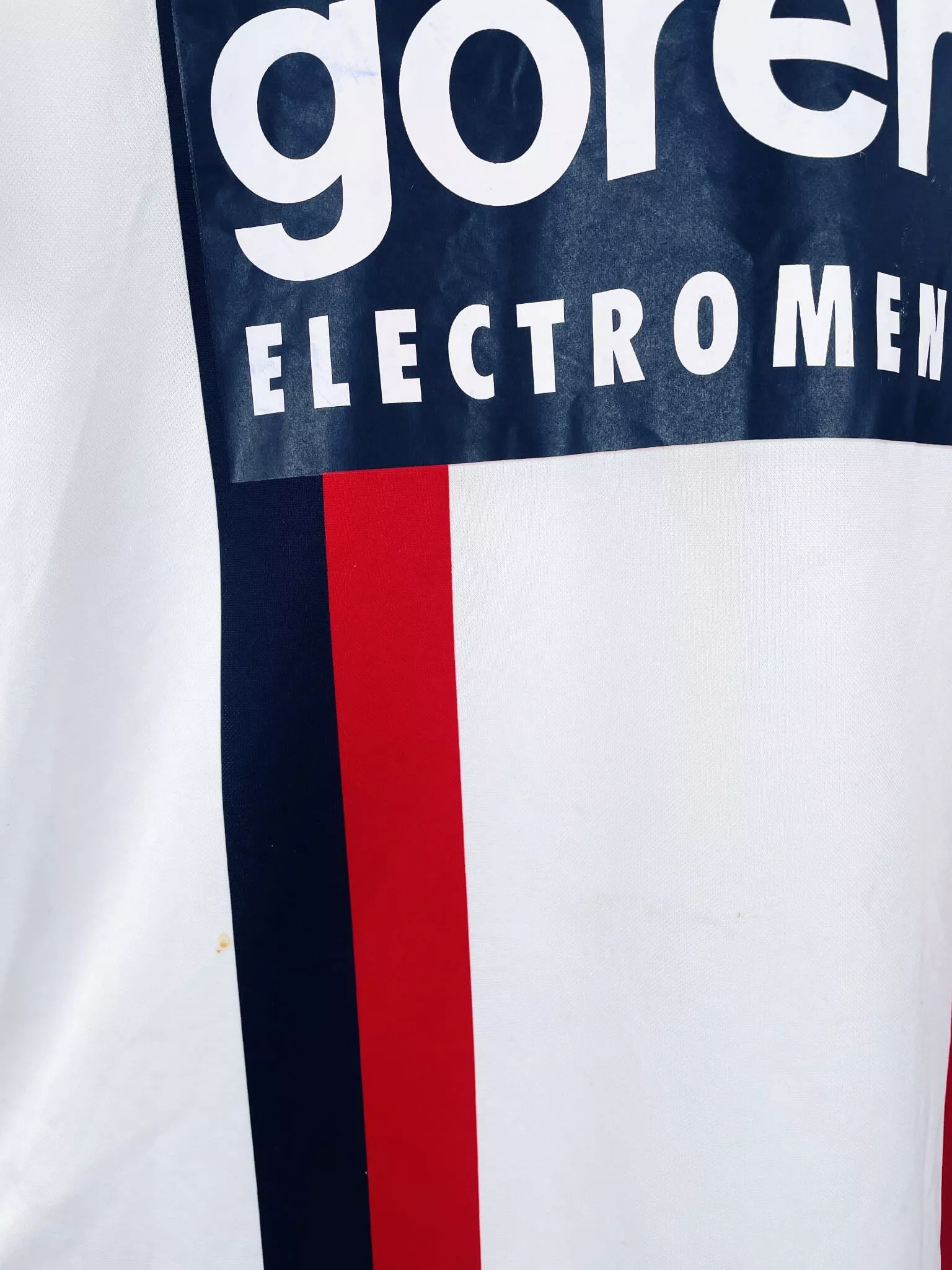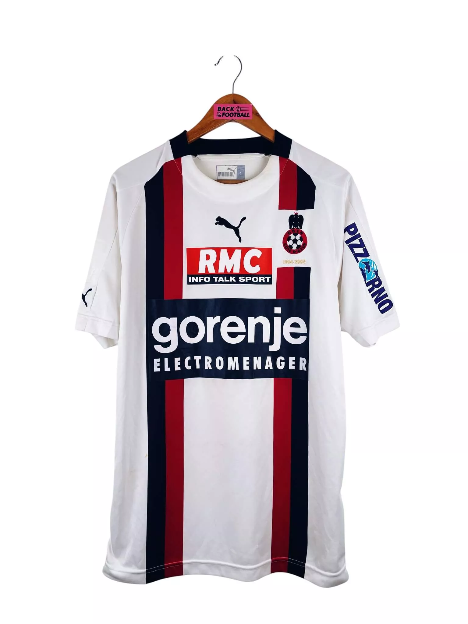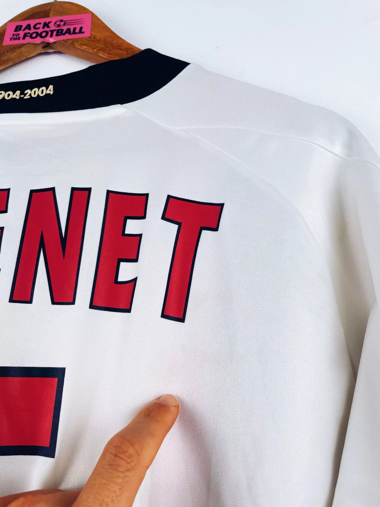 Taille : L Largeur : 53cm (aisselle à aisselle) Longueur : 76cm (base du col au bas) Si tu veux plus d’infos, tu peux nous contacter par mail ou sur les réseaux 😉 Etat : 7/10, très bon état mais des légères traces du match, le patch LFP s’est enlevé (voir photos) Le maillot : maillot vintage extérieur OGC Nice 2004/2005 porté (match worn) par Grenet #5 : sponsors additionnels, patch LFP et flocage officiels. L’écusson et le logo Puma sont brodés, les sponsors et Grenet #5 sont floqués, le patch LFP est thermocollé. Maillot récupéré via la collection du…