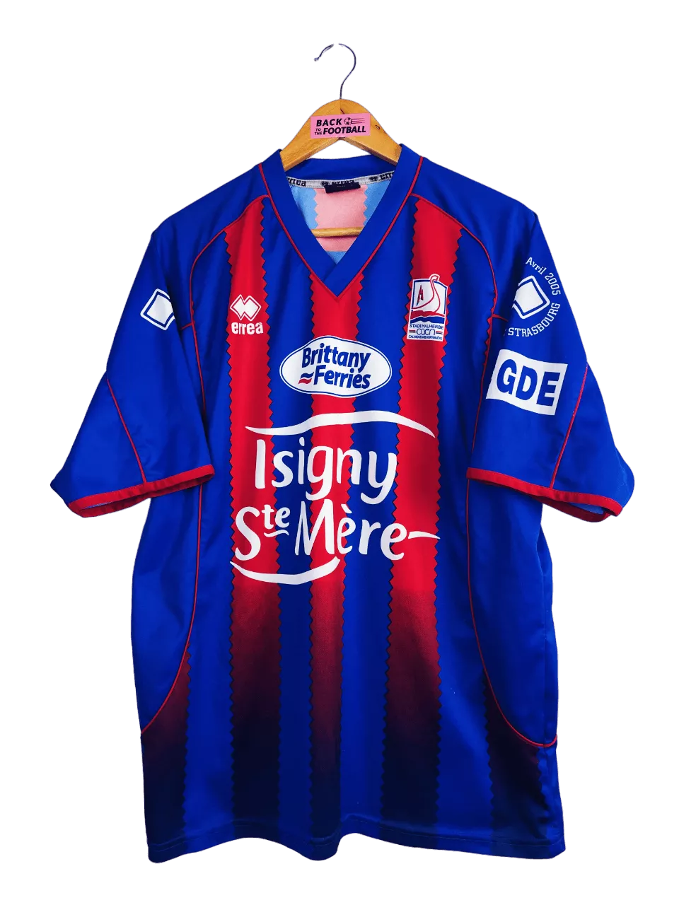 Taille : L Etat : 8/10, très bon état. Un mini accro sur le devant. Le maillot : maillot vintage domicile du SM Caen 2004/2005 spécial pour la Coupe de la Ligue. L’écusson, le logo Errea et les sponsors sont incrustés au maillot. Le flocage à l’arrière pour la finale de Coupe de la Ligue est aussi incrusté. Très beau maillot rétro du SM Caen ! Histoire : le Stade Malherbe vient de remonter en Ligue 1 après 7 ans en deuxième division. Les Caennais feront un très beau parcours en Coupe de la Ligue en éliminant Ajaccio, Sochaux, Auxerre,…