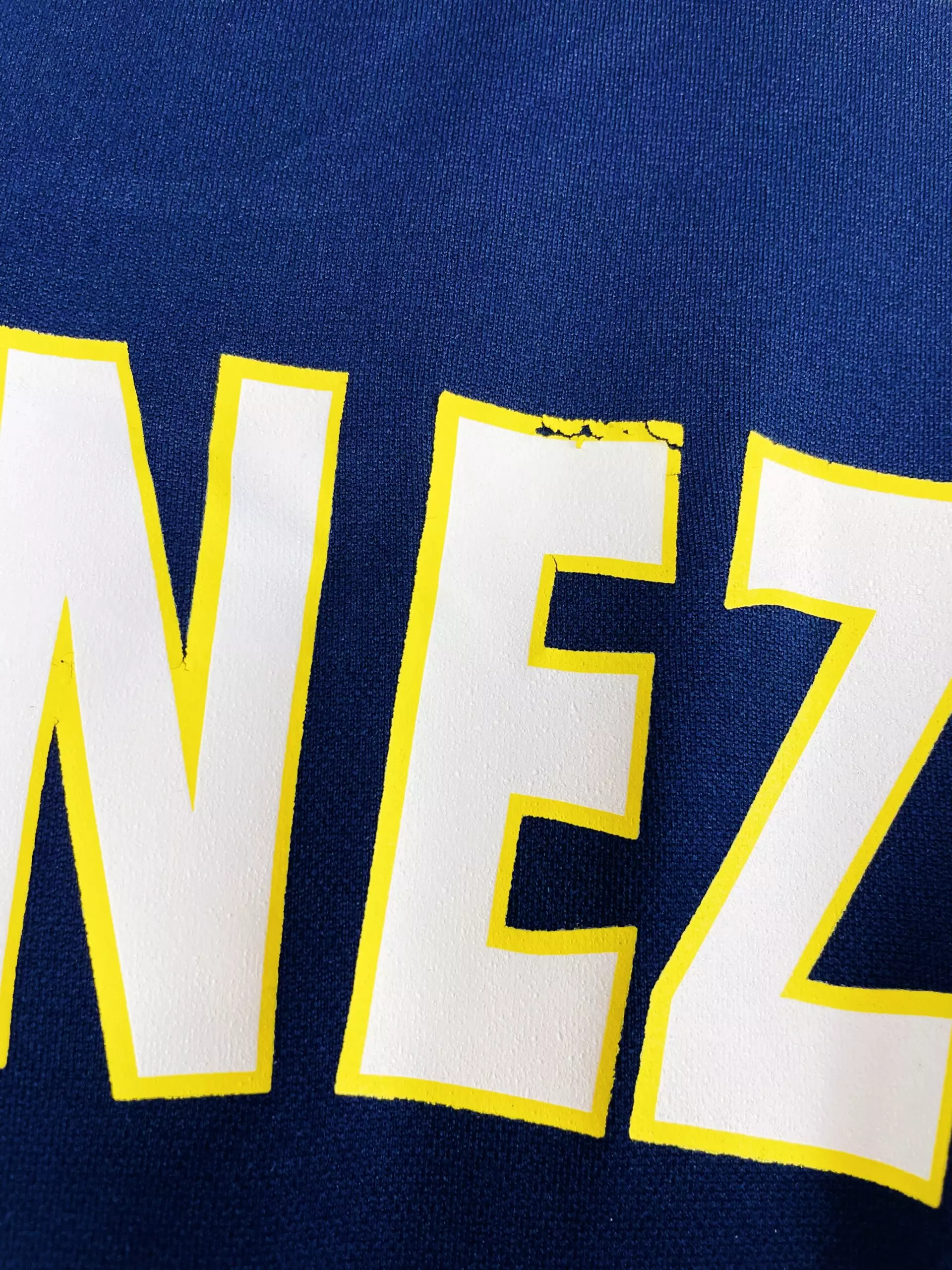 Taille : XL mais taille serré Etat : 8/10, excellent état, sauf le flocage joueur qui est abimé sur le « E » (voir photo) Le maillot : maillot vintage extérieur de Sochaux saison 2004/2005 floqué Jérémy Menez #26. L’écusson et le logo Lotto sont brodés. Les sponsors sont floqués. Très beau maillot rétro du Sochaux Montbéliard ! Histoire : Sochaux terminera à la 10ème place de Ligue 1 après avoir terminé 5ème la saison précédente. Les sochaliens, coachés par Guy Lacombe, iront jusqu’en quart de Coupe de France et seront éliminés par le Nîmes Olympique. En Coupe UEFA, le FCSM sortira…