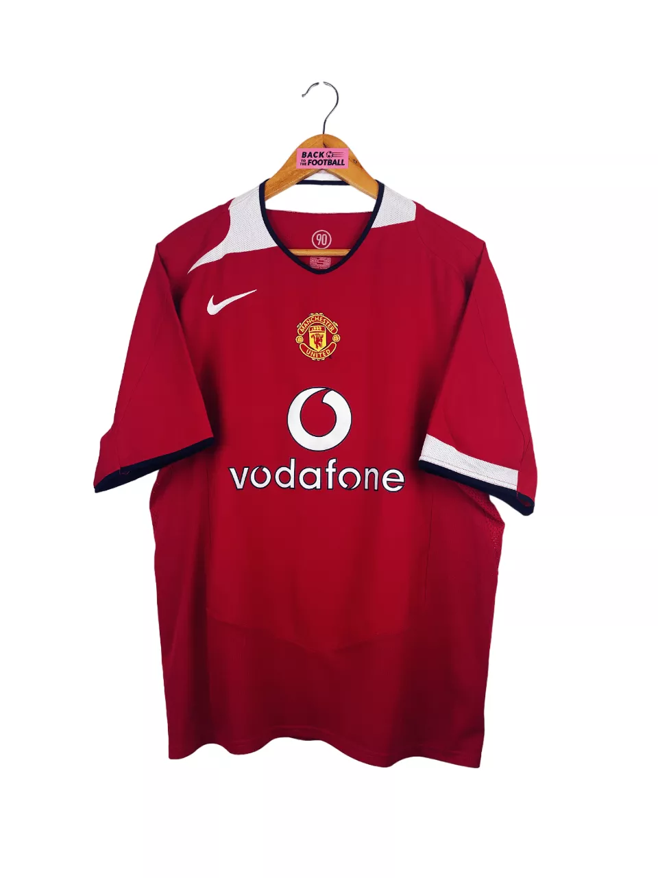 Taille : L Si tu veux plus de détails, tu peux nous contacter par mail ou sur les réseaux 😉 Etat : 8.5/10, excellent état Le maillot : maillot domicile vintage de Manchester United 2004/2006 floqué Keane #16. L’écusson des Reds Devils et le logo Nike sont brodés. Le sponsor et Keane #16 au dos sont floqués. Très beau maillot rétro de Manchester United ! Histoire : la première saison, United finit sur le podium de Premier League derrière Chelsea et Arsenal. Ils perdront en finale de coupe contre Arsenal. Rooney marque 17 buts cette saison et est le meilleur…