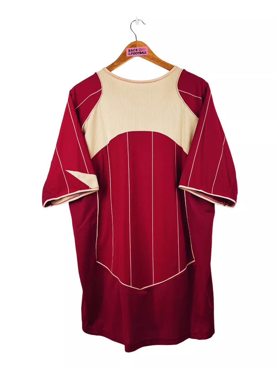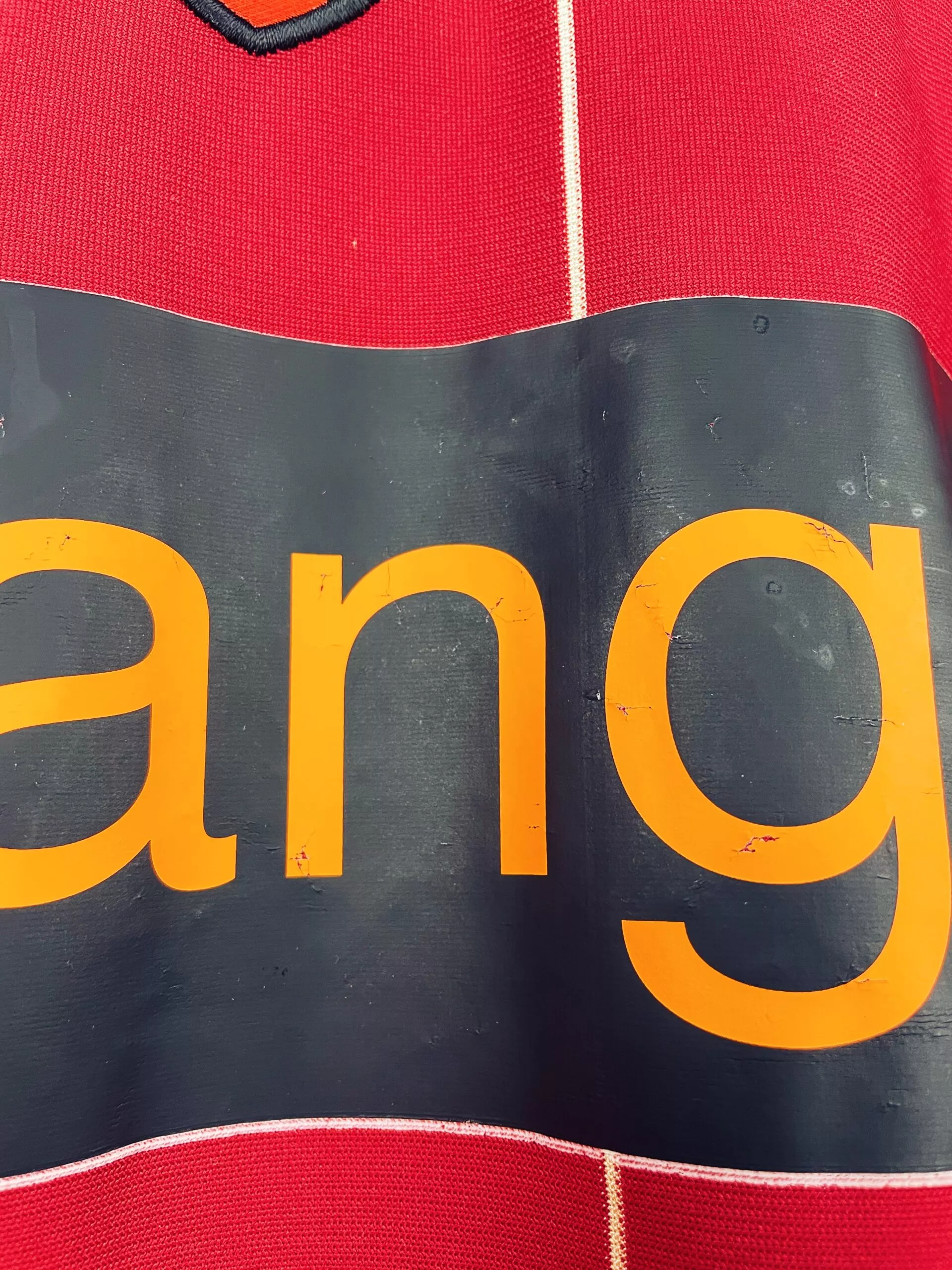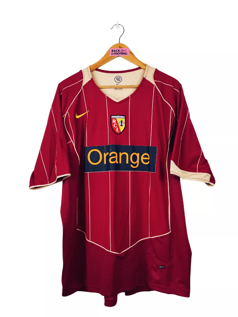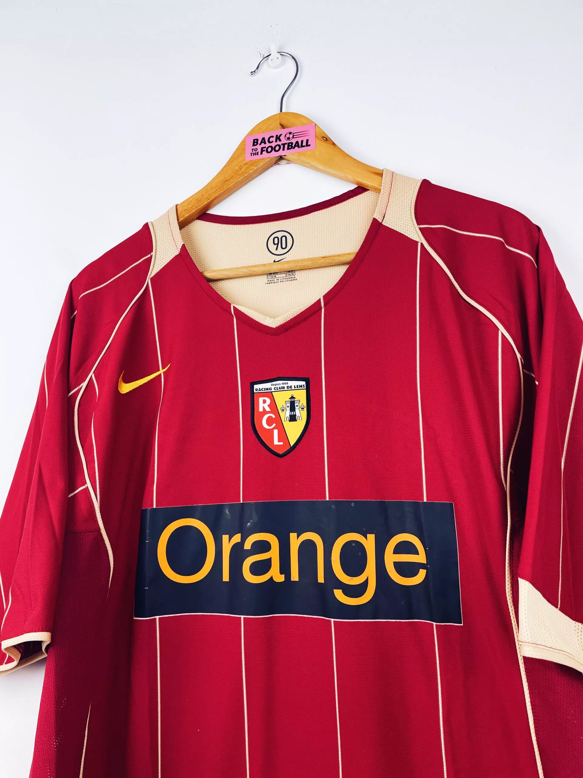 Taille : XL Si tu veux plus de détails, tu peux nous contacter par mail ou sur les réseaux 😉 Etat : 7.5/10, très bon état hormis le sponsor Orange un peu abimé (voir photos) Le maillot : maillot vintage domicile du RC Lens 2004/2006. L’écusson et le logo Nike sont brodés, le sponsor Orange est floqué. Très beau maillot rétro du RC Lens ! Histoire : la 1ère saison, les Sang et Or terminent 7èmes. Ils sont éliminés en quart de Coupe de la Ligue. La 2ème saison, les lensois terminent 4èmes de Ligue 1. Ils sont éliminés en…