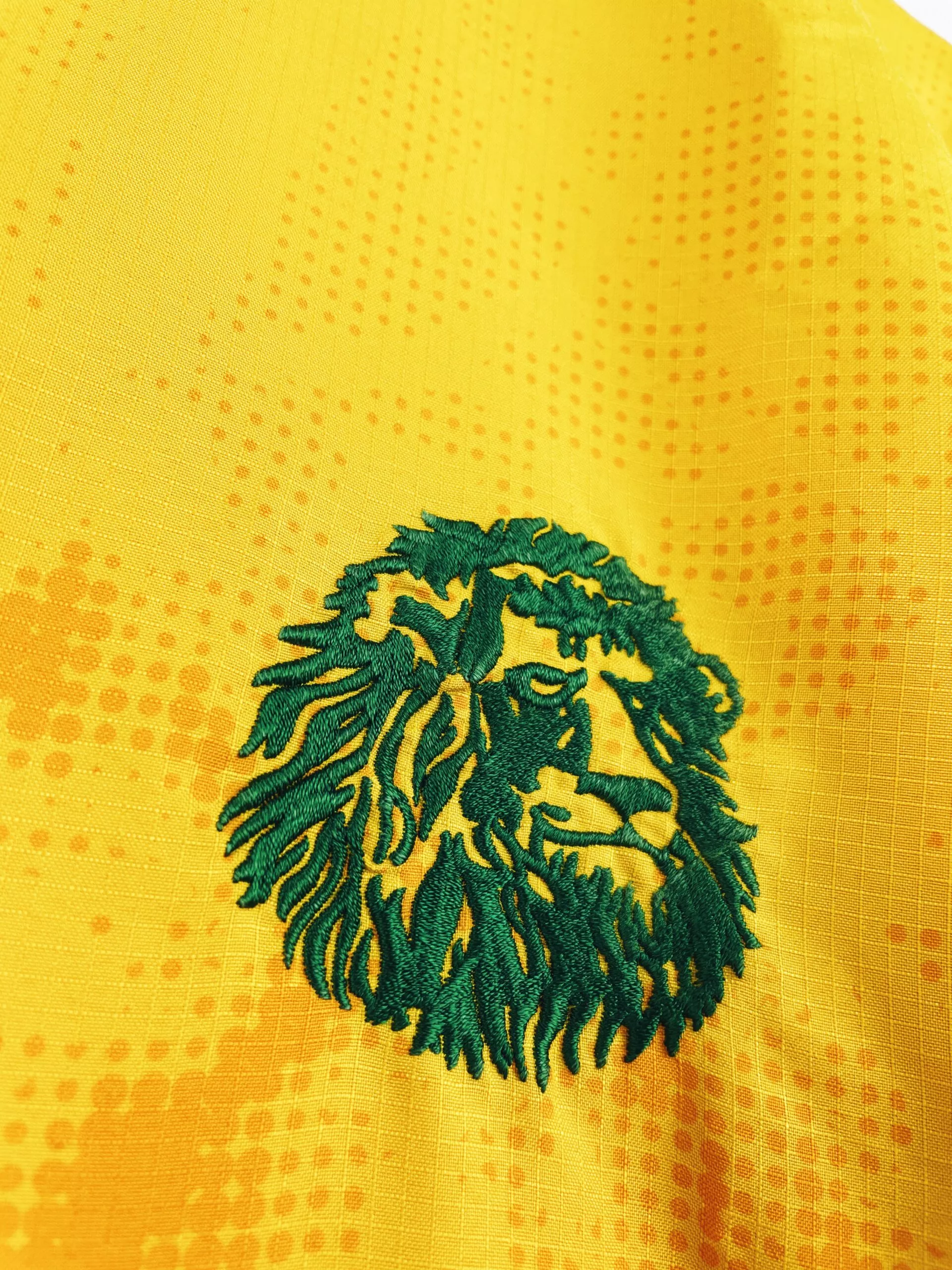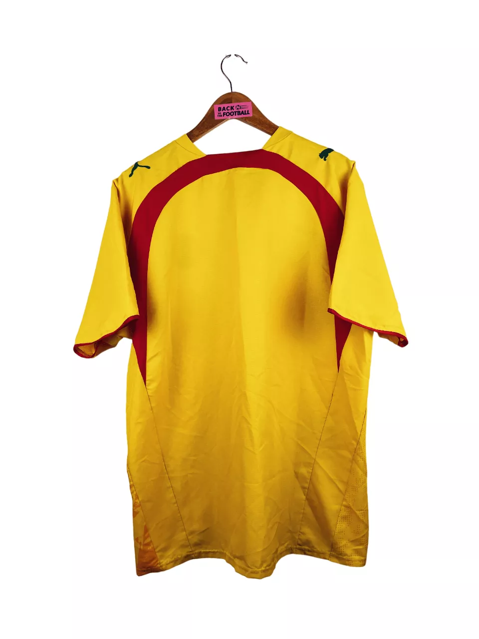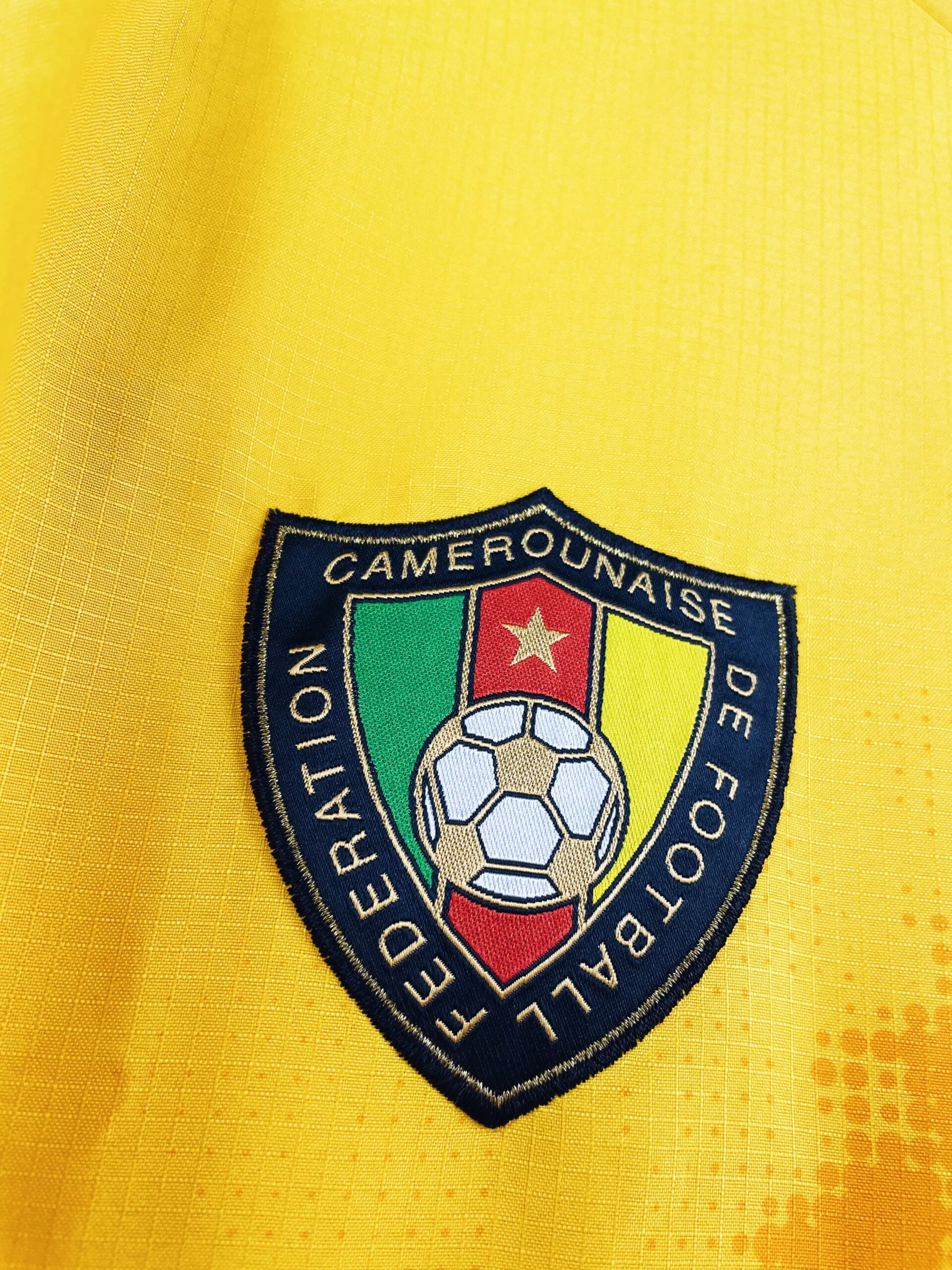Taille : L Si tu veux plus de détails, tu peux nous contacter par mail ou sur les réseaux 😉 Etat : 8.5/10, excellent état Le maillot : maillot vintage extérieur du Cameroun 2006. Les écussons et le logo Puma sont brodés. On peut voir un lion rugissant en motif. Très beau maillot rétro du Cameroun ! Histoire : le Cameroun termine à la 1ère place de son groupe à la CAN 2006. En quarts, les Lions indomptables font match nul 1-1 contre la Côte d’Ivoire. Après 11 tirs au but, Eto’o loupe le sien lors de son 2ème passage…