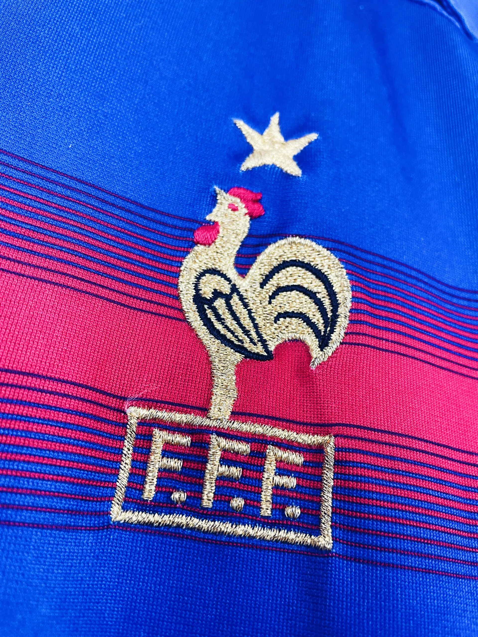 Tu cherches un maillot vintage de l’équipe de France? Tu connais la finale de la Coupe du Monde 1998 par coeur? Tu regardes les compilations des contrôles de Zidane sur Youtube? Tu penses souvent au poteau de Gignac? Puis tu penses au second poteau Pavard et ça va mieux? T’espères avoir une 3ème étoile? Alors tu devrais trouver ton bonheur parmi nos maillots de foot vintage de l’équipe de France.