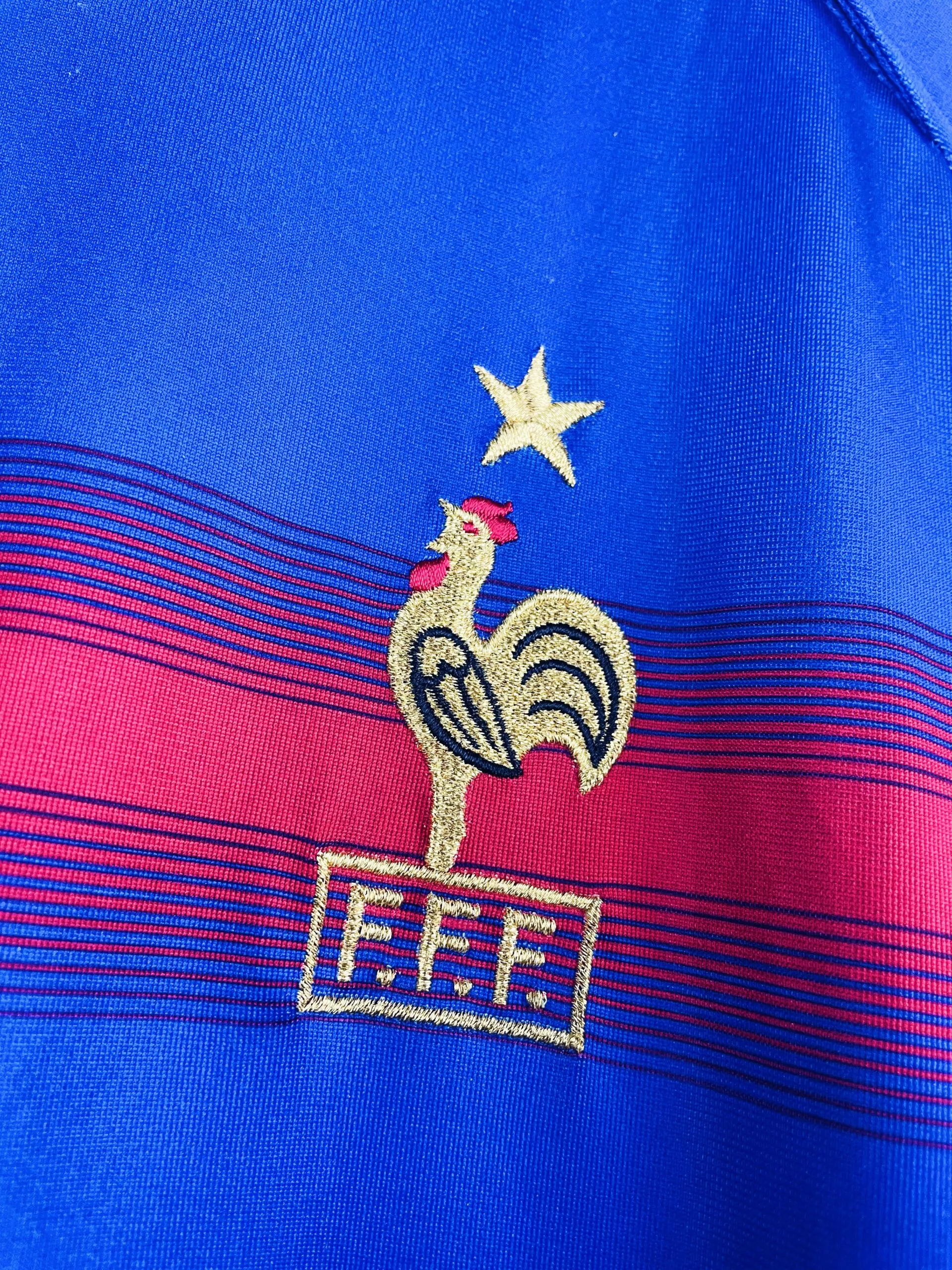 Tu cherches un maillot vintage de l’équipe de France? Tu connais la finale de la Coupe du Monde 1998 par coeur? Tu regardes les compilations des contrôles de Zidane sur Youtube? Tu penses souvent au poteau de Gignac? Puis tu penses au second poteau Pavard et ça va mieux? T’espères avoir une 3ème étoile? Alors tu devrais trouver ton bonheur parmi nos maillots de foot vintage de l’équipe de France.