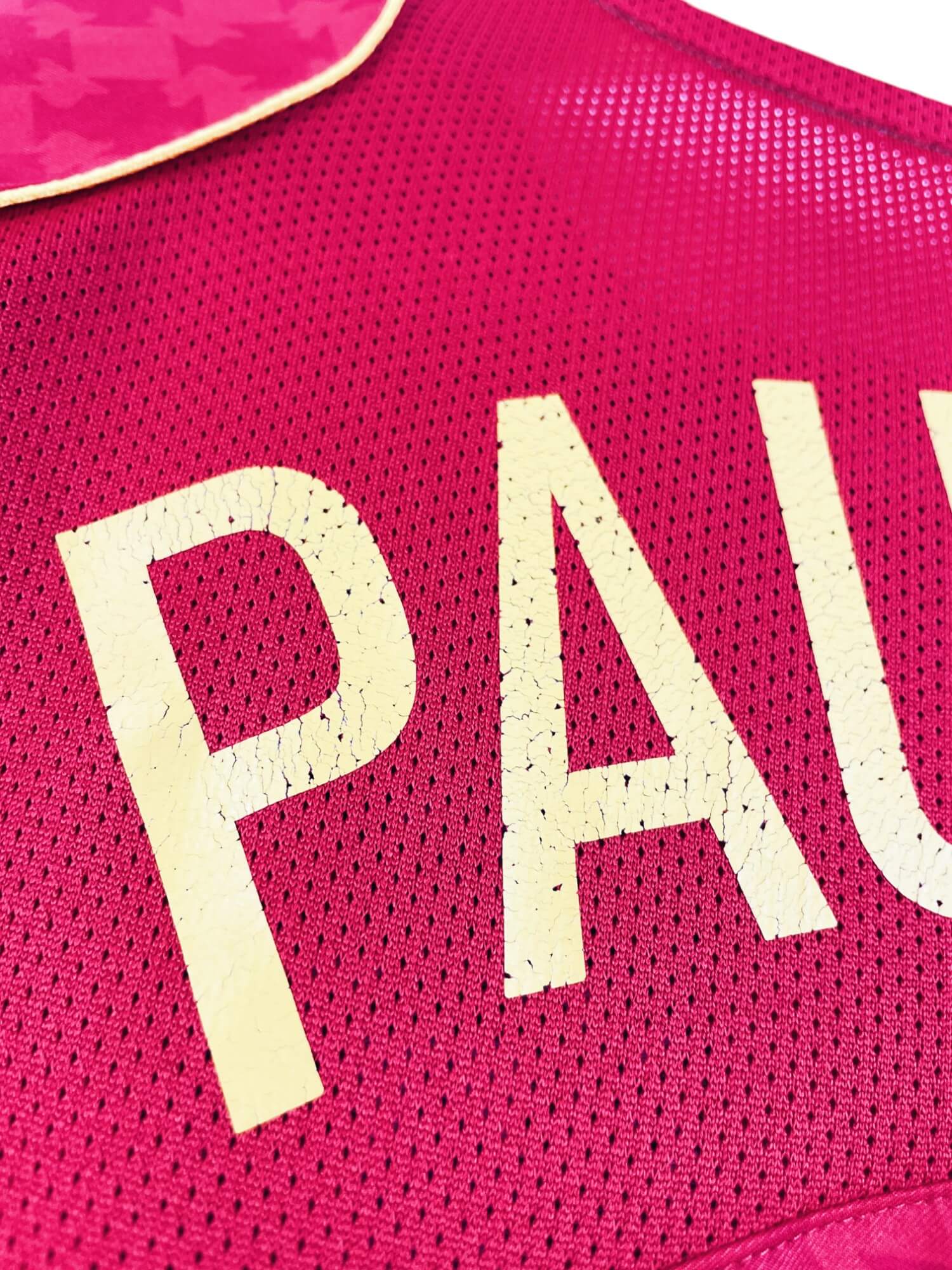 Taille : S Largeur : 48cm (aisselle à aisselle) Longueur : 67cm (base du col au bas) Etat : 8/10, très bon état hormis le flocage Pauleta qui est abimé et 2 minis points noirs devant (voir photos) Le maillot : maillot vintage domicile du Portugal pour l’Euro 2004, floqué Pauleta #9. L’écusson et le logo Nike sont brodés. Pauleta #9 est floqué. On peut voir en l’écusson en motifs sur tout le maillot. Très beau maillot rétro du Portugal ! Histoire : le Portugal organise l’Euro 2004 sur ses terres. Lors du match d’ouverture, les portugais s’inclinent contre la…