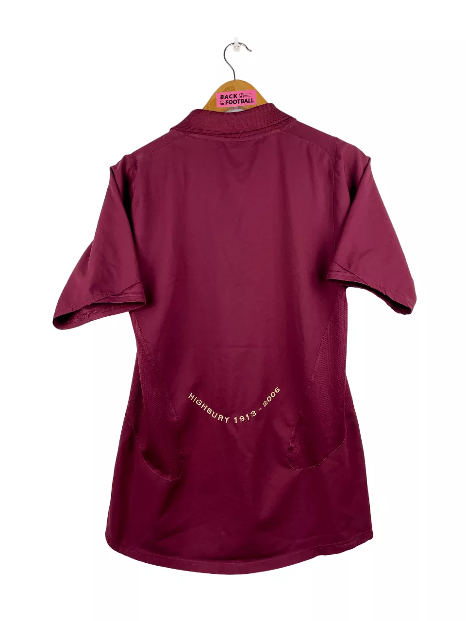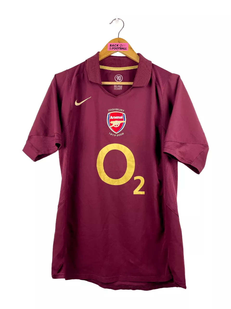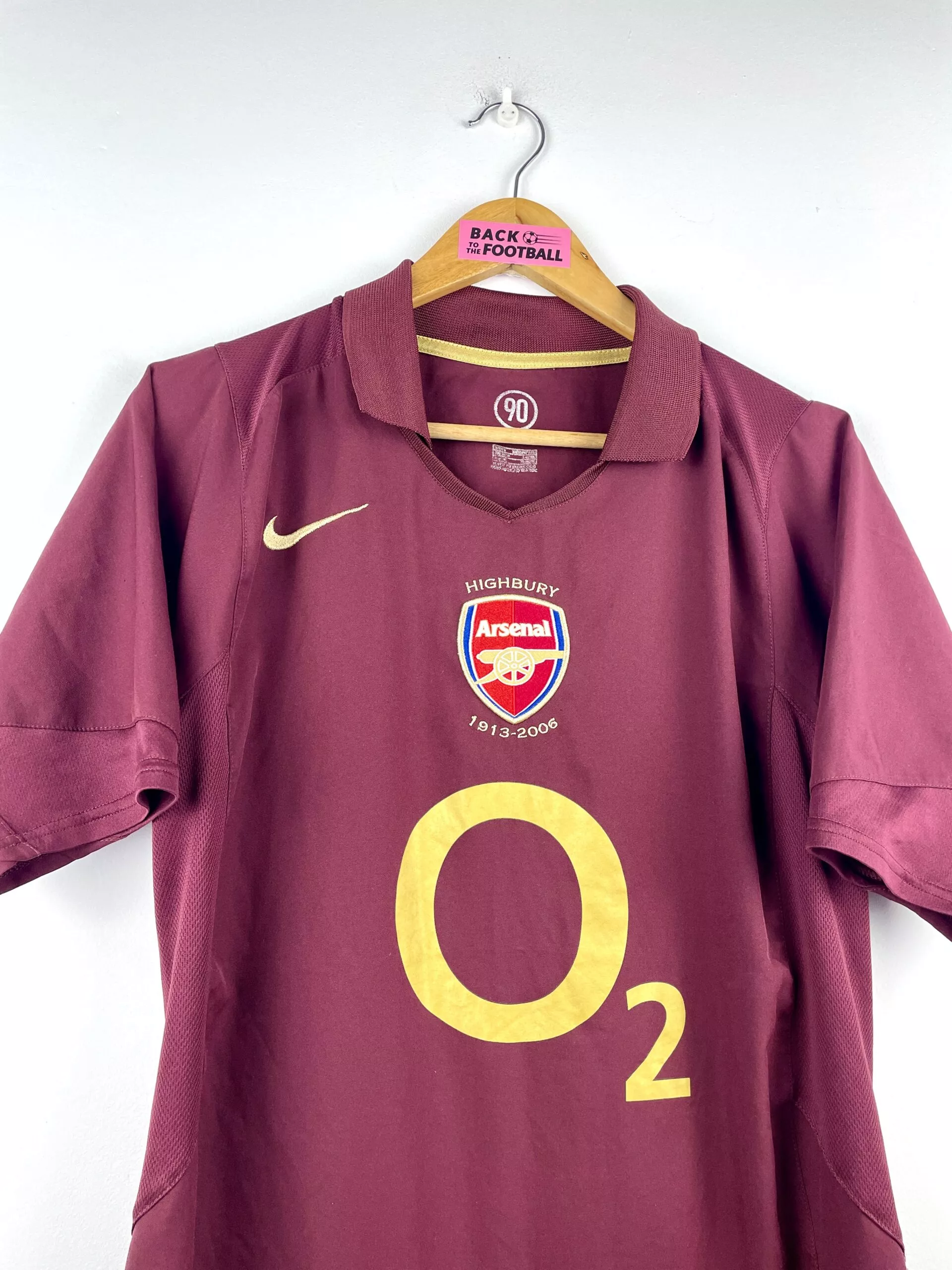 Taille : S Si tu veux plus de détails, tu peux nous contacter par mail ou sur les réseaux 😉 Etat : 8/10, très bon état hormis un micro trou dans le dos (voir photo) Le maillot : maillot vintage domicile d’Arsenal 2005/2006. L’écusson spécial pour la dernière saison à Highbury est brodé, le logo Nike aussi. Le sponsor mythique O2 est floqué. Très beau maillot rétro d’Arsenal ! Histoire : dernière saison jouée à Highbury pour les Gunners d’Arsène Wenger. Une 4ème place en Premier League, derrière Chelsea, Manchester United et Liverpool. Arsenal fera une très belle campagne en…