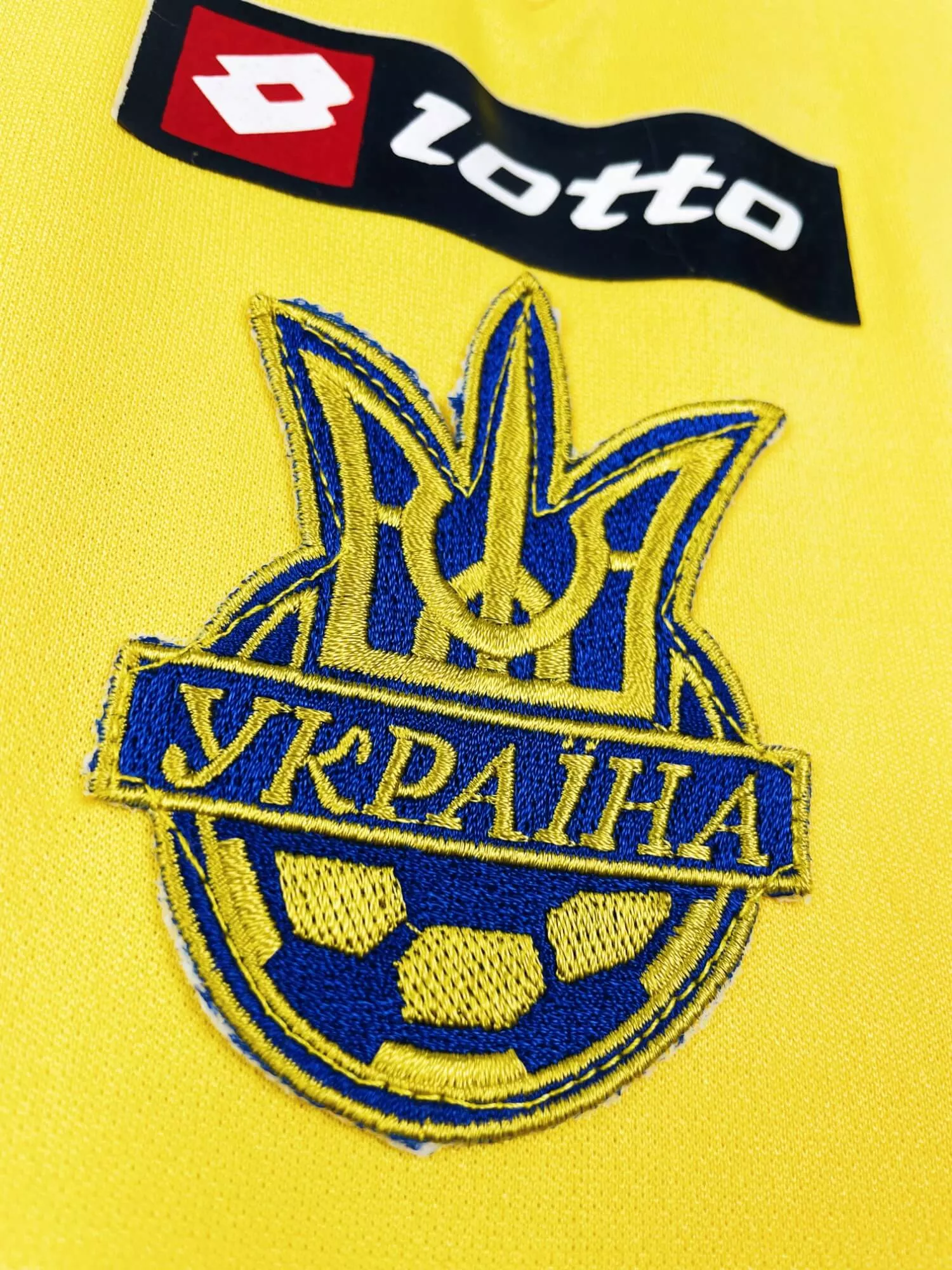 Taille : XL Largeur : 55cm (aisselle à aisselle) Longueur : 74cm (base du col au bas) Si tu veux plus de détails, tu peux nous contacter par mail ou sur les réseaux 😉 Etat : 8/10, très bon état hormis une trace (de flocage?) au niveau du 7 à l’avant Le maillot : maillot vintage domicile de l’Ukraine 2006 floqué Shevchenko #7. L’écusson est brodé, les logos Lotto et Shevchenko #7 sont floqués. Très beau maillot rétro de l’Ukraine ! Histoire : pour la première fois de son histoire, l’Ukraine se qualifie pour la Coupe du Monde 2006. Et…