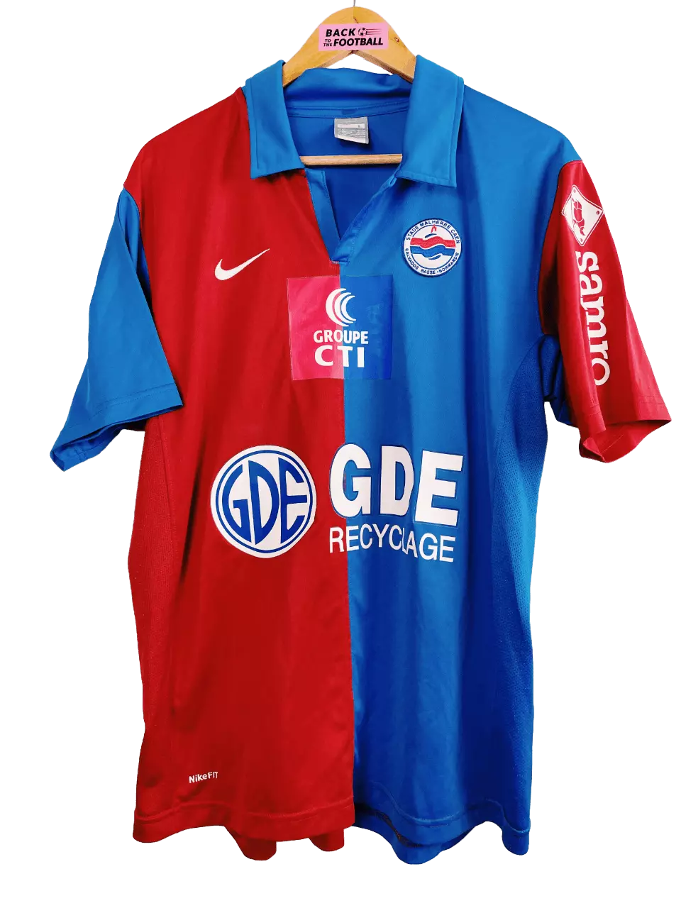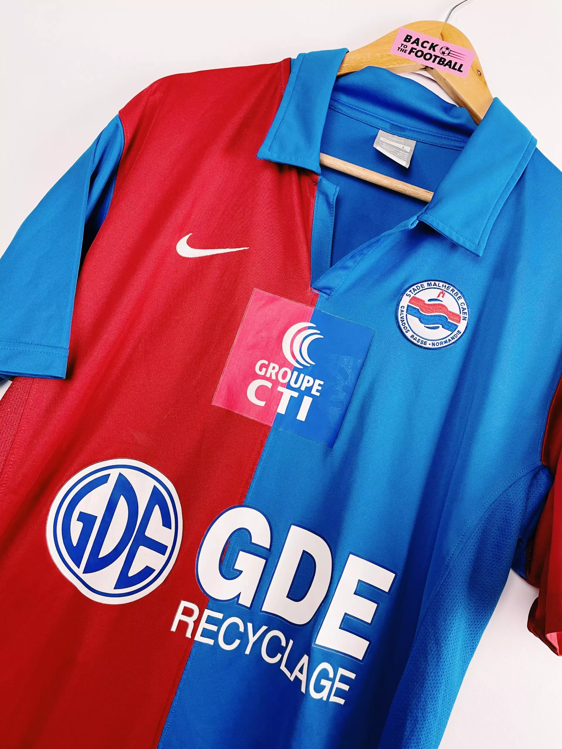 Taille : L Etat : 8/10, très bon état Le maillot : maillot vintage du SM Caen 2008/2009. L’écusson et le logo Nike sont brodés. Les sponsors sont floqués. Le design change des rayures habituelles rouges et bleues. Très beau maillot rétro de Caen ! Histoire : saison noire pour le Stade Malherbe de Caen. Malgré de beaux renforts lors du mercato avec Steve Savidan, Ben Khalfallah notamment, les Caennais coachés par Franck Dumas terminent à la 18ème place et descendent en Ligue 2. Ils seront éliminés en 16èmes des différentes coupes. Steve Savidan marquera 14 buts pour sa dernière…