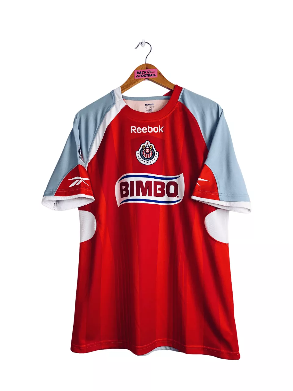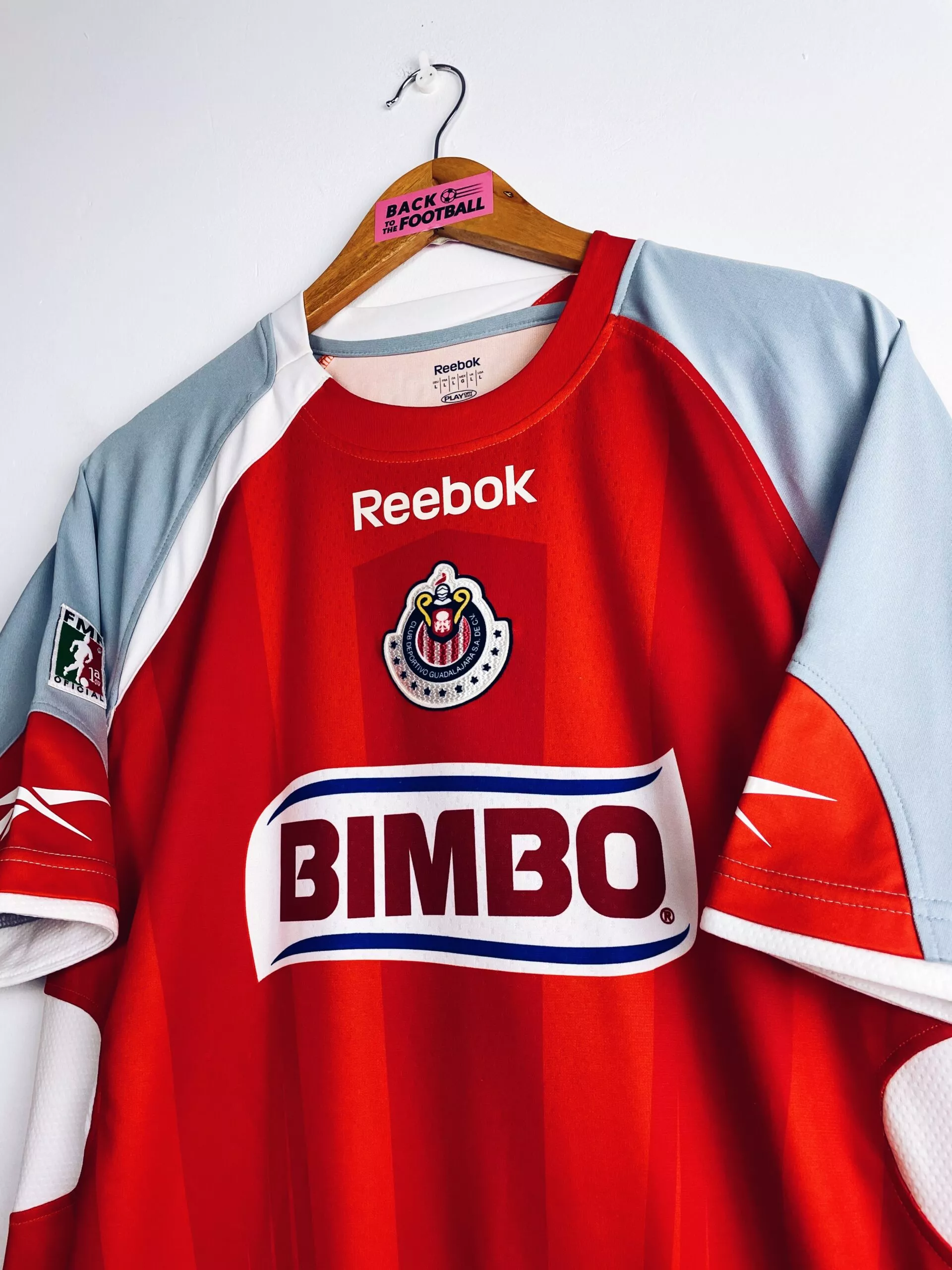 Taille : L Etat : 8/10, très bon état Le maillot : maillot vintage extérieur des Chivas de Guadalajara 2009/2010. L’écusson est en feutrine, le logo Reebok est floqué. Le sponsor Bimbo est incrusté au maillot. Le patch de la fédération mexicaine de football est brodé sur la manche. Joli maillot rétro des Chivas ! Histoire : pour le tournoi d’ouverture, les Chivas terminent à la 14ème place de Liga MX. Ils feront beaucoup mieux pour le tournoi de clôture avec une 2ème place, mais ils ne passeront pas les quarts des playoffs avec une défaire face à Monarcas Morelia.…