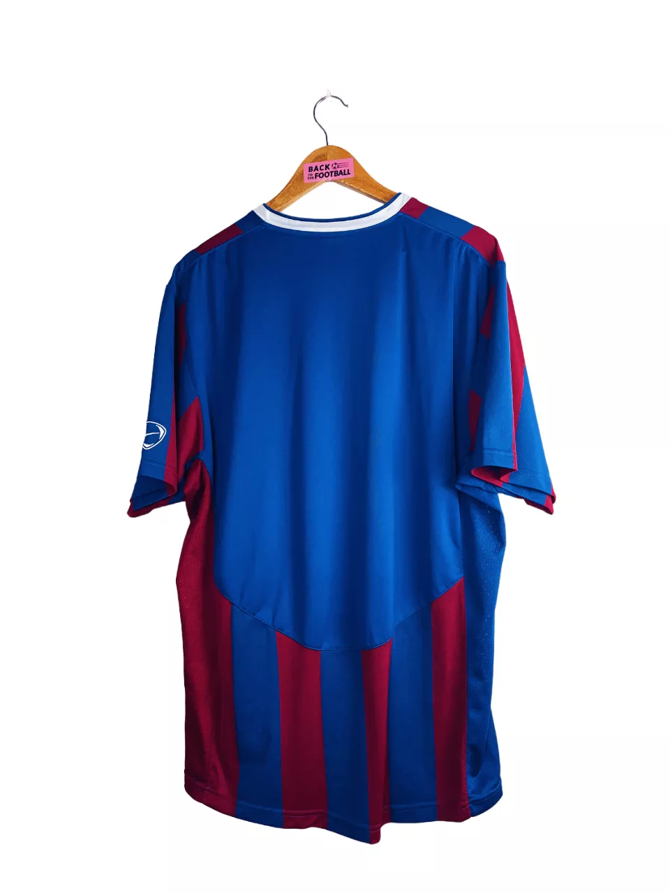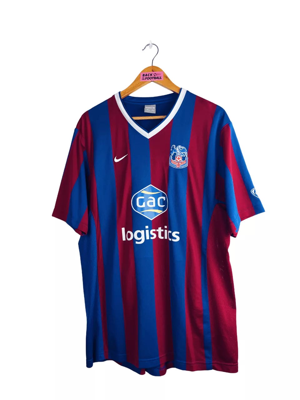 Taille : XL Si tu veux plus de détails, tu peux nous contacter par mail ou sur les réseaux 😉 Etat : 8.5/10, excellent état Le maillot : maillot vintage domicile de Crystal Palace 2009/2010. L’écusson et le logo Nike sont brodés. Le sponsor est en feutrine. Joli maillot rétro de Crystal Palace ! Histoire : saison compliquée pour le club de Londres en Championship. En janvier 2010, le club croule sous les dettes et est placé en adminstration, synonyme d’une perte de 10 points au classement. Les joueurs se sauveront à la dernière journée contre Sheffield Wednesday qui sera…