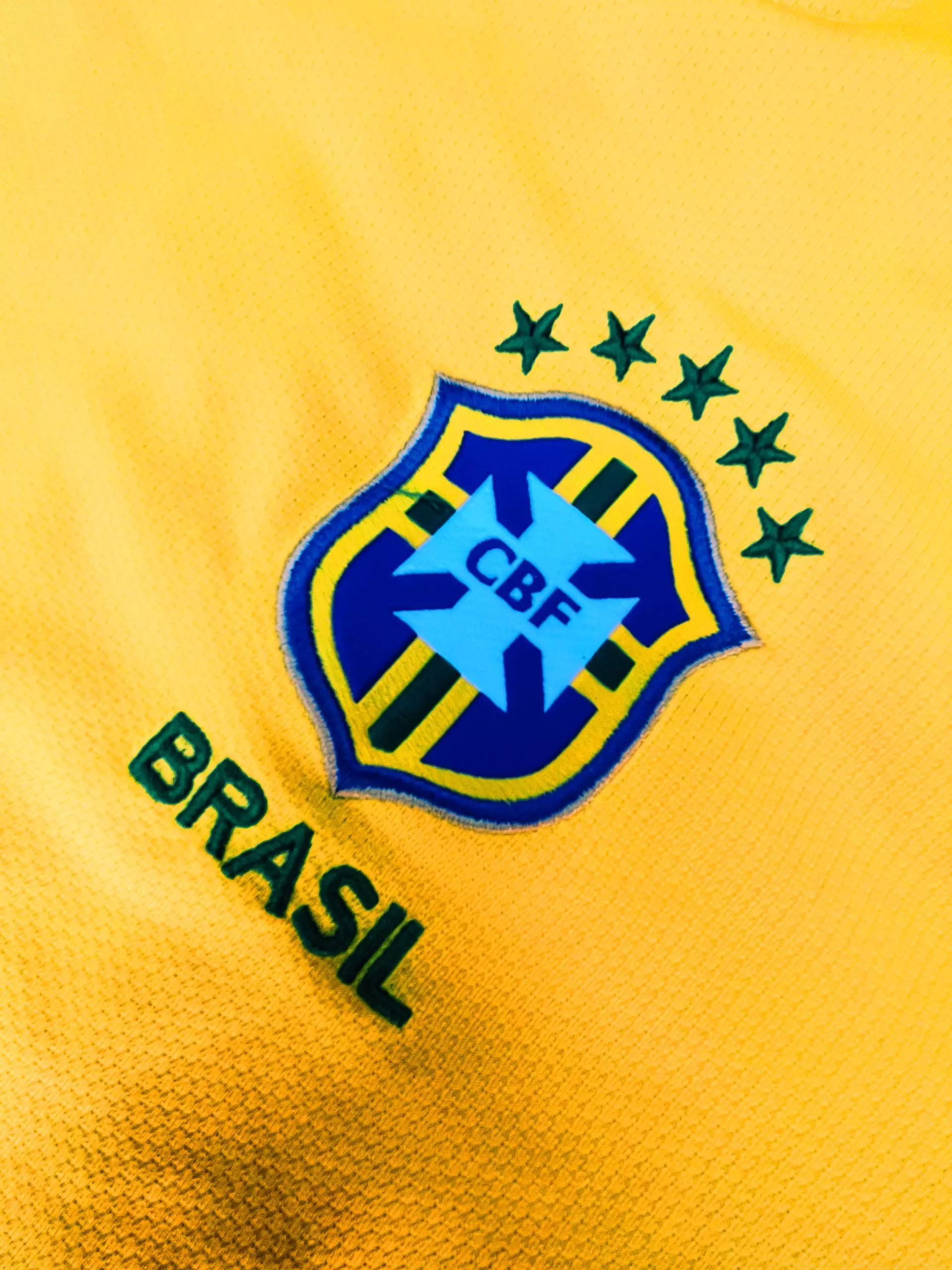 Taille : L Etat : très bon état général, hormis le flocage dans le dos qui est effacé Le maillot : maillot du Brésil Nike 2010/2011. L’écusson avec les 5 étoiles et le logo Nike sont brodés. Le maillot est totalement jaune avec des détails verts. Histoire : A la Coupe du Monde 2010, la Seleção terminera à la 1ère place de son groupe devant notamment le Portugal. Après avoir éliminé le Chili 3-0 en huitièmes, le Brésil s’inclinera 2-1 en quarts contre les Pays-Bas, sur un doublé de Sneijder. En Copa America, le Brésil n’ira pas plus loin que…