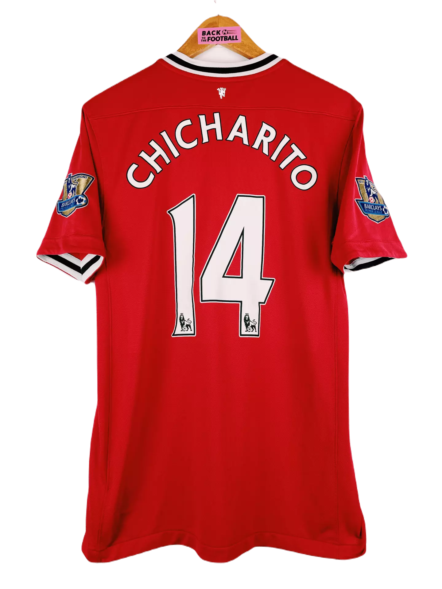 Taille : M Etat : très bon état. Léger accro sur le « H » du flocage (voir photo) Le maillot : très beau maillot domicile Nike de Manchester United, floqué Chicharito #14, saison 2010/2011. L’écusson du club et le logo Nike sont brodés, le sponsor est floqué, les patchs de champions de Premier League sont en feutrine. Histoire : très belle saison des Red Devils coachés par Ferguson, avec un titre de champions de Premier League à la clé ! Ils gagneront également la Community Shield. Malheureusement ils perdront en finale de Ligue des Champions contre Barcelone. Chicharito marquera 20 buts…