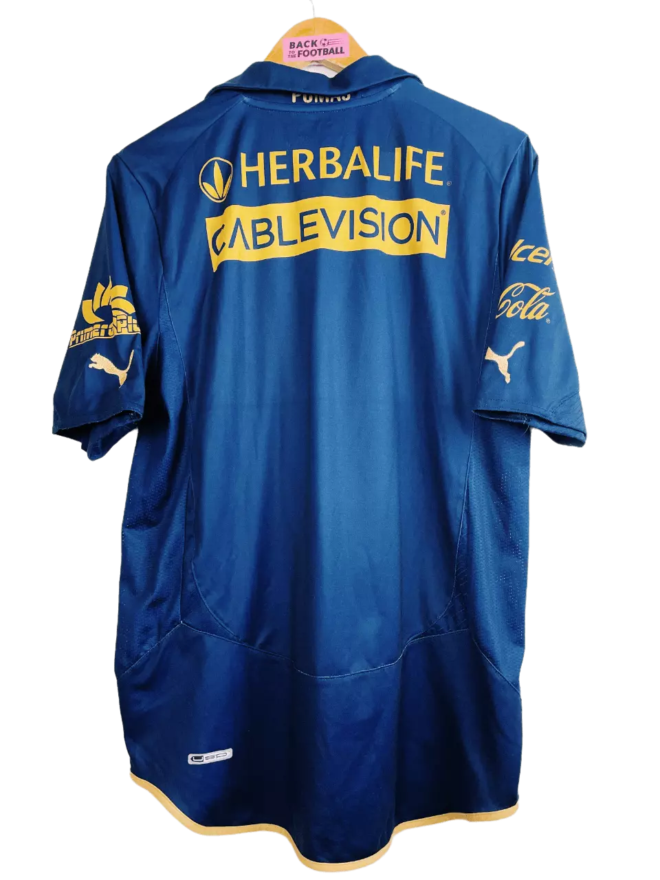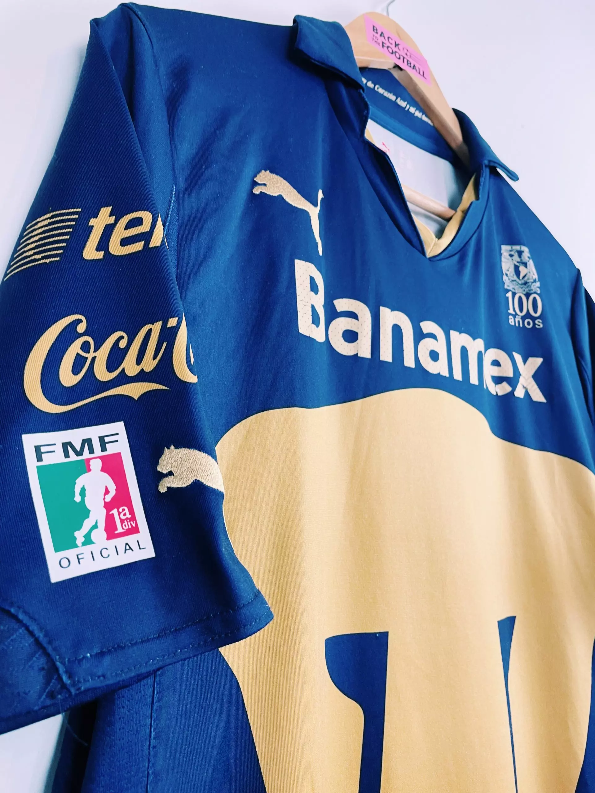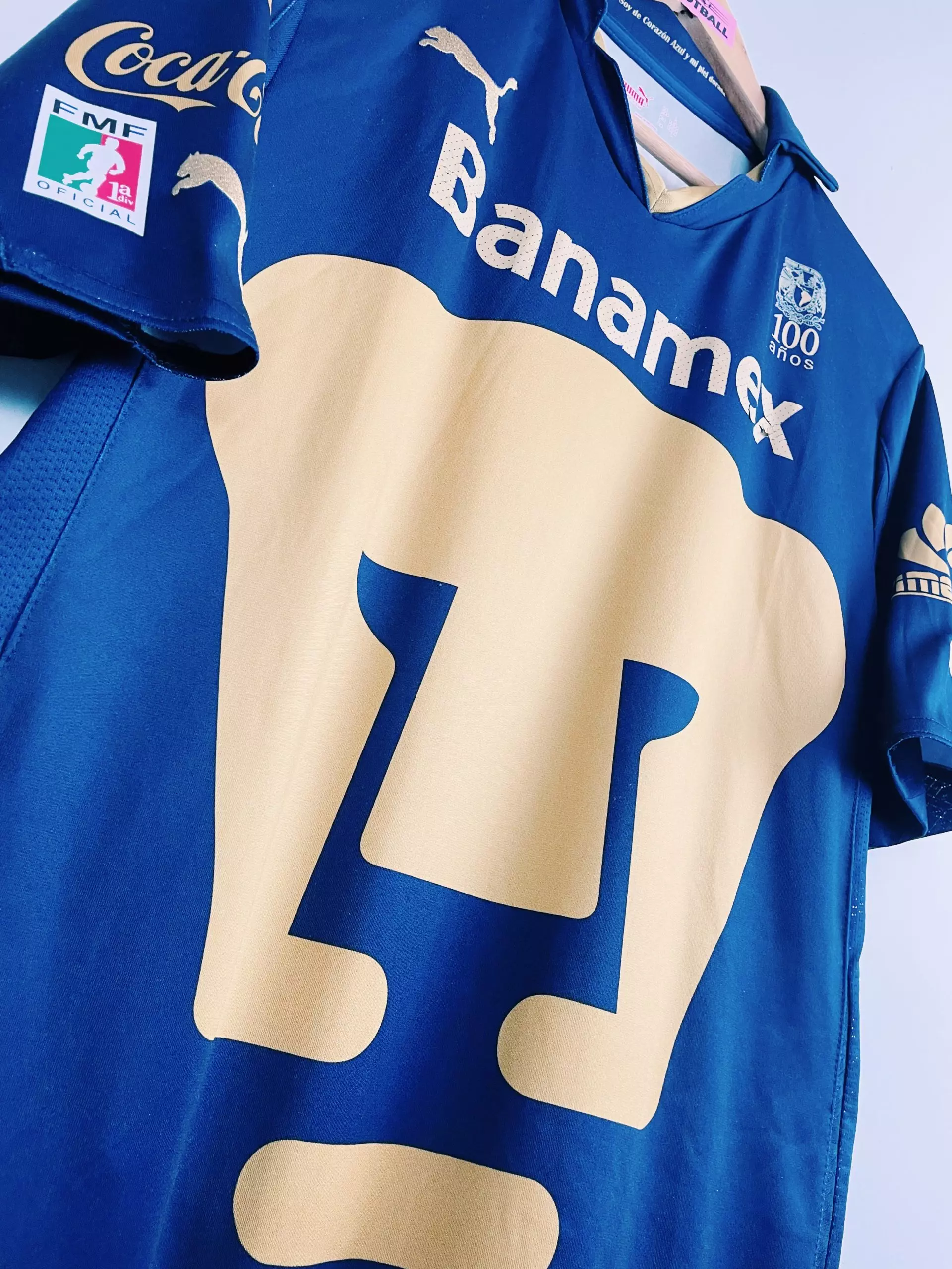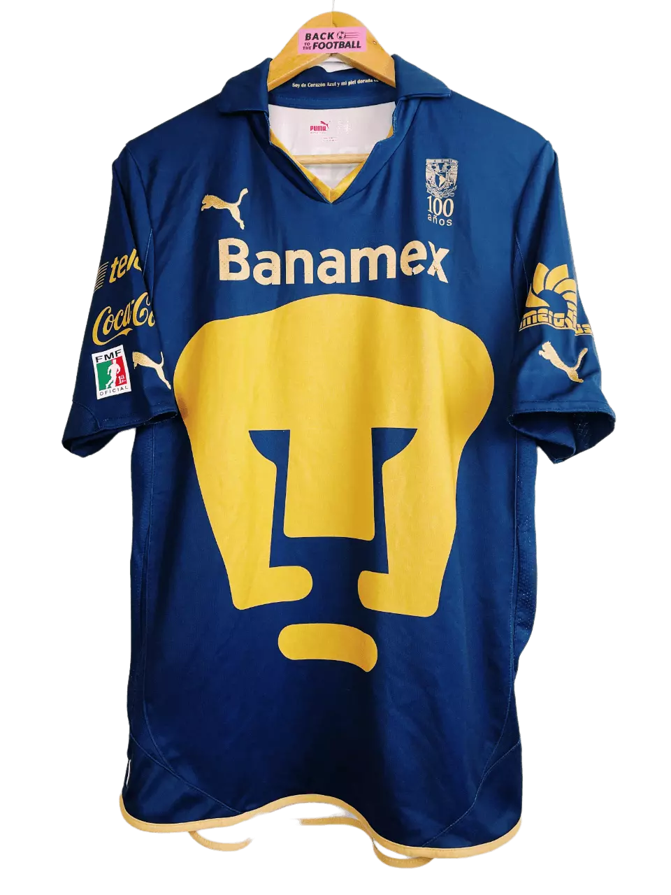 Taille : L Etat : 7/10, très bon état hormis le sponsor Banamex qui est abimé (voir photo) Le maillot : maillot vintage domicile des Pumas UNAM 2010/2011. L’écusson énorme est incrusté au maillot, le logo Puma est brodé. Le sponsor Banamex est floqué, les autres sponsors sont incrustés au maillot. Un très beau maillot rétro des Pumas ! Histoire : lors du tournoi d’ouverture, les Pumas terminent à la 8ème place de Liga MX. Ils seront éliminés en demi-finale contre Monterrey, le futur vainqueur des playoffs. Grosse performance lors du tournoi de fermeture avec une 2ème place qualificative pour…