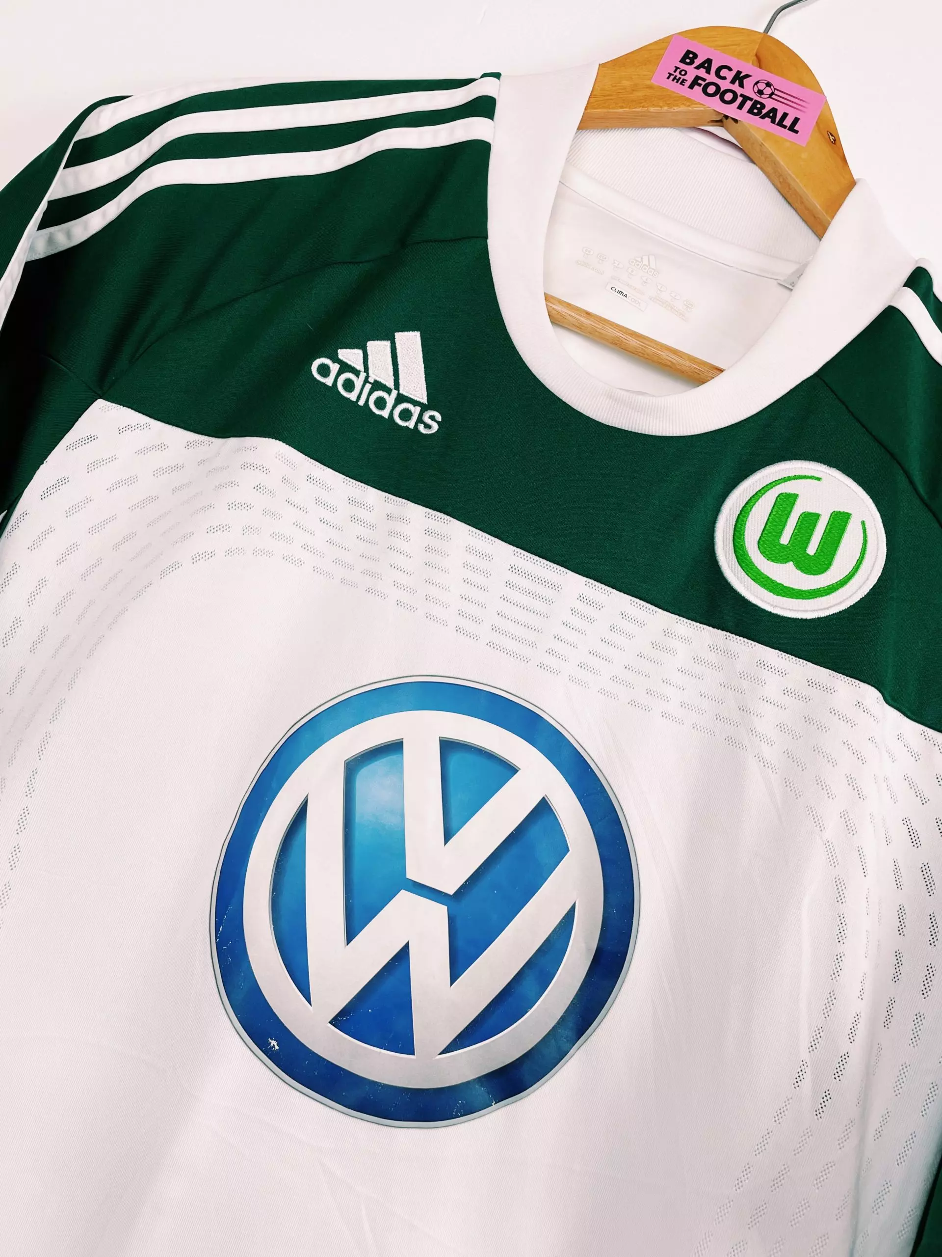 Taille : M Etat : 7/10, très bon état mais le flocage Volkswagen est un peu abimé, et le flocage de Diego aussi. Le maillot : maillot vintage domicile de Wolfsburg 2010/2011 floqué Diego #28. L’écusson et le logo Adidas sont brodés, le mythique sponsor Volkswagen est floqué. Histoire : saison très compliquée pour Wolfsburg qui se maintient de justesse en Bundesliga grâce à 2 petits points, malgré un bon effectif : Dzeko, Mandzukic,Grafite, Barzagli… Diego, en provenance de la Juventus, marquera 6 buts cette saison.