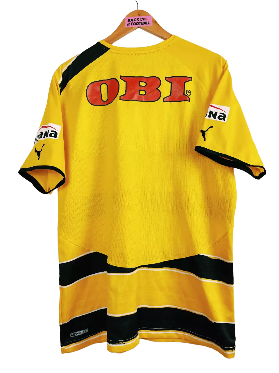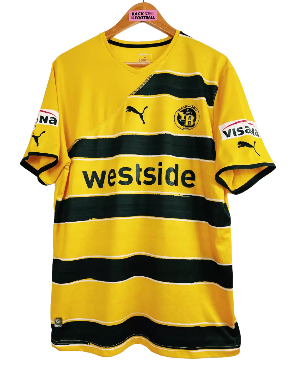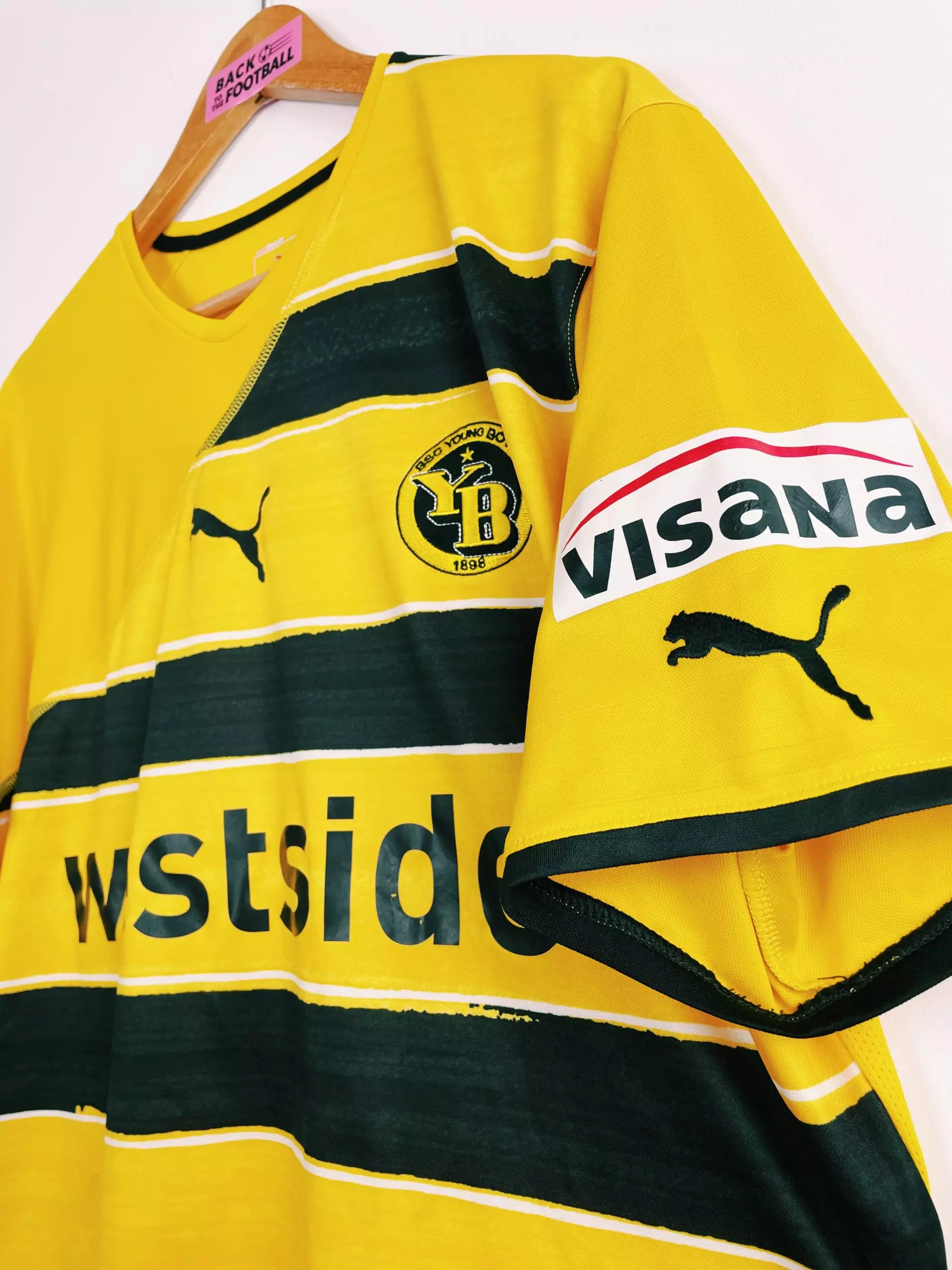 Taille : XL Etat : 8/10, très bon état général, le flocage du sponsor est très légèrement abimé (voir photo) Le maillot : maillot vintage des Young Boys Berne 2010/2011. L’écusson et le logo Puma sont brodés. Les sponsors sont floqués. Histoire : Les Young Boys terminent à la 3ème place du championnat suisse. Ils seront éliminés en quart de finale de Coupe de Suisse et en seizième de finale de Ligue Europa contre le Zenith.