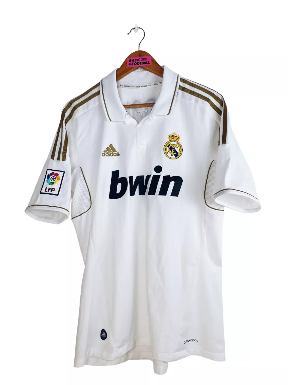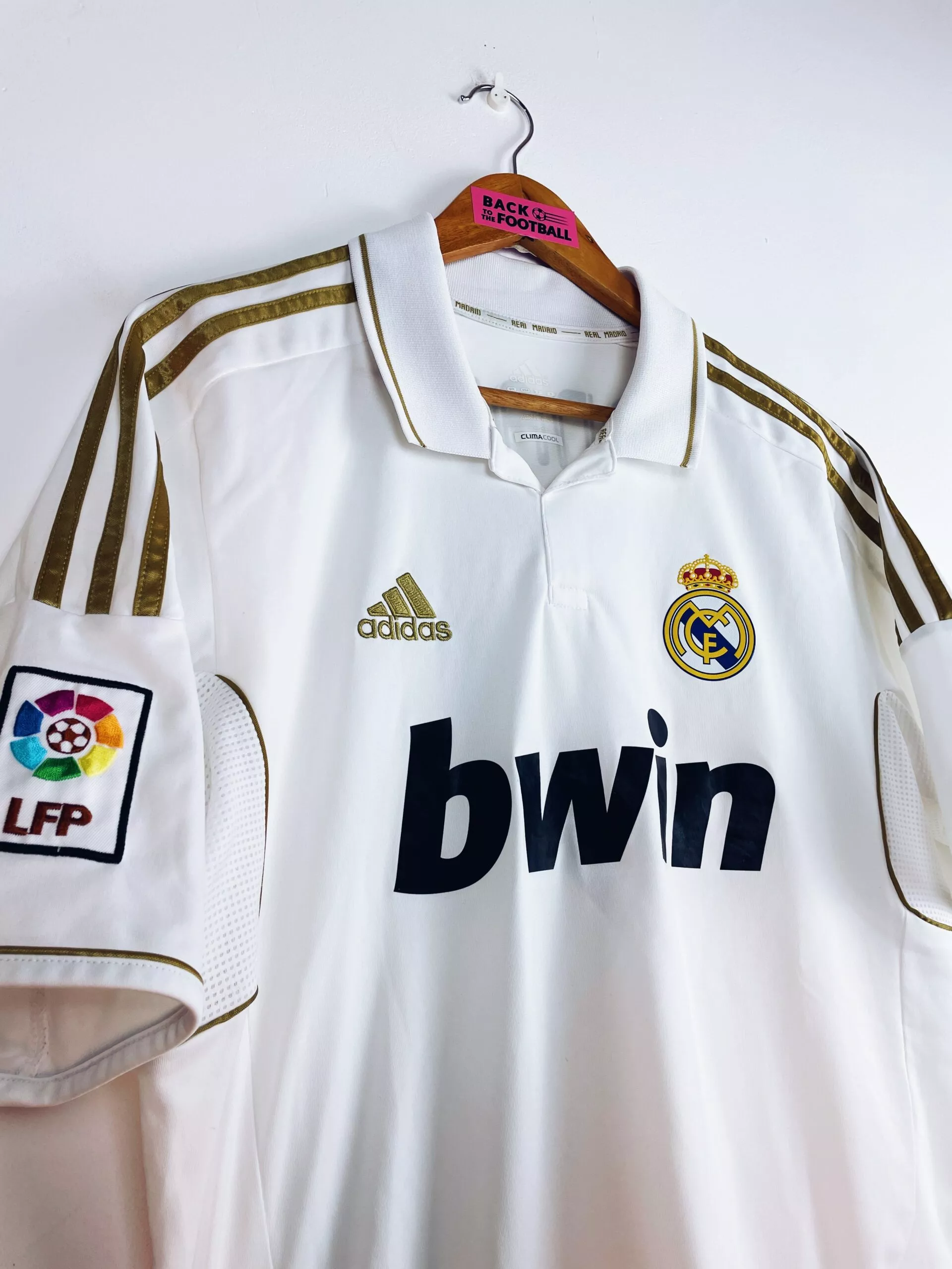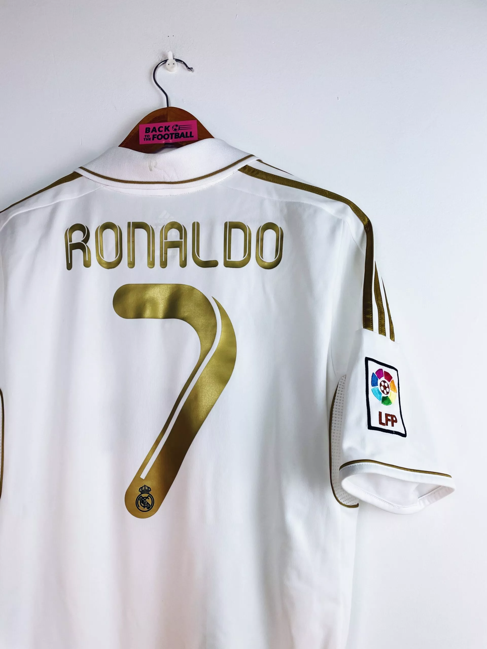 Taille : M Si tu veux plus de détails, tu peux nous contacter par mail ou sur les réseaux 😉 Etat : 7.5/10, très bon état mais l’arrière du col est légèrement jauni, le patch LFP est décoloré et une micro trace dans le dos (voir photos) Le maillot : maillot vintage du Real Madrid 2011/2012 domicile floqué Ronaldo #9. L’écusson est thermocollé, le logo Adidas est brodé, le sponsor Bwin est floqué. CR7 au dos est floqué aussi. Le patch Liga sur la manche est brodé. Très beau maillot rétro du Real Madrid ! Histoire : les Merengues de…