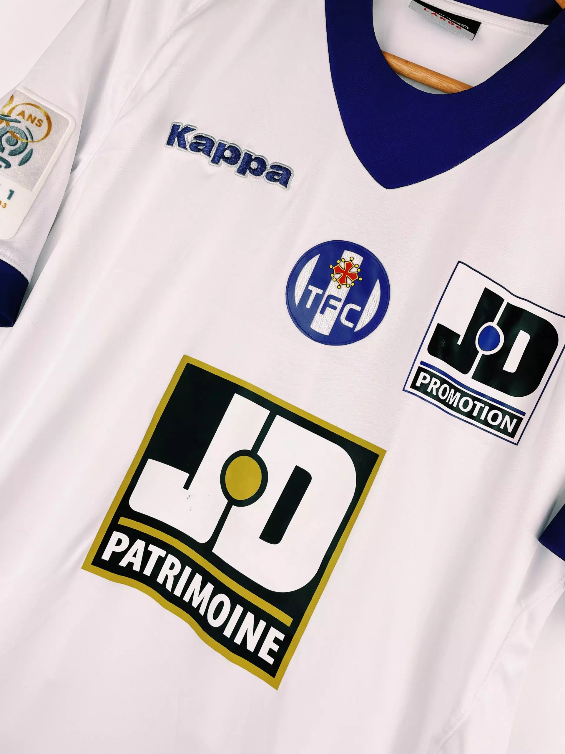 Taille : L Etat : très bon état hormis le flocage joueur craquelé comme souvent, et un petit accro sur le flocage sponsor. Le maillot : maillot extérieur Kappa de Toulouse floqué Sissoko #22, saison 2012/2013. L’écusson du TFC est en feutrine, le logo Kappa est brodé et les sponsors sont floqués. Le patch Ligue 1 80 ans est en feutrine. Histoire : saison moyenne pour le Tef, qui terminera à la 10ème place de Ligue 1. Ils ne feront pas mieux qu’un huitième de finale en Coupe de la Ligue, éliminés par Lille. Moussa Sissoko partira au mercato d’hiver…