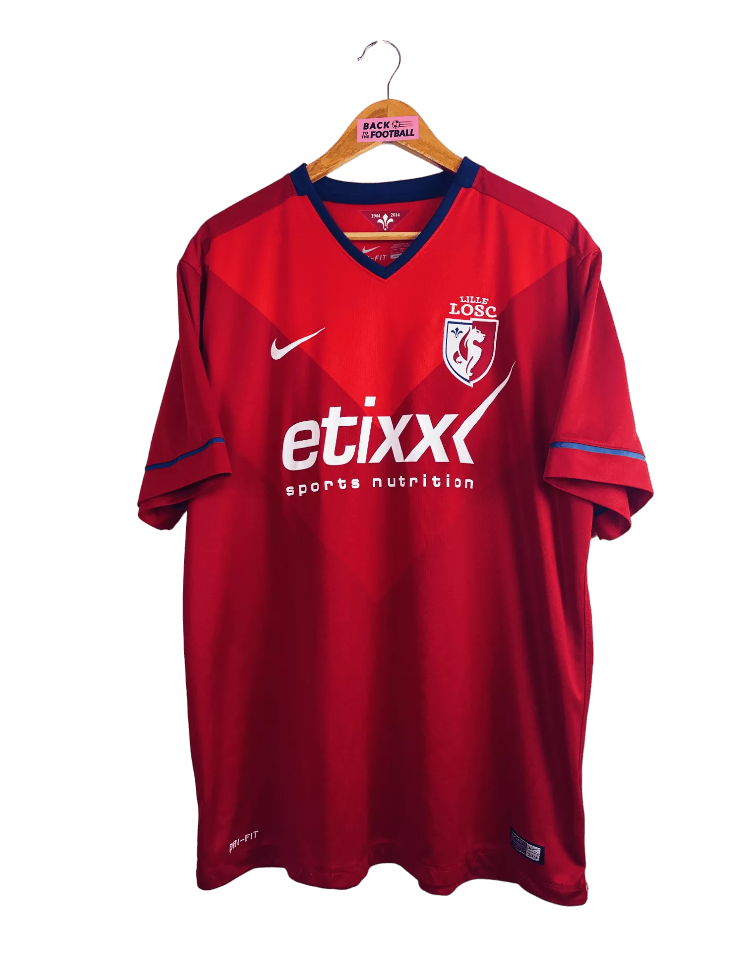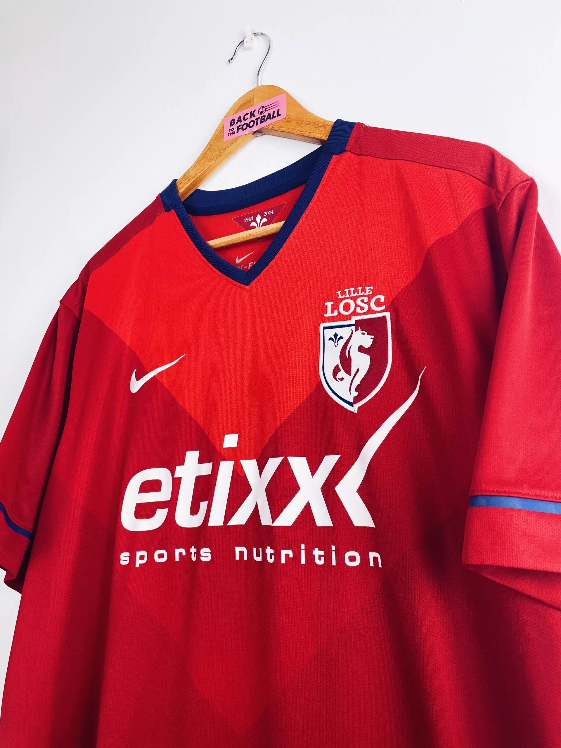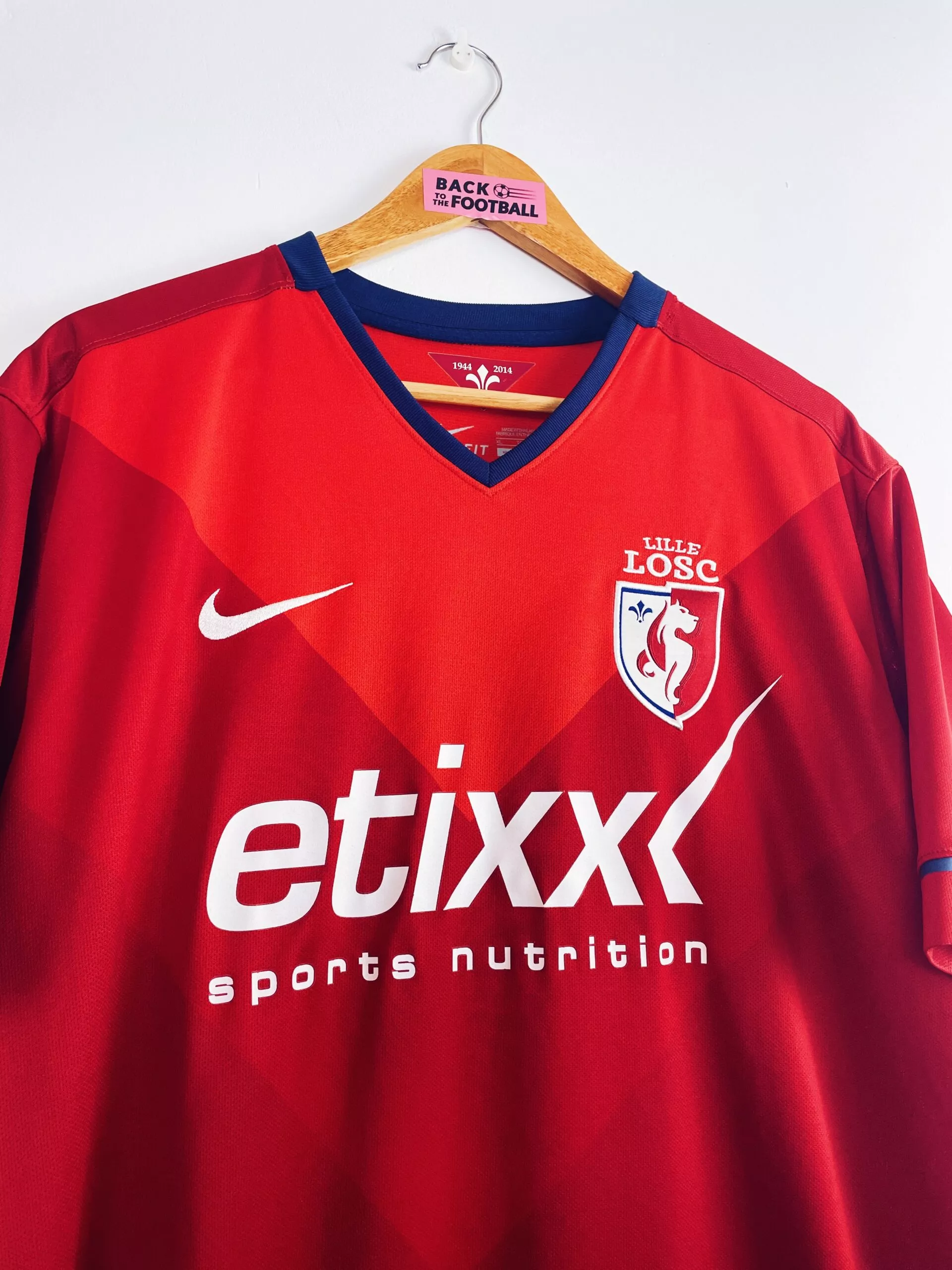 Taille : XL Etat : 8/10, très bon état Le maillot : maillot vintage domicile du LOSC 2014/2015. L’écusson et le logo Nike sont brodés, le sponsor est floqué. Très beau maillot rétro de Lille ! Histoire : les Lillois de René Girard termineront à la 8ème place de Ligue 1. Beau parcours en Coupe de la Ligue mais ils seront éliminés par le PSG. Désilusion en Ligue Europa avec une dernière place en phase de groupes, derrière Everton, Wolfsbourg et Krasnodar. Nolan Roux sera le meilleur buteur avec 10 buts. Quelques joueurs : Origi, Rodelin, Mavuba, Martin, Gueye, Balmont,…