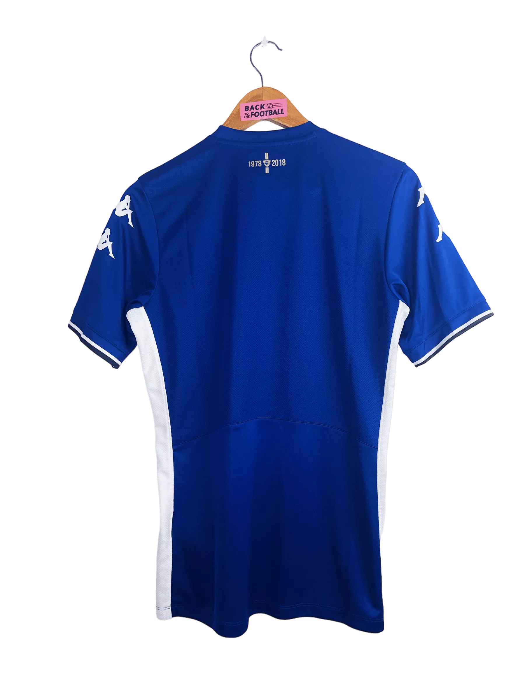 Taille : S Etat : neuf avec étiquettes (BNWT) Le maillot : maillot vintage domicile du SC Bastia 2014/2015. L’écusson est thermocollé en relief, le logo Kappa et le sponsor sont floqués. Très beau maillot rétro du SC Bastia ! Histoire : les Bastiais terminent à la 12ème place de Ligue 1. Claude Makélélé sera limogé en novembre et remplacé par Printant. Très beau parcours des Corses en Coupe de la ligue qui éliminent Auxerre, Caen, Rennes, Monaco, avant de s’écrouler en finale contre le PSG 4 buts à 0. Quelques joueurs : Brandao, Kamano, Cissé, Cahuzac, Boudebouz, Squillaci, Peybernes,…