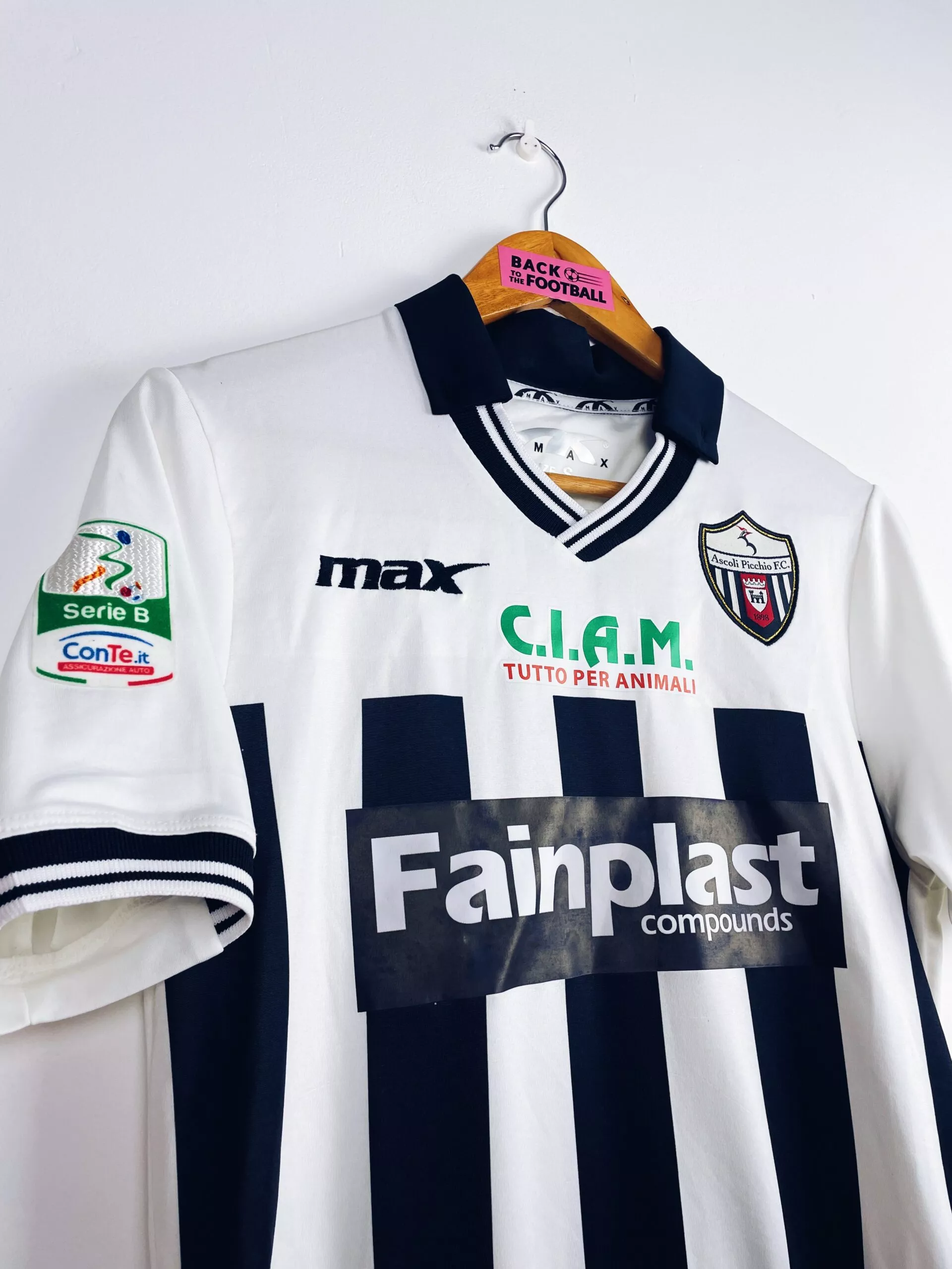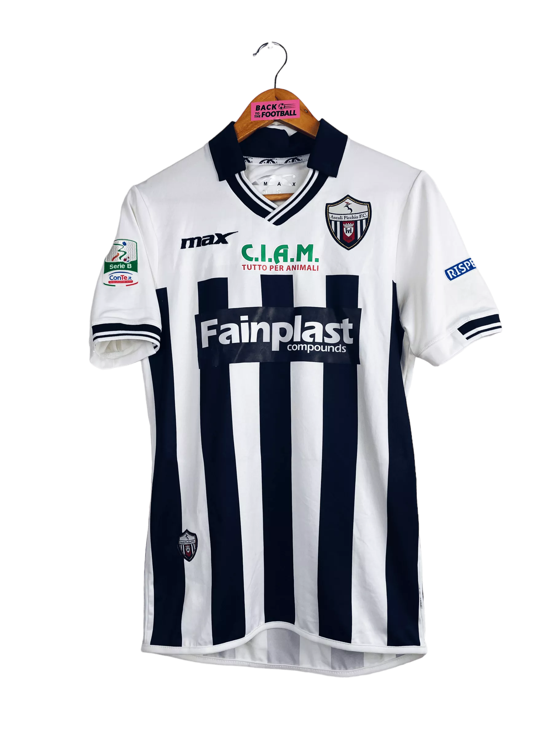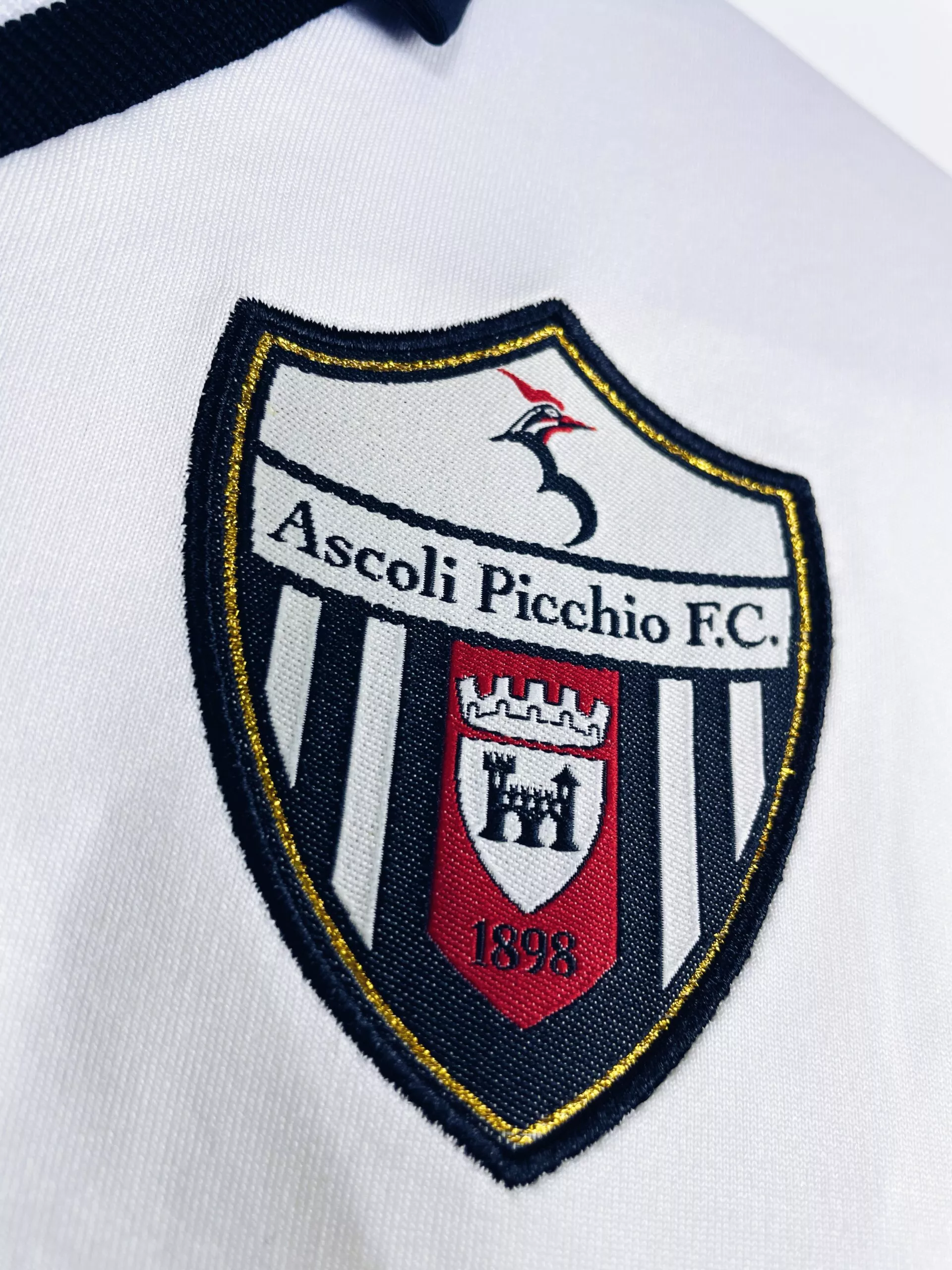 Taille : S Etat : 8/10, très bon état général, très légère trace dans le dos (voir photo) Le maillot : maillot vintage domicile d’Ascoli Picchio 2015/2016. L’écusson et le logo Max sont brodés, les sponsors sont floqués, les patchs sur les manches en feutrine. Très beau maillot rétro d’Ascoli Picchio ! Histoire : les italiens termineront à la 15ème place de Serie B, 3 points devant le premier relégable. Ils seront rapidement éliminés en coupes. Cacia sera le meilleur buteur avec 17 réalisations.