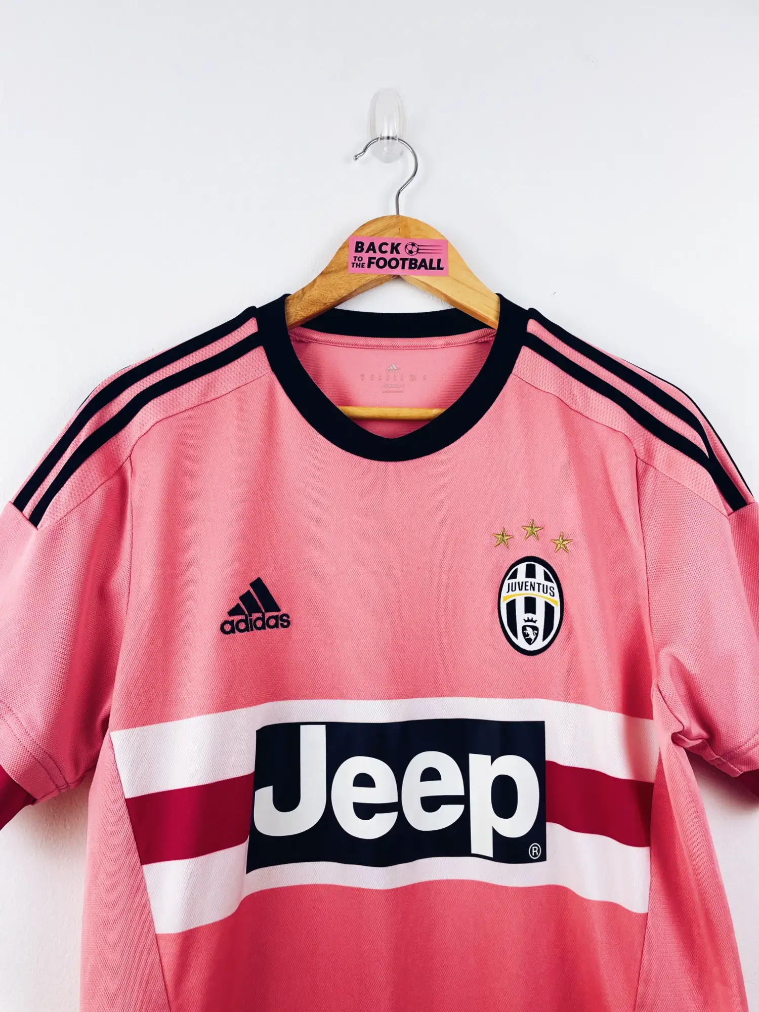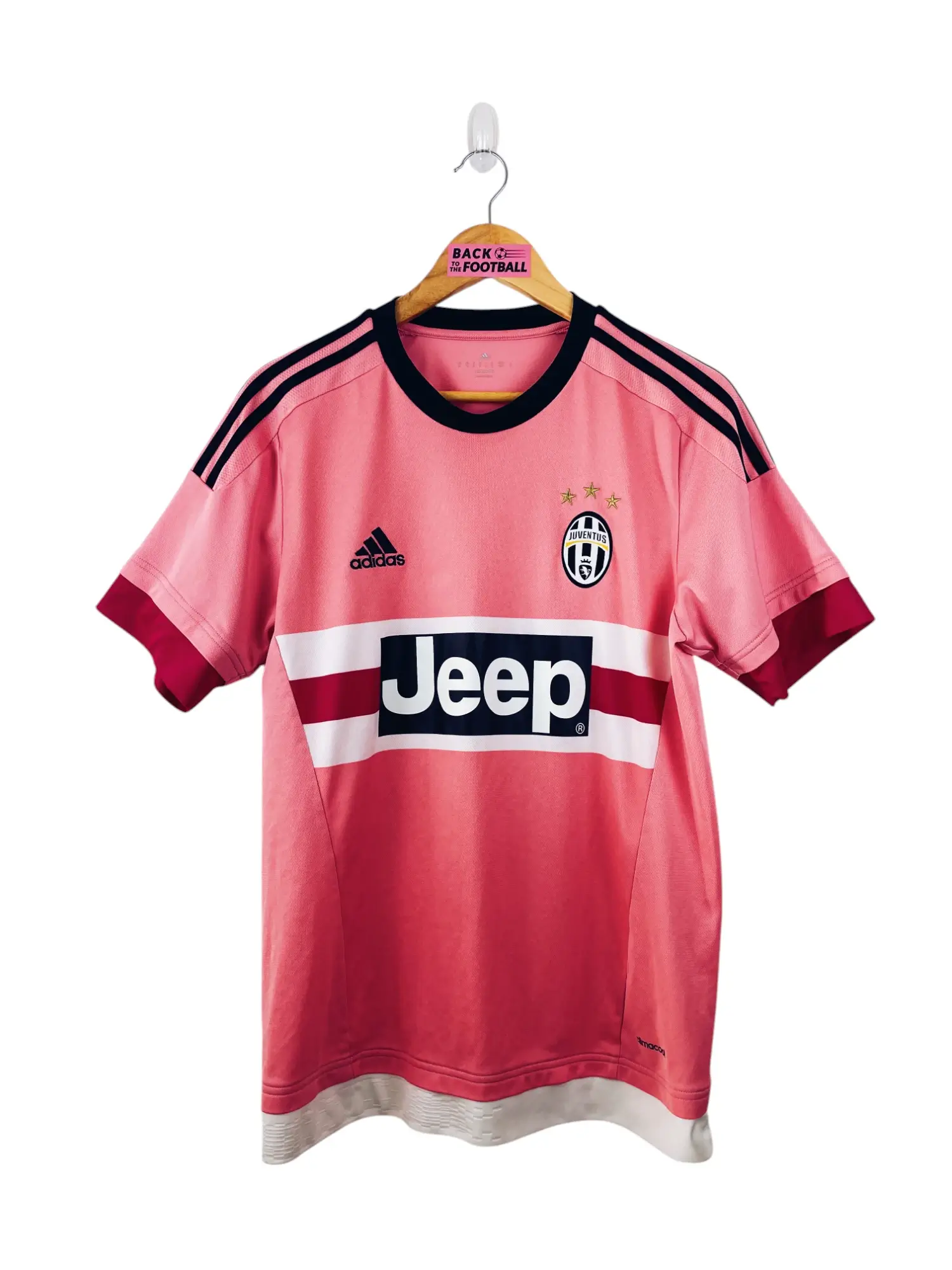 Taille : M Largeur : 49cm (aisselle à aisselle) Longueur : 71cm (base du col au bas) Si tu veux plus de détails, tu peux nous contacter par mail ou sur les réseaux 😉 Etat : 9/10, excellent état Le maillot : maillot vintage extérieur de la Juventus 2015/2016. L’écusson et le logo Adidas sont brodés, le sponsor Jeep est floqué. Drake a popularisé ce maillot grâce à sa photo sur Instagram, avec ses verres fumés roses et son photomontage pour cacher le logo Adidas (il avait un partenariat avec Nike). Très beau maillot rétro de la Juventus ! Histoire…