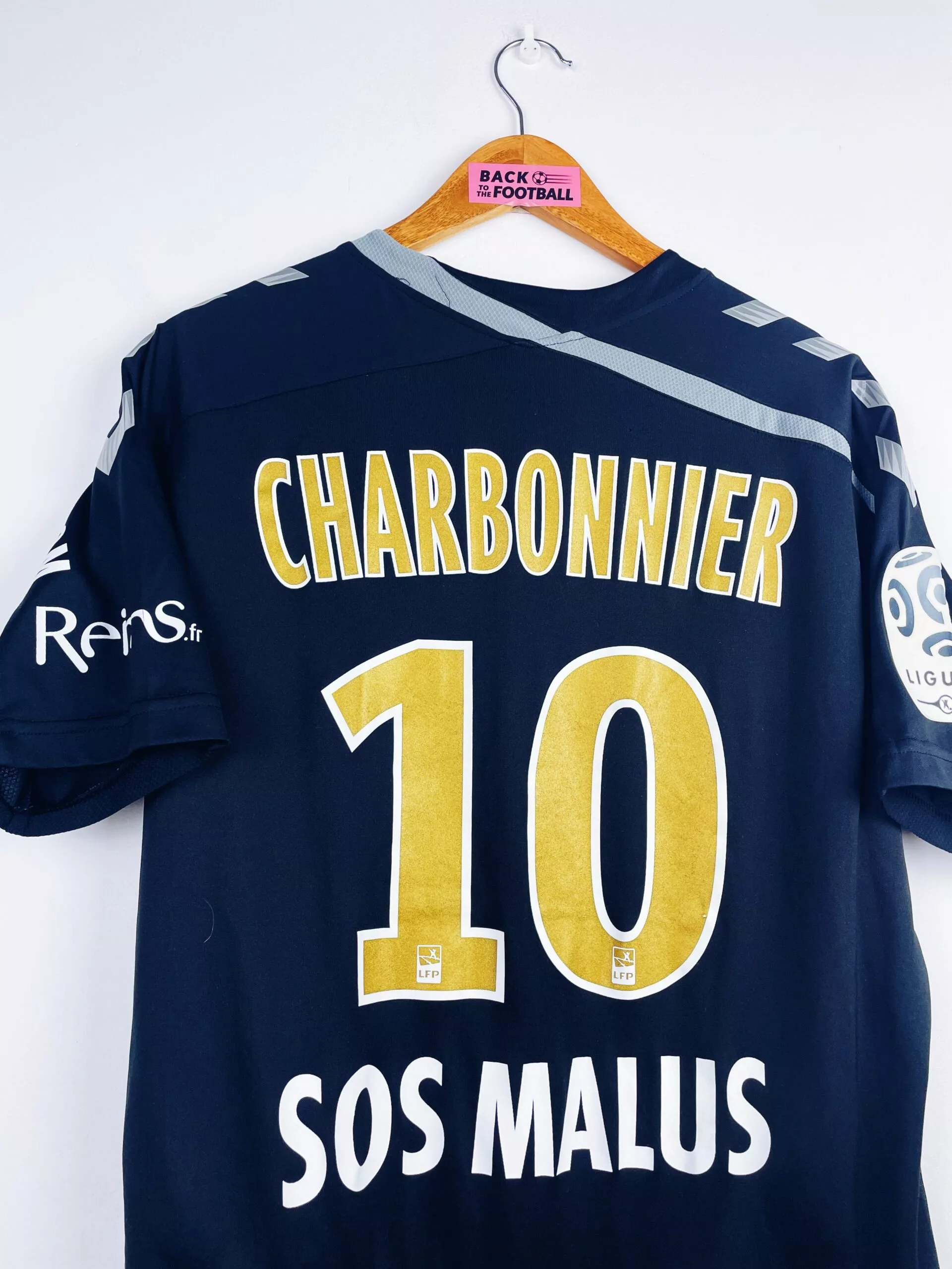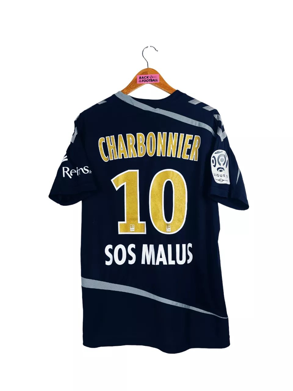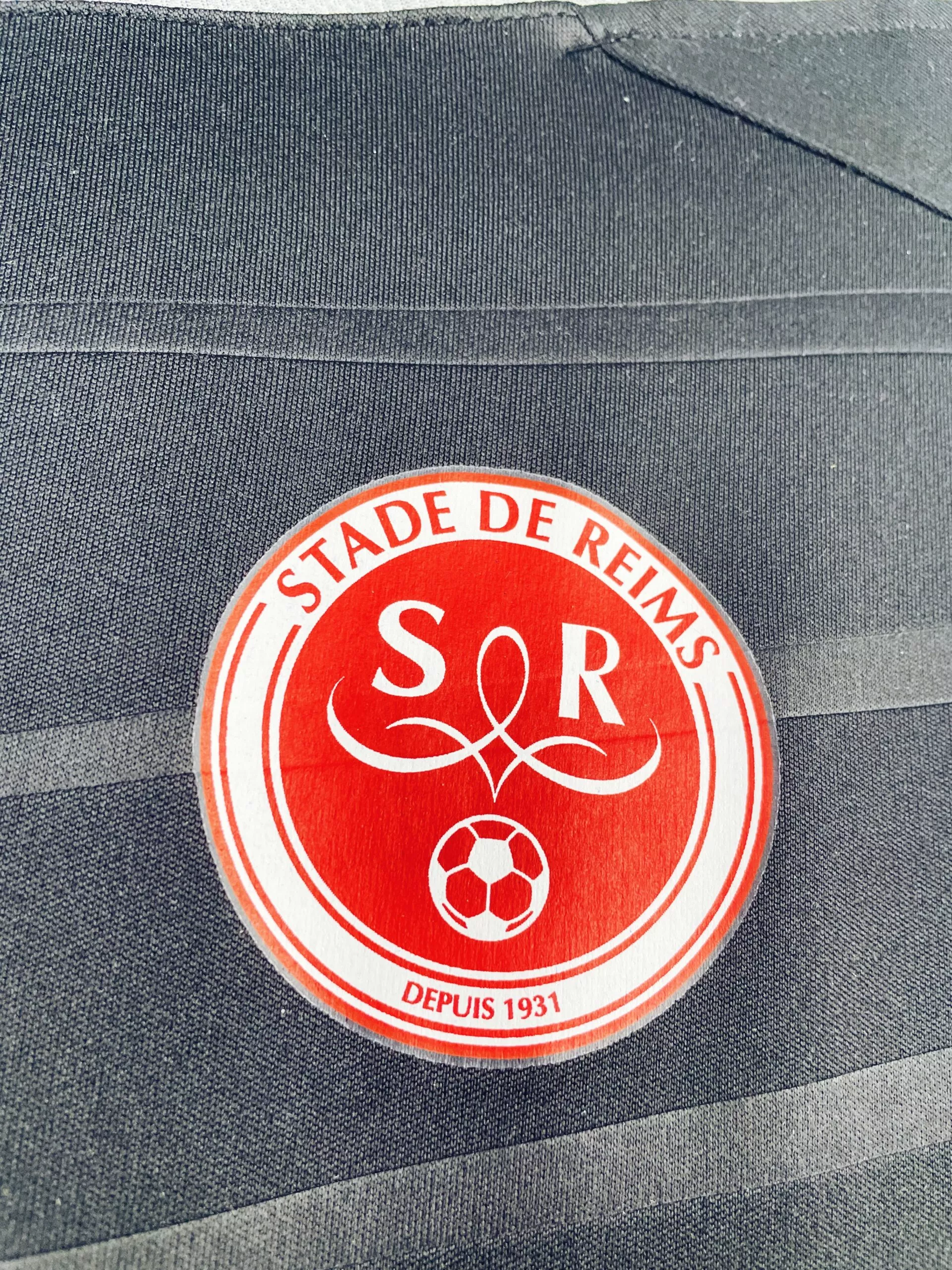 Taille : L Si tu veux plus de détails, tu peux nous contacter par mail ou sur les réseaux 😉 Etat : 8.5/10 excellent état Le maillot : maillot vintage extérieur du Stade de Reims 2015/2016 préparé (match issue) ou porté (match worn) par Charbonnier : full sponsors, patch Ligue 1… L’écusson, le logo Hummel et tous les sponsors sont floqués. Le patch Ligue 1 est en feutrine. Très beau maillot rétro de Reims ! Histoire : mauvaise saison pour les reimois qui terminent 18èmes de Ligue 1, un point derrière le TFC, et sont donc relegués en Ligue 2.…