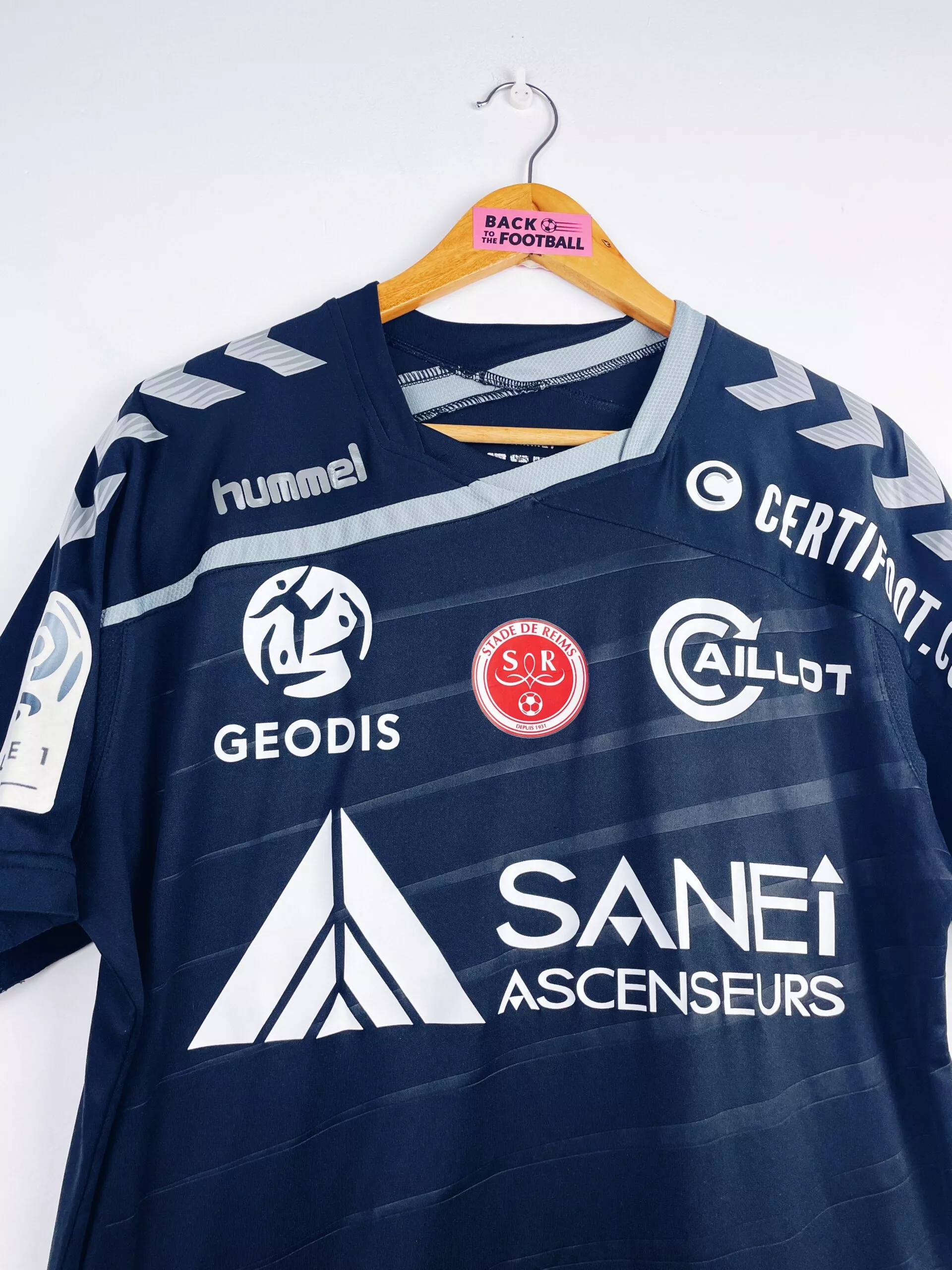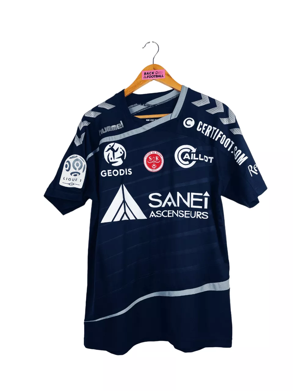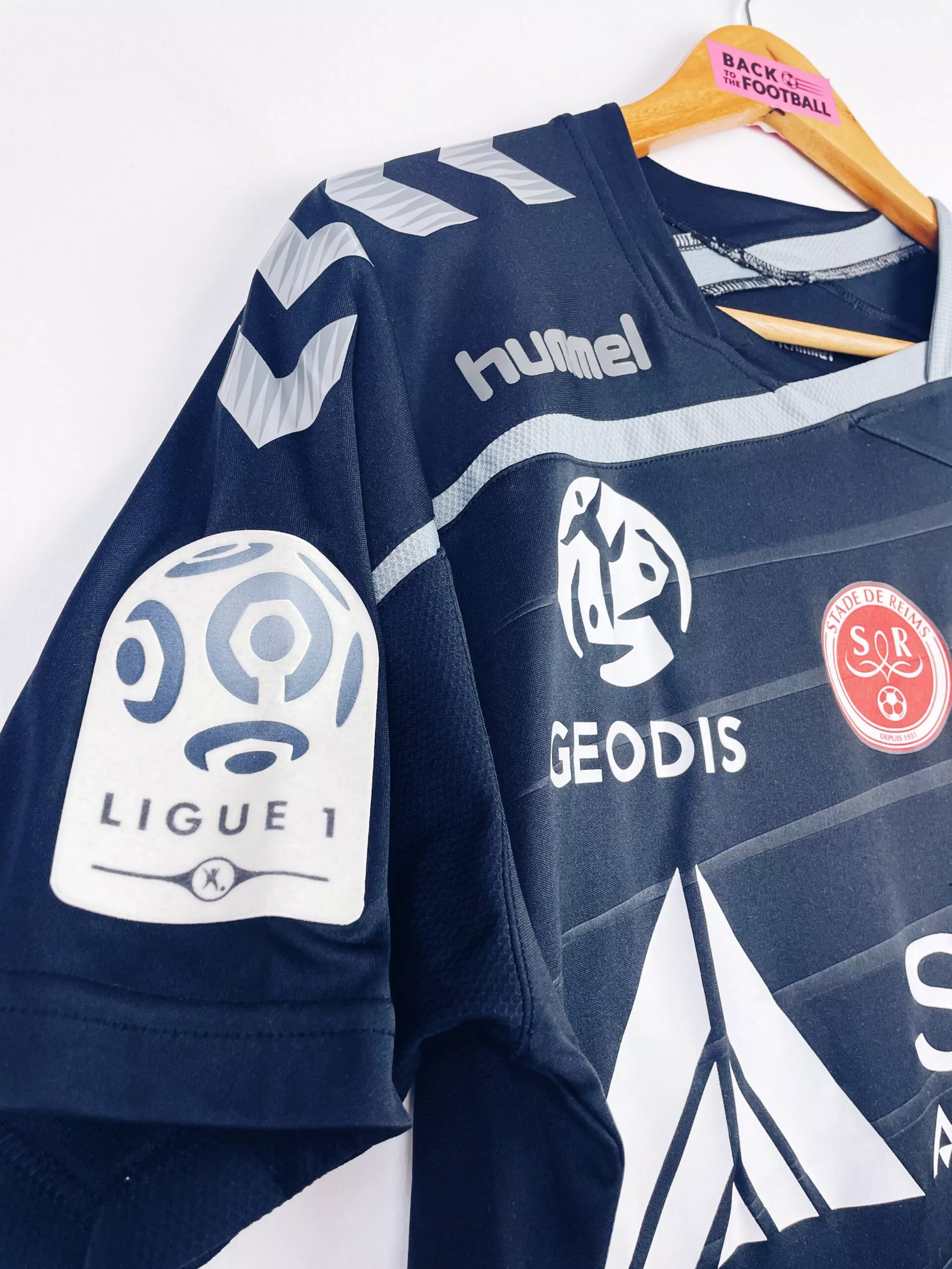 Taille : L Si tu veux plus de détails, tu peux nous contacter par mail ou sur les réseaux 😉 Etat : 8.5/10 excellent état Le maillot : maillot vintage extérieur du Stade de Reims 2015/2016 préparé (match issue) ou porté (match worn) par Charbonnier : full sponsors, patch Ligue 1… L’écusson, le logo Hummel et tous les sponsors sont floqués. Le patch Ligue 1 est en feutrine. Très beau maillot rétro de Reims ! Histoire : mauvaise saison pour les reimois qui terminent 18èmes de Ligue 1, un point derrière le TFC, et sont donc relegués en Ligue 2.…