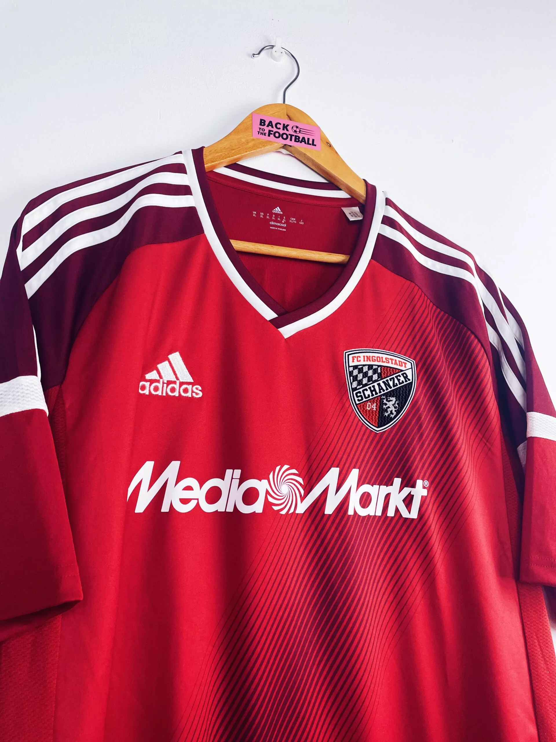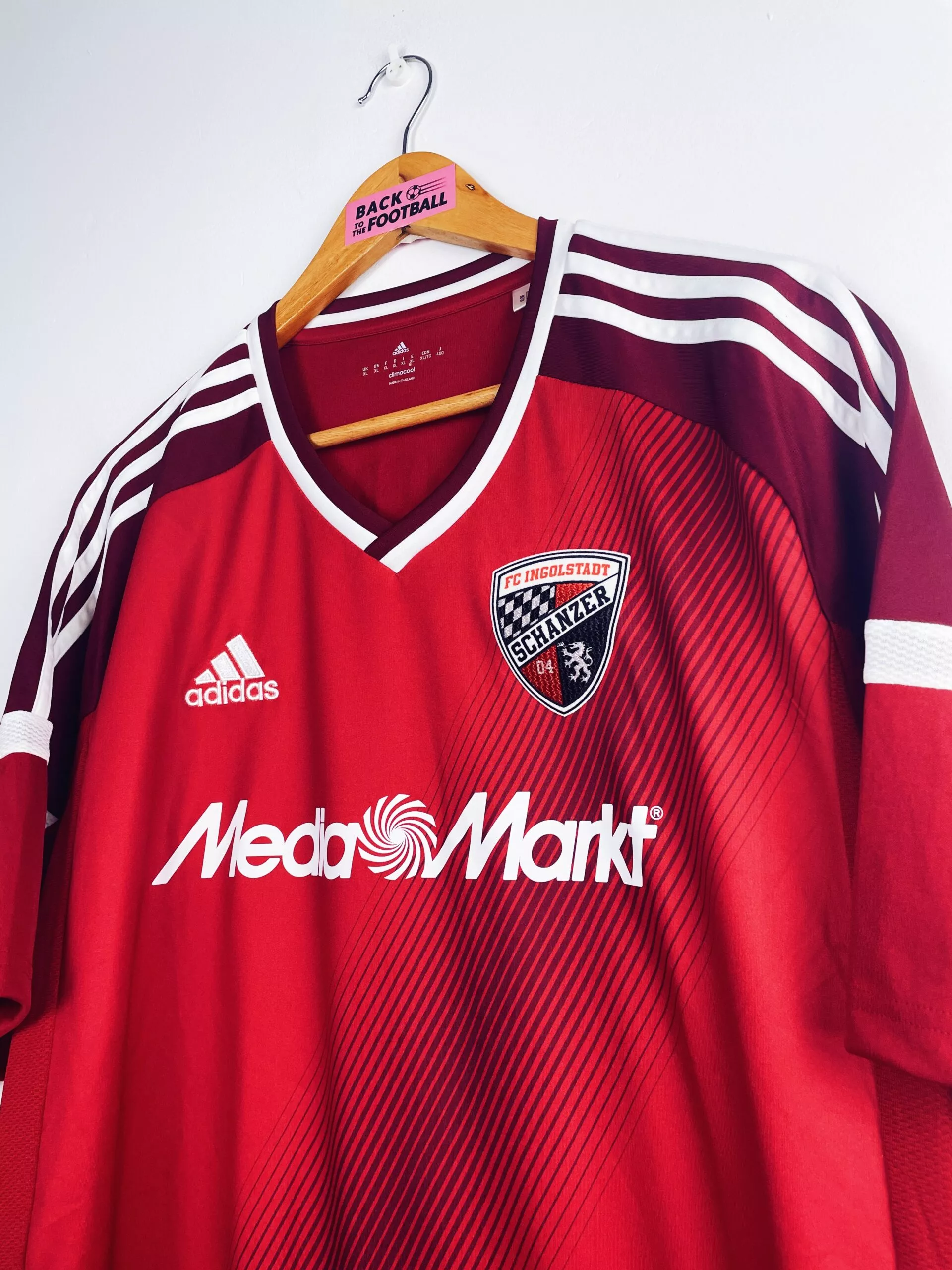 Taille : XL Etat : 8.5/10, excellent état Le maillot : maillot vintage domicile du FC Ingolstadt 04 2016/2017. L’écusson est en feutrine, le logo Adidas brodé et le sponsor floqué. Joli maillot rétro d’Ingolstadt. Histoire : saison compliquée pour Ingolstadt qui changera 3 fois de coach, pour au final finir à la 17ème place de Bundesliga, synonyme de relégation. Almog Cohen sera le meilleur buteurs avec 7 réalisations.