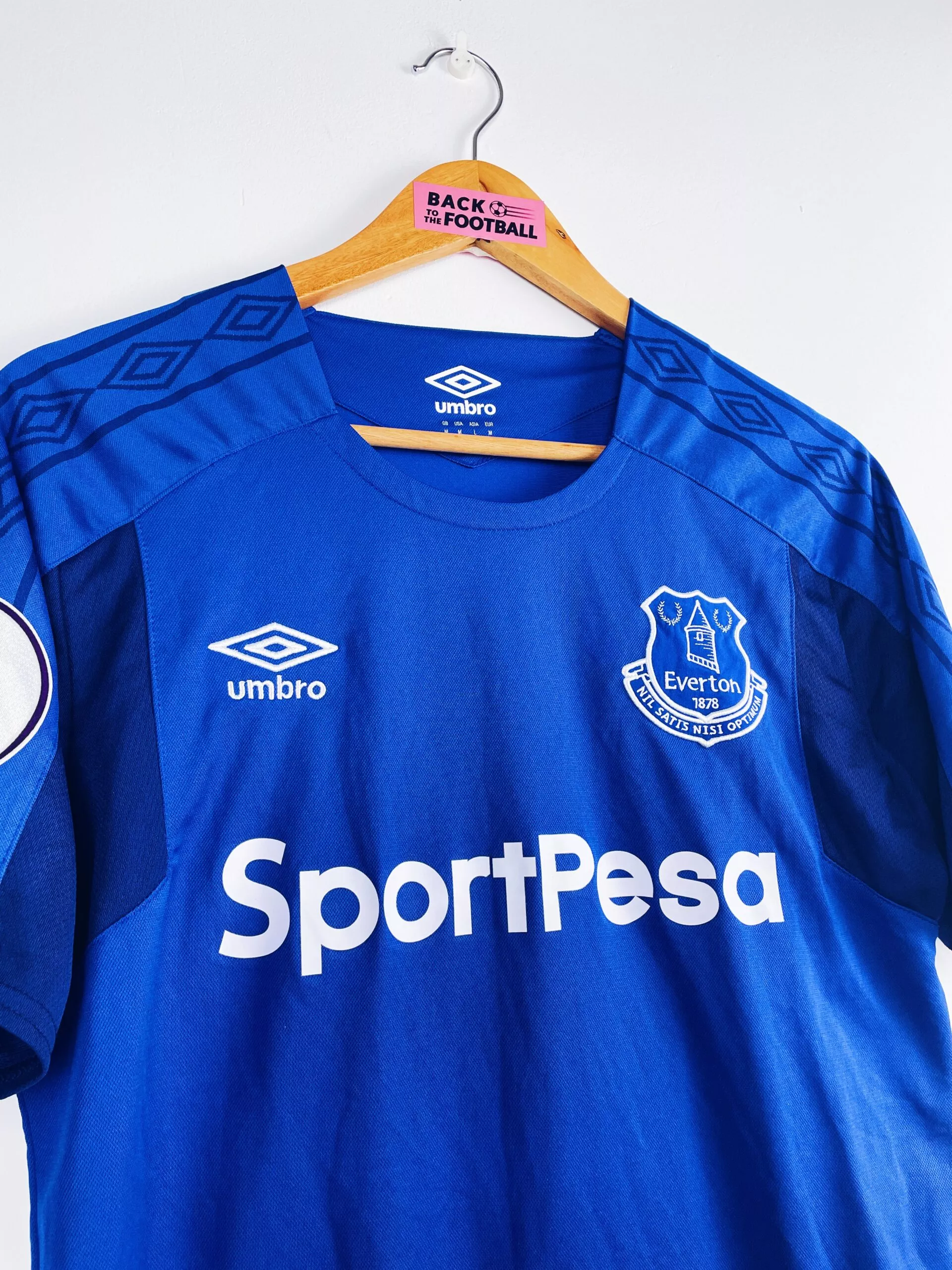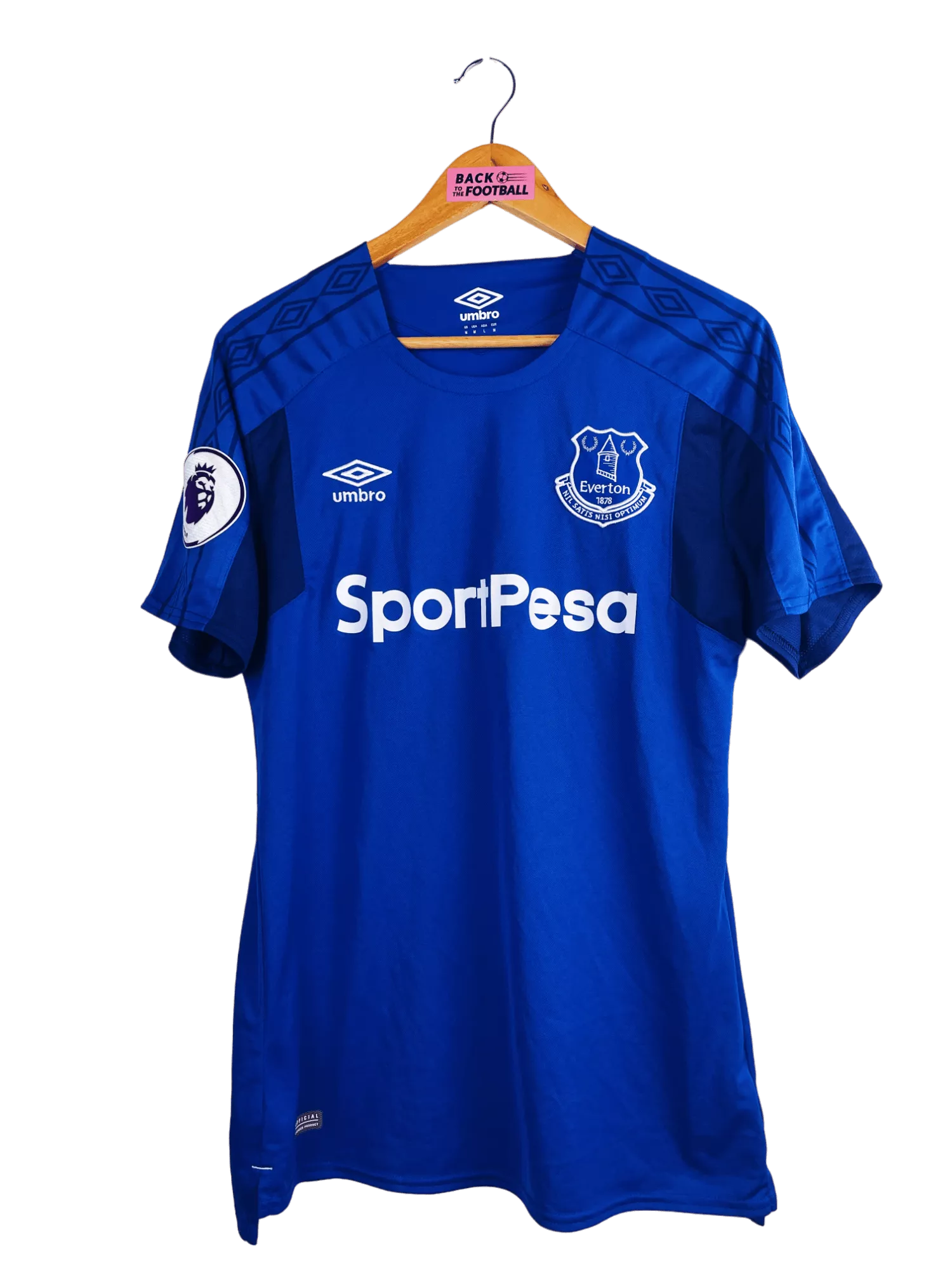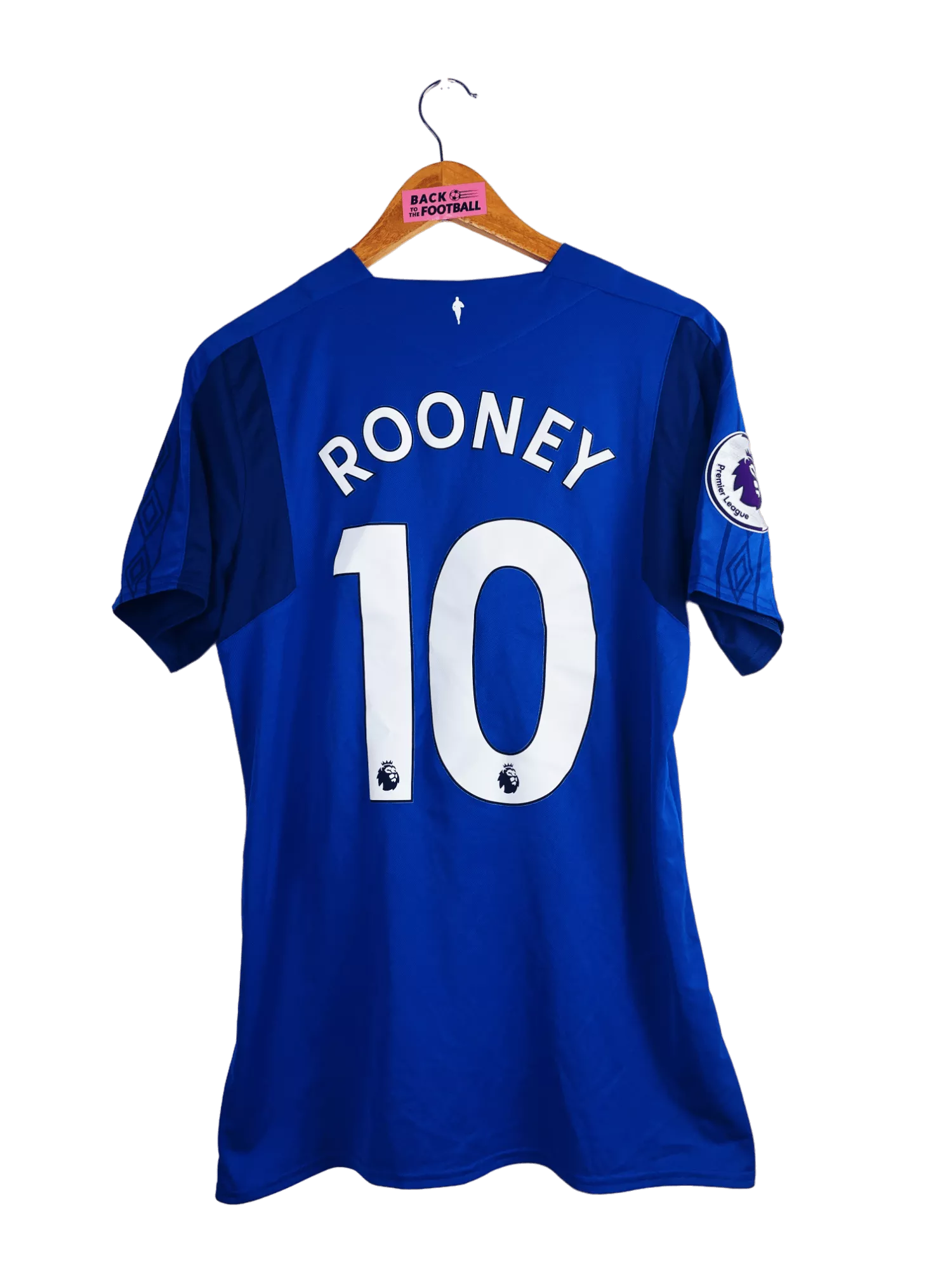 Taille : M Etat : 8.5/10, excellent état Le maillot : maillot vintage domicile d’Everton 2017/2018 floqué Rooney #10. L’écusson et le logo Umbro sont brodés, le sponsor est floqué. Le patch Premier League sur la manche est en feutrine. Et Rooney #10 au dos est floqué. Très beau maillot rétro d’Everton ! Histoire : saison mouvementée pour les Toffees, avec le départ de Koeman en octobre, remplacé par Unsworth pendant 1 mois, puis par Allardyce. Ils termineront à la 8ème place de Premier League. Everton ne passera pas la phase de groupe en Europa League, en terminant 3ème derrière…
