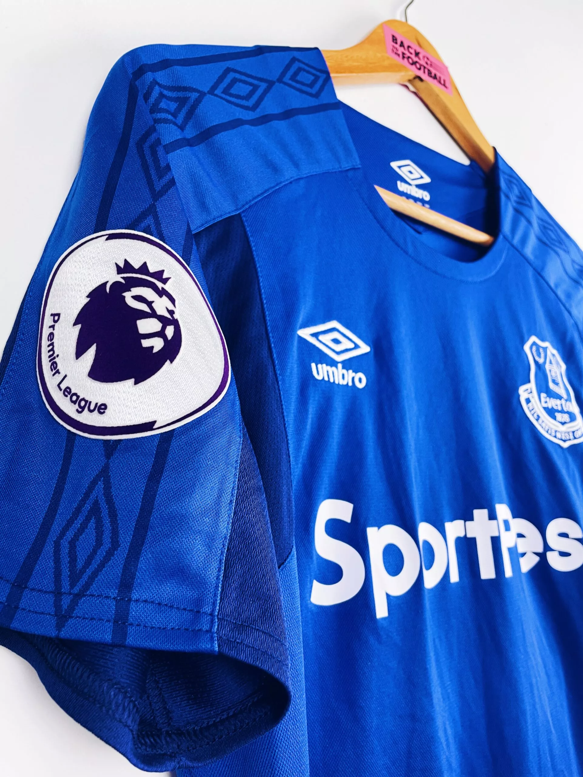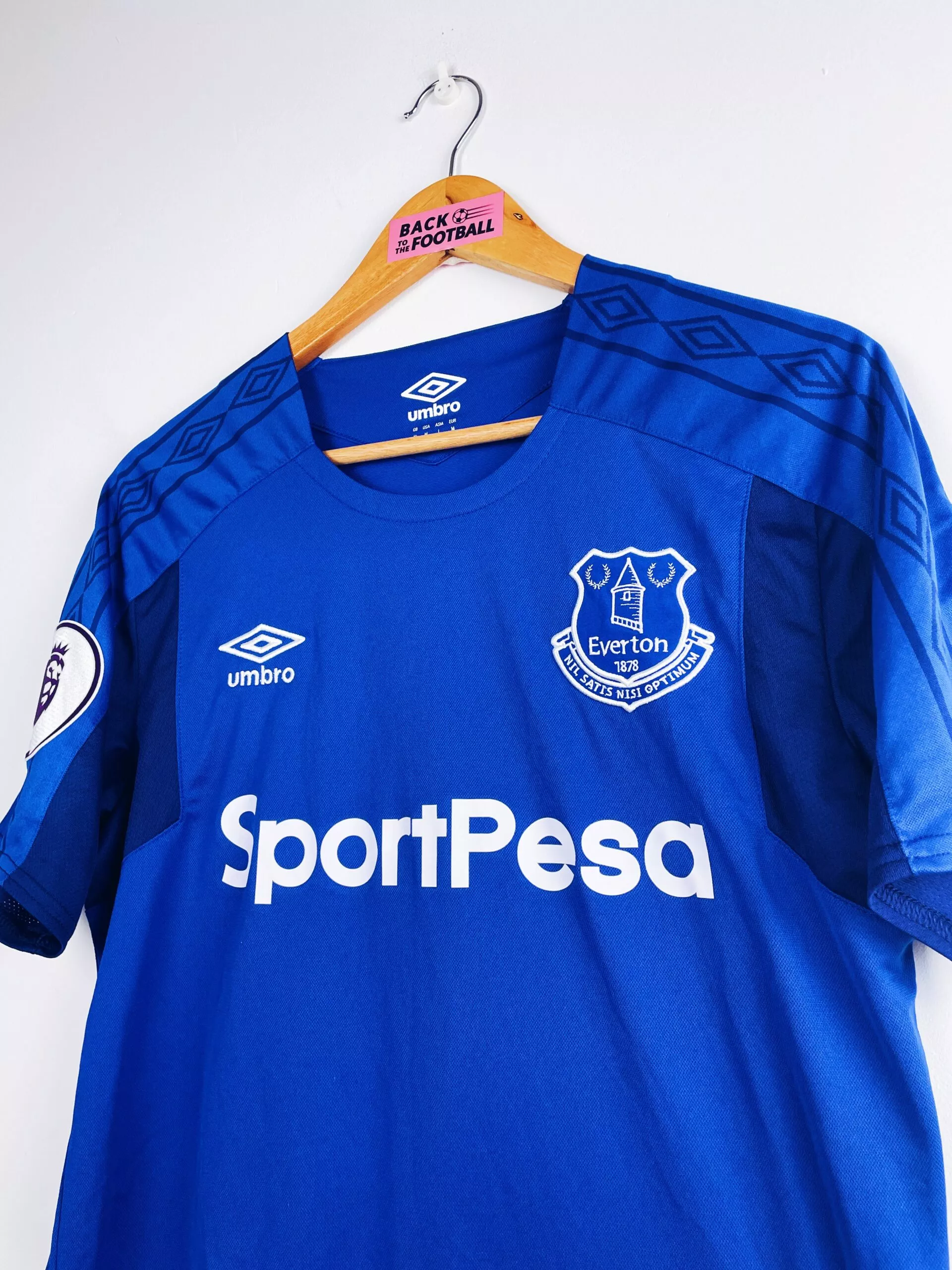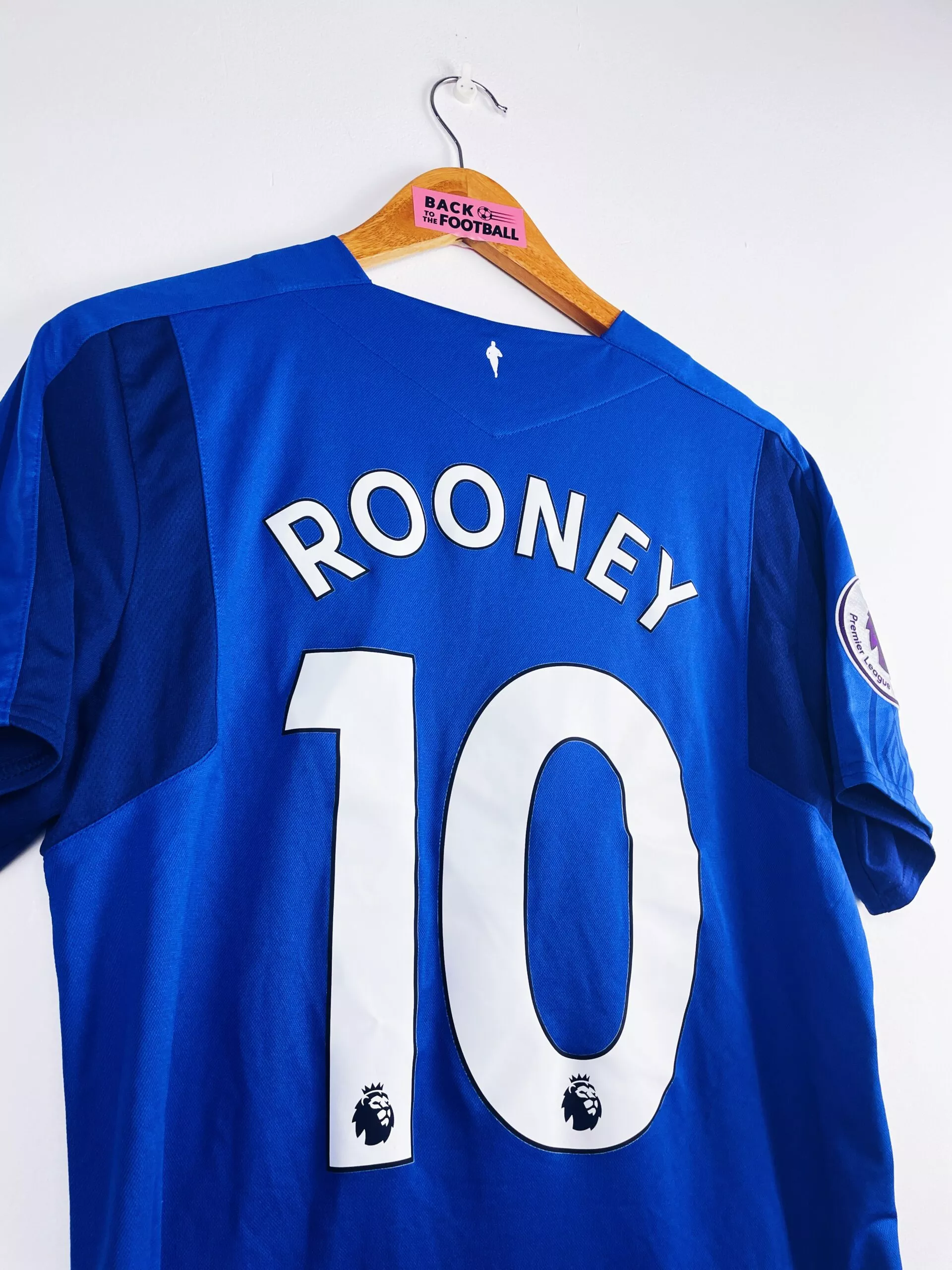 Taille : M Etat : 8.5/10, excellent état Le maillot : maillot vintage domicile d’Everton 2017/2018 floqué Rooney #10. L’écusson et le logo Umbro sont brodés, le sponsor est floqué. Le patch Premier League sur la manche est en feutrine. Et Rooney #10 au dos est floqué. Très beau maillot rétro d’Everton ! Histoire : saison mouvementée pour les Toffees, avec le départ de Koeman en octobre, remplacé par Unsworth pendant 1 mois, puis par Allardyce. Ils termineront à la 8ème place de Premier League. Everton ne passera pas la phase de groupe en Europa League, en terminant 3ème derrière…