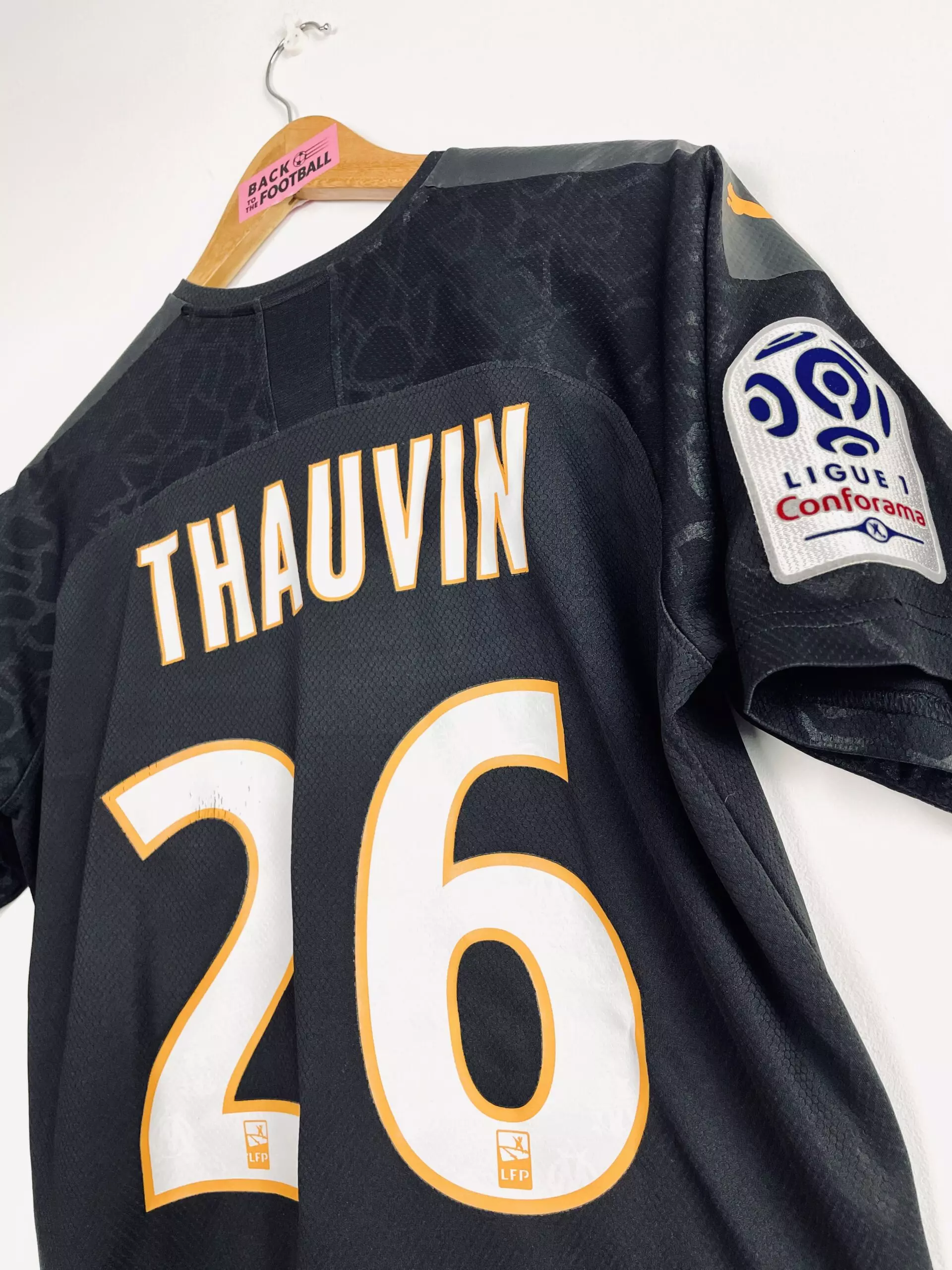 Taille : M Etat : 7.5/10, excellent état, hormis le flocage joueur qui est abimé sur le numéro 2 notamment (voir photos) Le maillot : maillot third de l’Olympique de Marseille 2019/2020 floqué Thauvin #26. Le maillot de l’OM a été préparé pour Thauvin (match issue). Le maillot a été préparé pour un match contre Nimes, mais Thauvin se blessera et ne jouera pas. L’écusson et le logo Puma sont thermocollés, le sponsor Uber Eats est floqué, le patch Ligue 1 est en feutrine. Les épaules sont renforcées. Pas de badge Puma en bas du maillot contrairement aux modèles en…