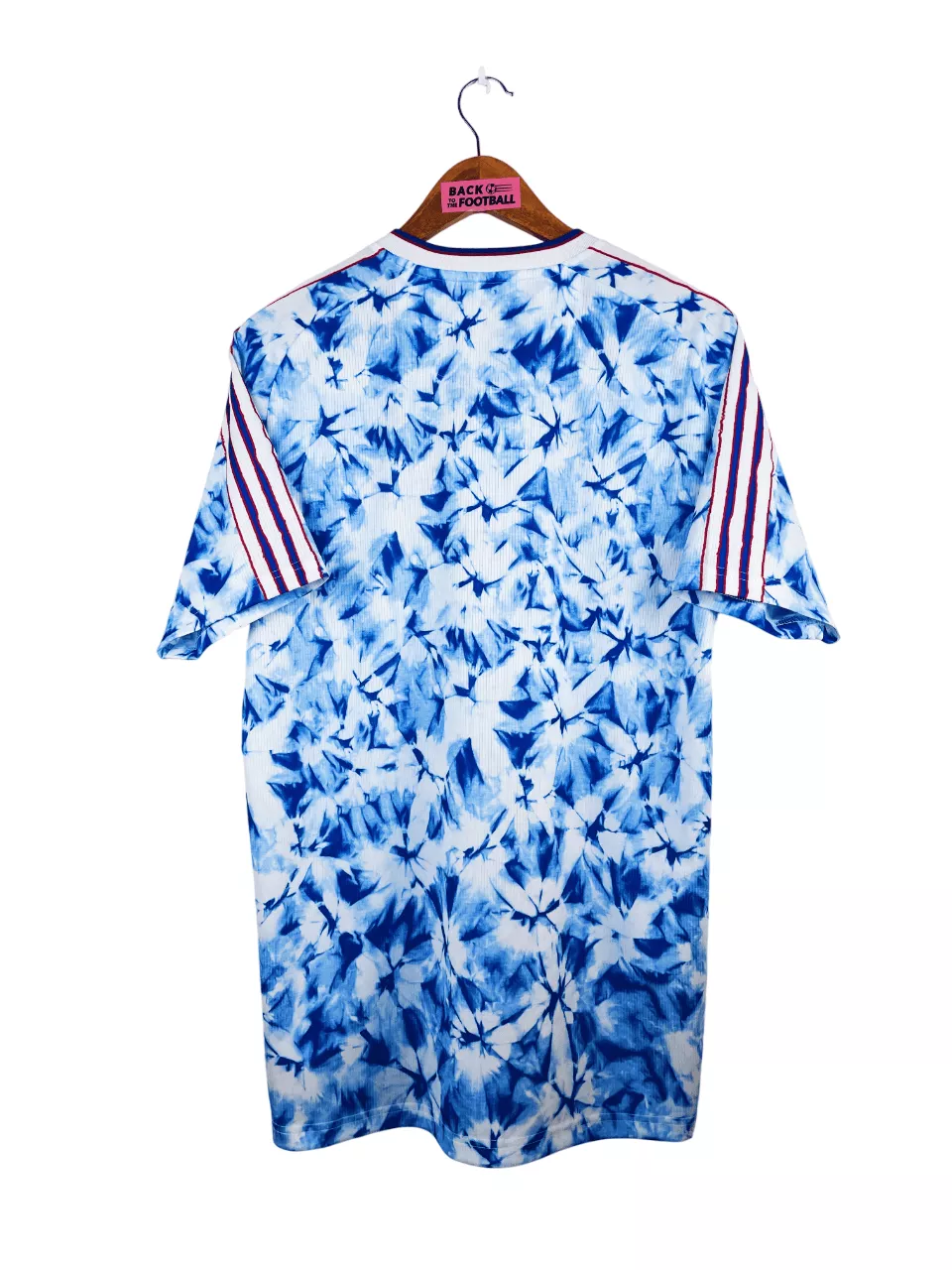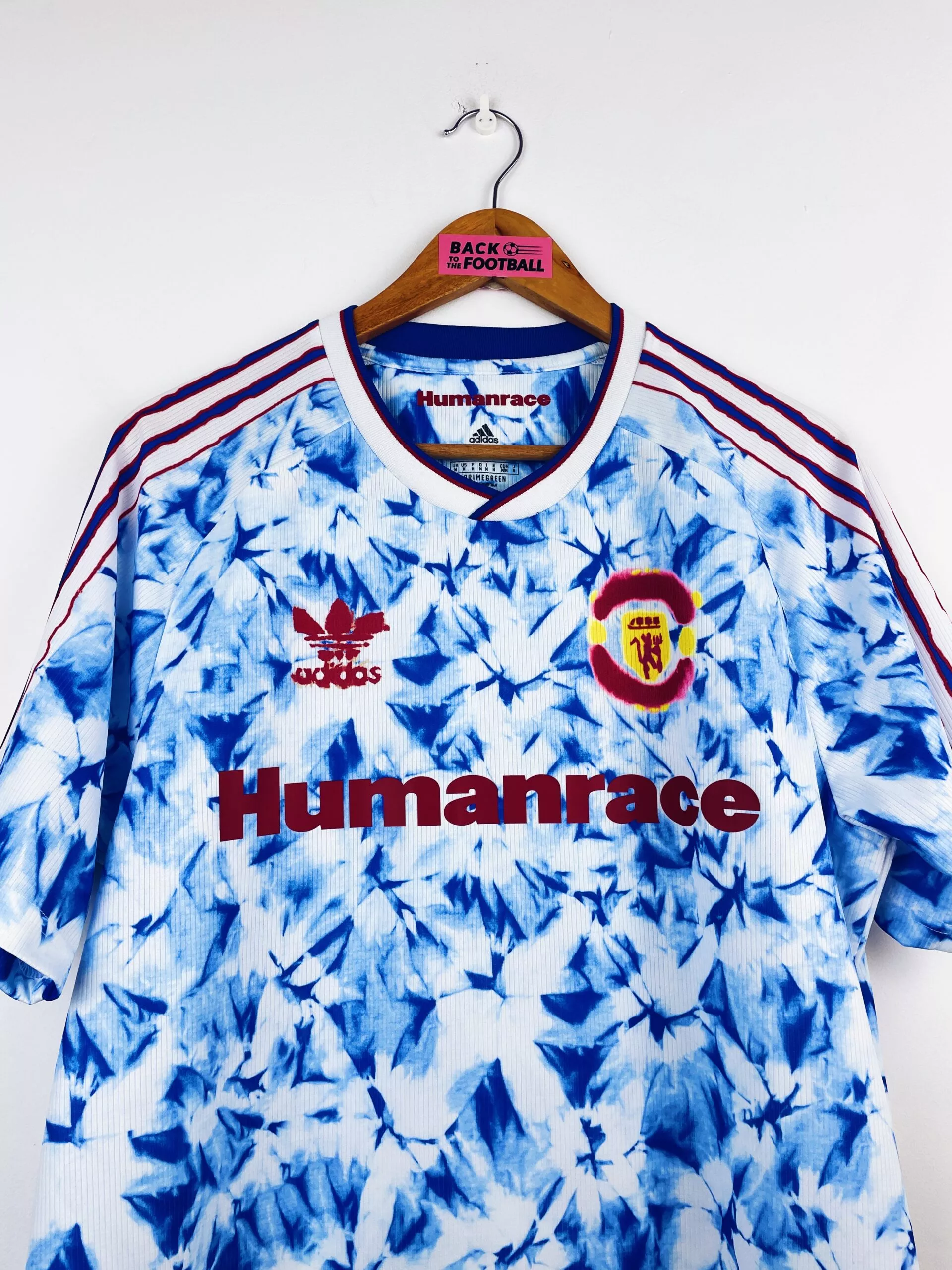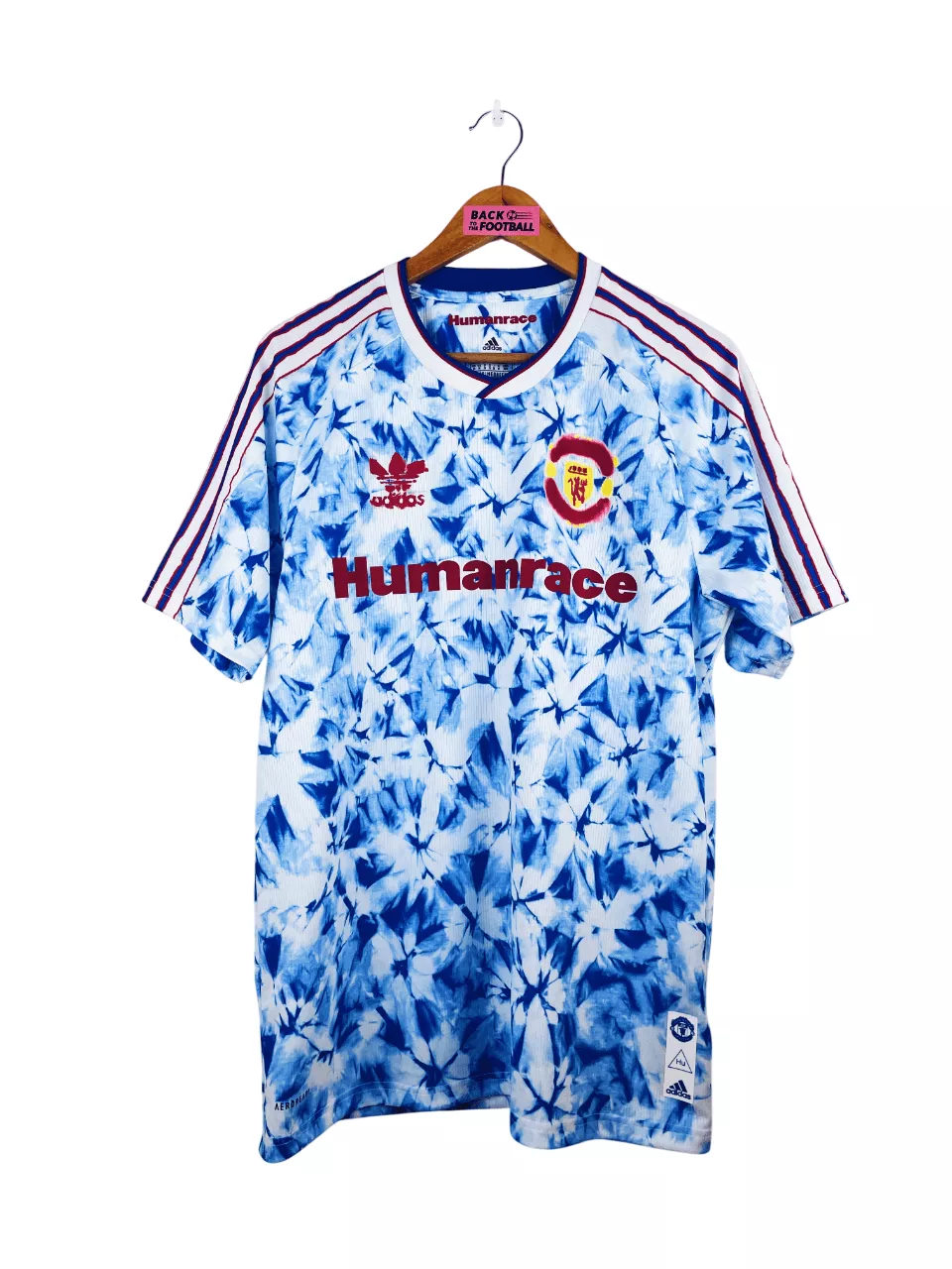 Taille : M Largeur : 50cm (aisselle à aisselle) Longueur : 73cm (base du col au bas) Si tu veux plus de détails, tu peux nous contacter par mail ou sur les réseaux 😉 Etat : 8.5/10, excellent état Le maillot : maillot spécial Manchester United 2020/2021 Human Race designé par Pharrell Williams. Il s’inspire du fameux maillot vintage extérieur 1990/1992. L’écusson et le logo Adidas à trèfle sont incrustés, le sponsor Human Race est floqué. Histoire : les mancuniens terminent deuxièmes de Premier League derrière Man City. Ils iront jusqu’en finale de Ligue Europa mais perdront contre Villarreal aux…