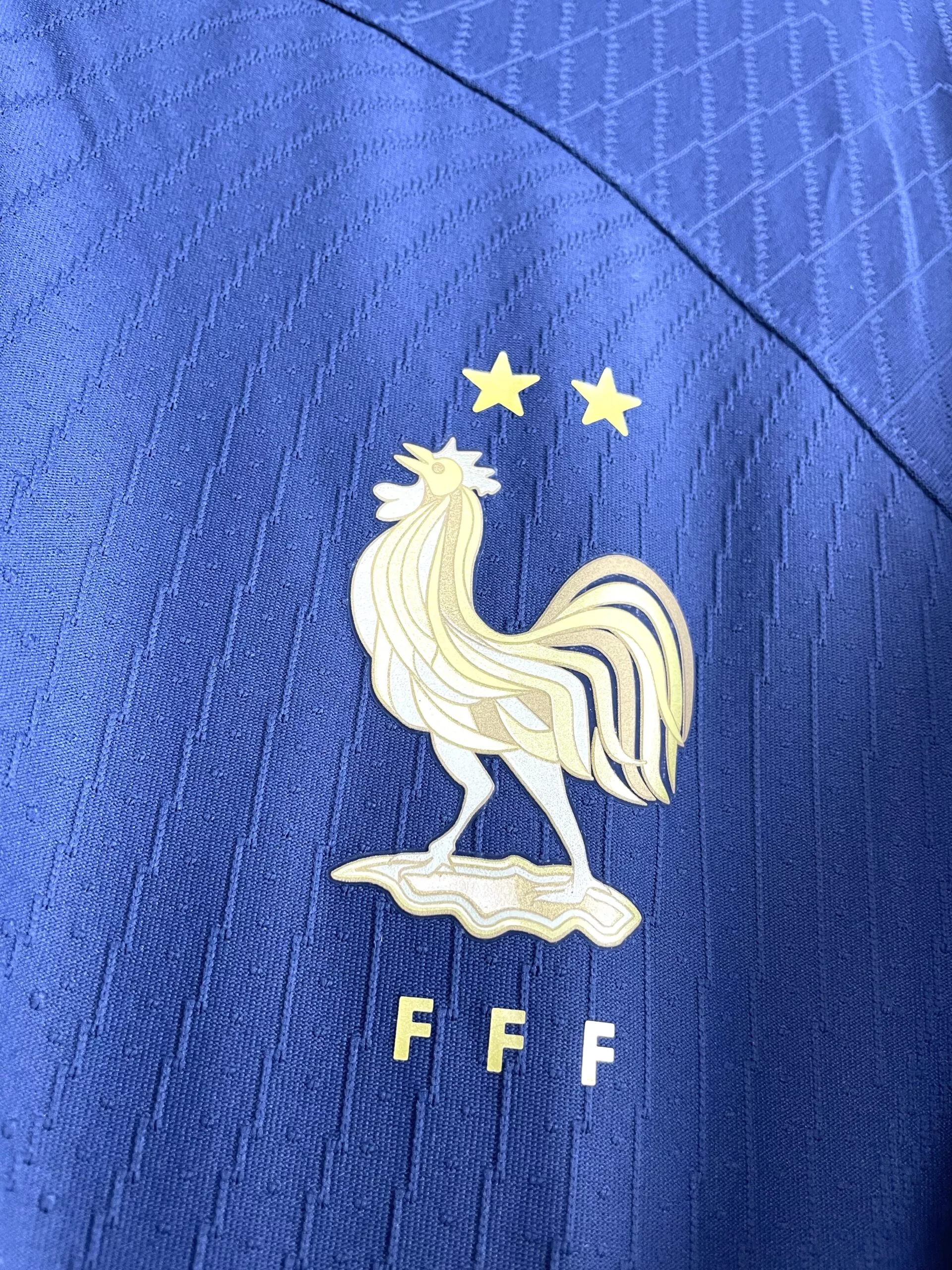 Taille : XL Si tu veux plus de détails, tu peux nous contacter par mail ou sur les réseaux 😉 Etat : neuf avec étiquettes (BNWT) Le maillot : maillot domicile de l’équipe de France 2022 floqué Giroud #9. C’est la version pro : Dri-fit ADV, écusson et logo Nike thermocollés, le tissu est différent de la version classique. Giroud #9 est floqué. Très beau maillot de la France ! Histoire : c’est le maillot que porteront les Bleus lors de la Coupe du Monde 2022 au Qatar. Les hommes de Didier Deschamps terminent à la première place de leur…