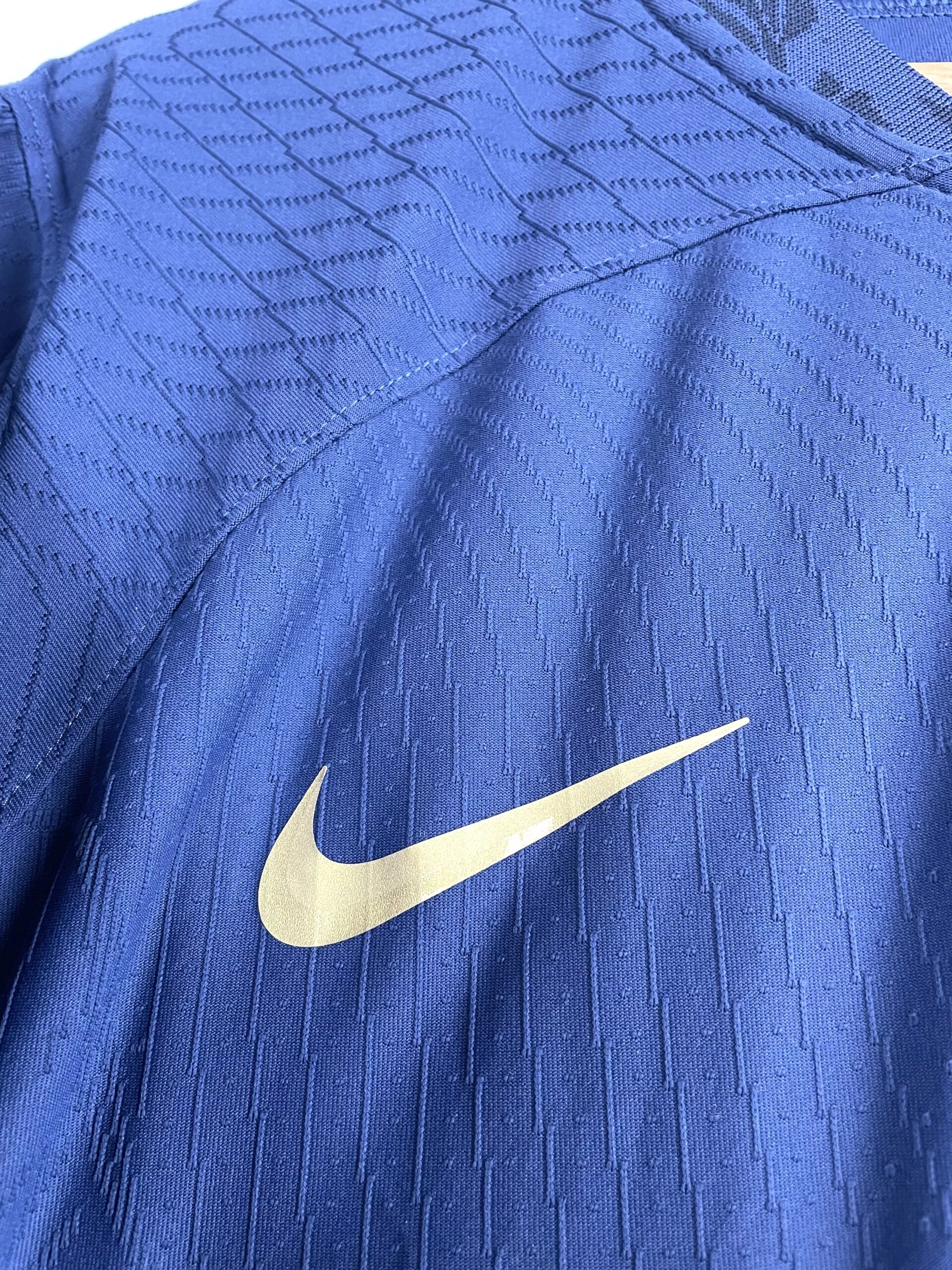 Taille : XL Si tu veux plus de détails, tu peux nous contacter par mail ou sur les réseaux 😉 Etat : neuf avec étiquettes (BNWT) Le maillot : maillot domicile de l’équipe de France 2022 floqué Griezmann #7. C’est la version pro : Dri-fit ADV, écusson et logo Nike thermocollés, le tissu est différent de la version classique. Griezmann #7 est floqué. Très beau maillot de la France ! Histoire : c’est le maillot que porteront les Bleus lors de la Coupe du Monde 2022 au Qatar. Les hommes de Didier Deschamps terminent à la première place de leur…