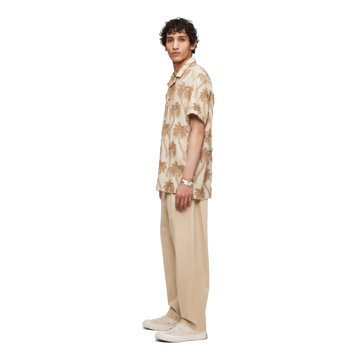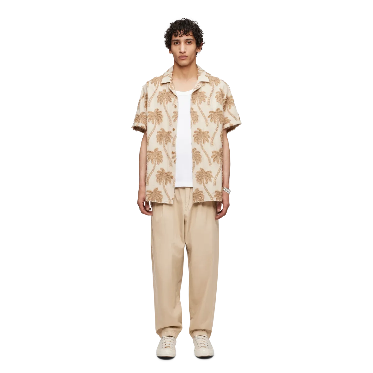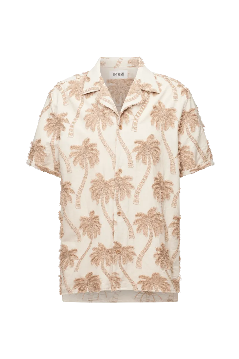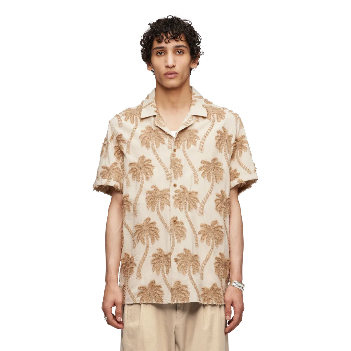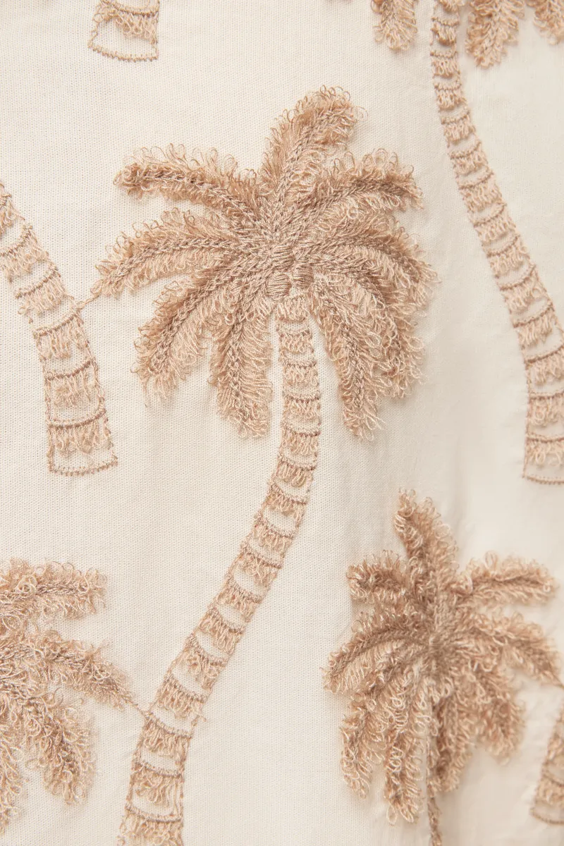 Cette chemise présente une patte de boutonnage propre sans couture, pour un look épuré et soigné. La broderie de palmiers de haute qualité ajoute une note d’originalité et de fraîcheur, parfaite pour les tenues estivales.