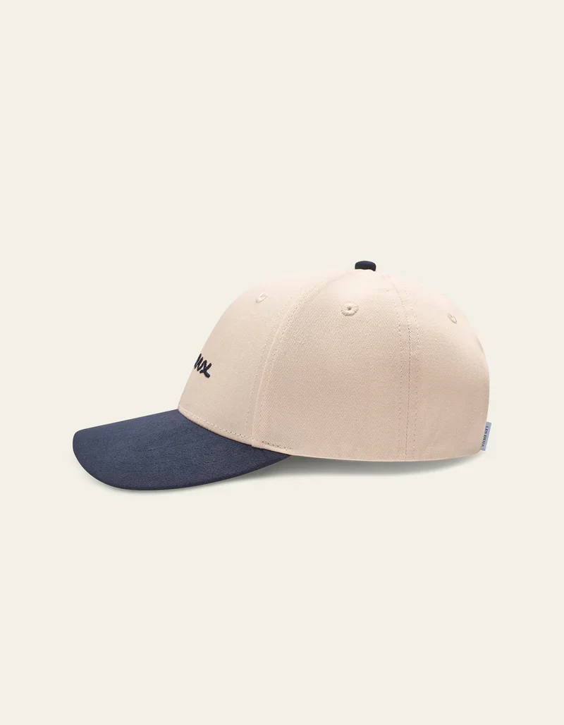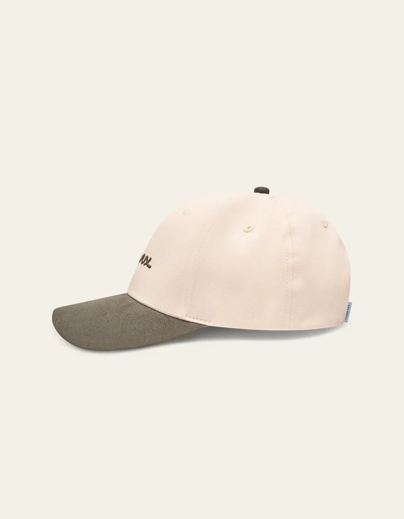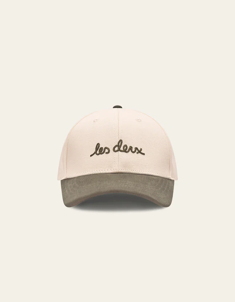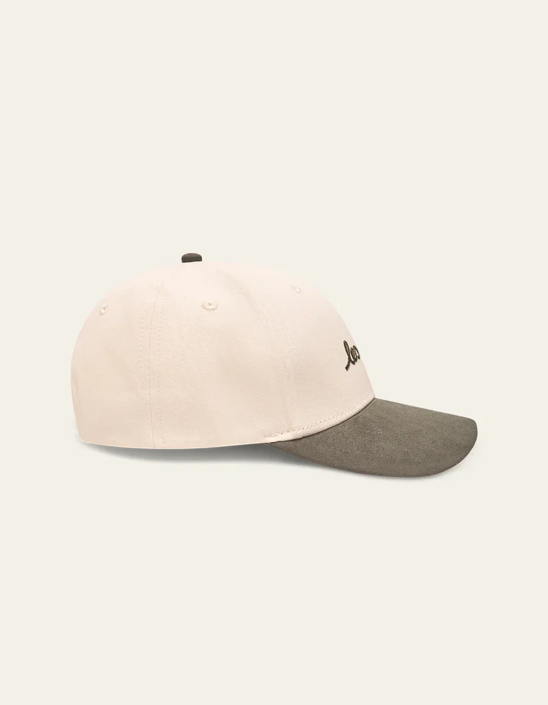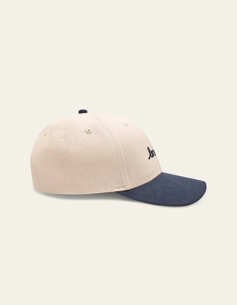 La Brad Contrast Suede Baseball Cap est disponible en deux coloris pour les visières, vert khaki et bleu foncé. Elle est confectionnée en 100% coton, offrant un confort optimal. Elle se distingue par sa broderie décontractée au point de chaînette sur le devant, dans un style dessiné à la main, ajoutant une touche artistique et unique.