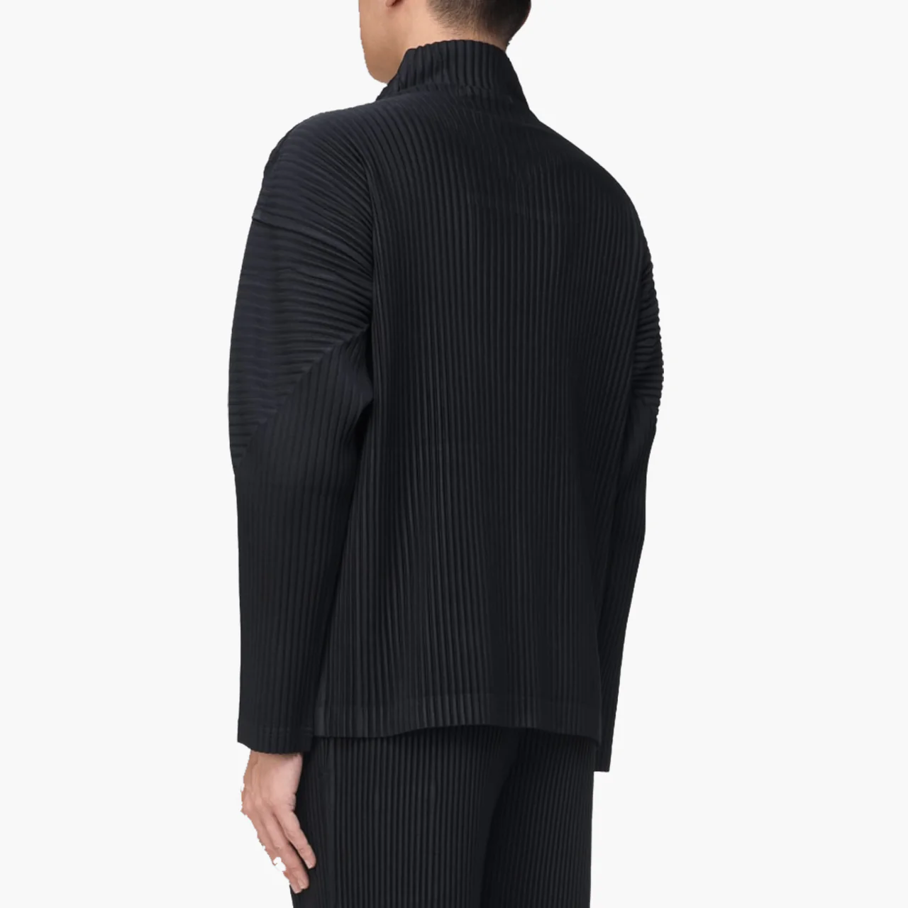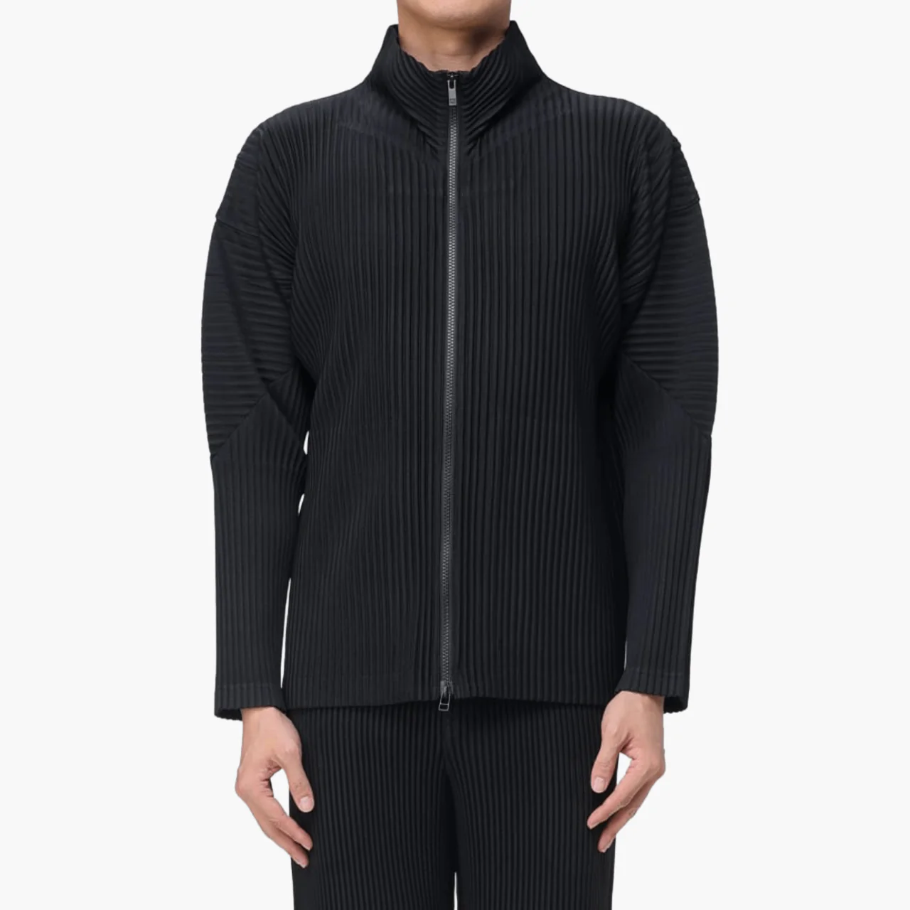 Le Cardigan Zippé à Col Montant Homme Plissé Issey Miyake Noir allie innovation textile et élégance fonctionnelle. Confortable, infroissable et architectural, il s’impose comme un essentiel intemporel du vestiaire Homme Plissé.