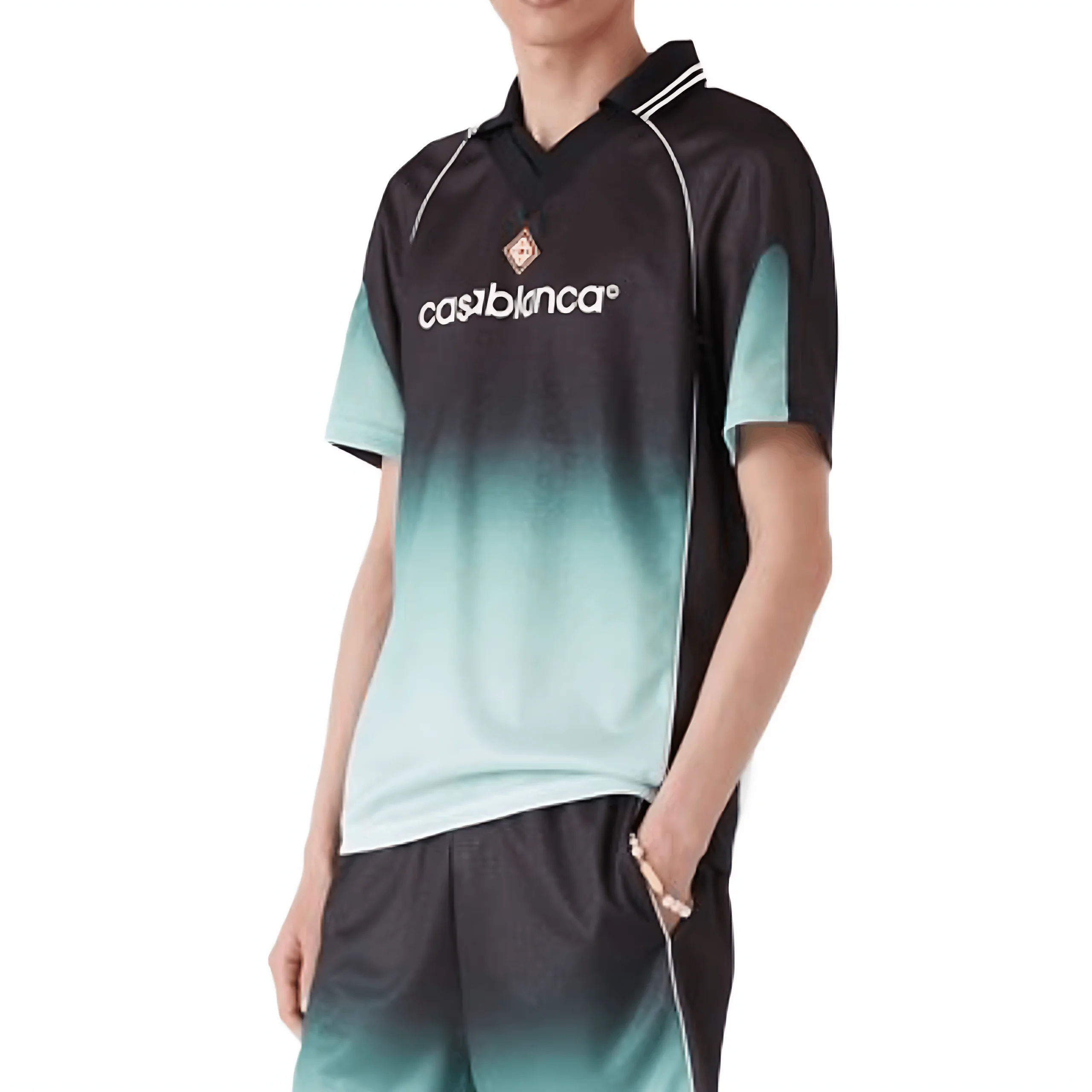 Le Casablanca Gradient Monogram Jacquard Football Shirt est une pièce marquante qui fusionne la culture football et le luxe urbain. Son motif en dégradé, sa coupe ample et ses finitions premium en font un choix élégant, audacieux et contemporain pour un vestiaire masculin haut de gamme.